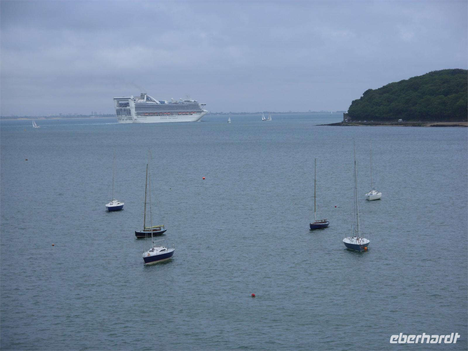 Noch am gleichen Tag erreichten wir die benachbarte Hafenstadt Southampton, wo wir für zwei Nächte unser Hotel hatten. Southampton war und ist eine der wichtigsten englischen Fährhäfen - hier lief zum Beispiel 1912 die ?Titanic" zu ihrer ersten nd letzten Fahrt aus. Auch für uns war der Hafen von Southampton ein wichtiges Ziel, als wir am 4. Reisetag den Ausflug zur Isle of Wight unternahmen. Besonders gut konnten wir vom Fährschiff aus den regen Betrieb im Hafen beobachten. Riesige Kreuzfahrtschiffe lagen vor Anker und beeindruckten mit ihrer Größe jeden von uns.Von Southampton ging es weiter gen Westen, wo wir am Nachmittag des 6. Reisetages die kleine Hafenstadt Falmouth besuchten. Beeindruckend waren hier die beiden die Bucht überwachenden Festungen Pendennis Castle und das gegenüberliegende St. Mawes.