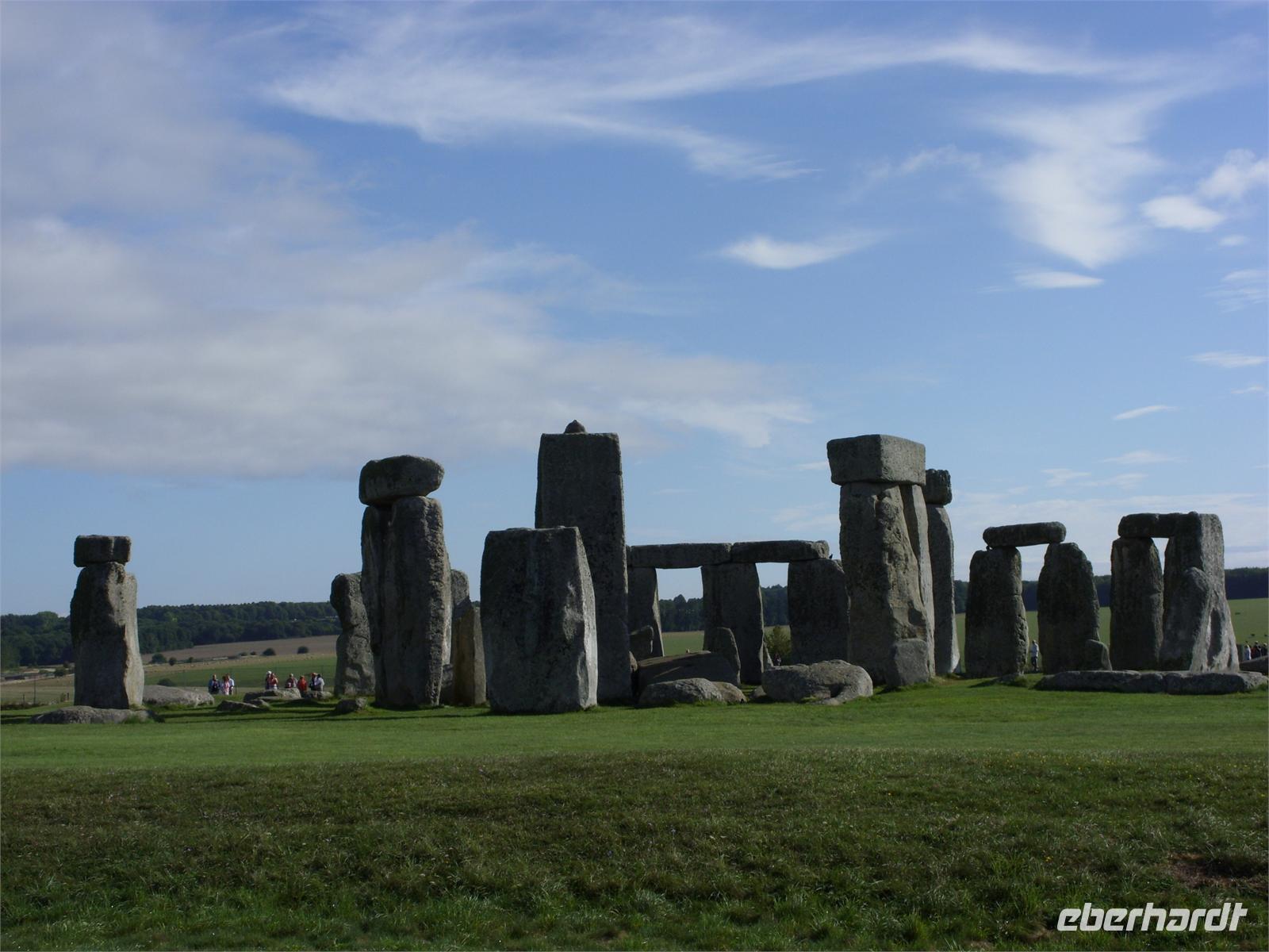 Am 4. Tag unserer schönen Reise stand für viele bestimmt eins der Ziele auf dem Programm, warum man denn überhaupt das Reiseziel Südengland wählt - Stonehenge! Sagen umwoben mitten in einer lieblich grünen, hügeligen Landschaft erheben sich plötzlich bis zu 7 Meter hohe und bis zu 45 Tonnen schwere Steine. Sarsensteine, Blausteine, Sarsentrilithe und der blaugraue Altarstein bilden einen monumentalen Steinkreis, der bis in das Jahr 3000 v. Chr. zurück zu datieren ist. Ein großes Rätsel ist für mich dabei nicht nur der Sinn und Zweck, den solche prähistorischen Bauten hatten sondern vor allem auch die Art und Weise wie man diese Gebilde - nur mit bloßer Menschenhand und einfachen Werkezeugen - erbaute. Besonders wenn man sich überlegt, dass einige der Steine aus Wales, also etwa 380 km entfernt, nach Stonehenge gebracht wurden. Imposant!