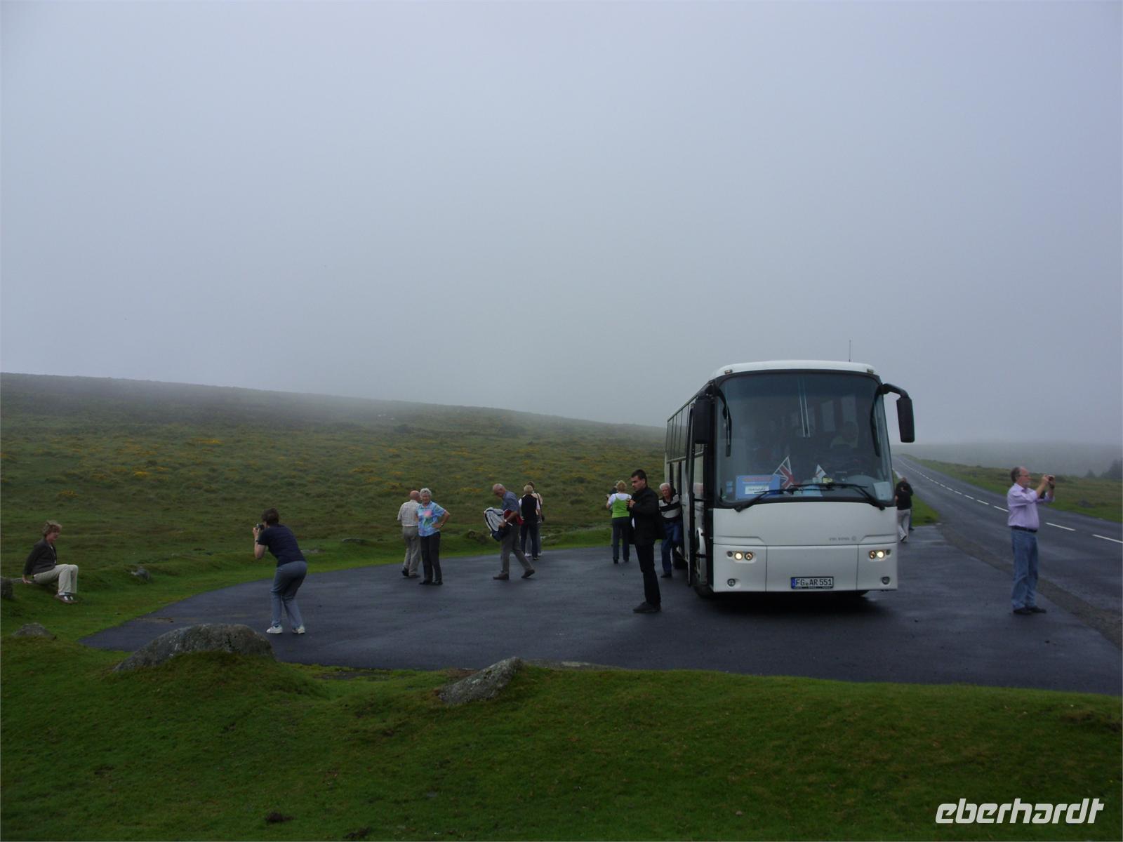 Nicht ganz so hold war uns der typisch englische Nebel am 6. Reisetag, als in den Morgenstunden das berühmt berüchtigte Dartmoor auf dem Programm stand. Ähnlich wie es Sherlock Holmes bei seinem Besuch im Dartmoor gegangen sein muss, erlebten wir unsere kleine Rundfahrt auf ähnliche Art und Weise. Irgendwie war es ein wenig gruselig ... Trotzdem waren wir von der blühenden Heidelandschaft, den typischen Clapper Bridges und der Moorlandponies sehr angetan.