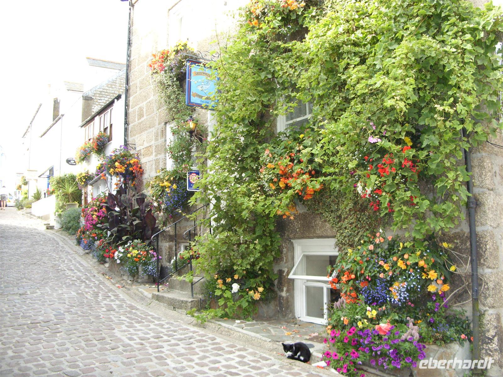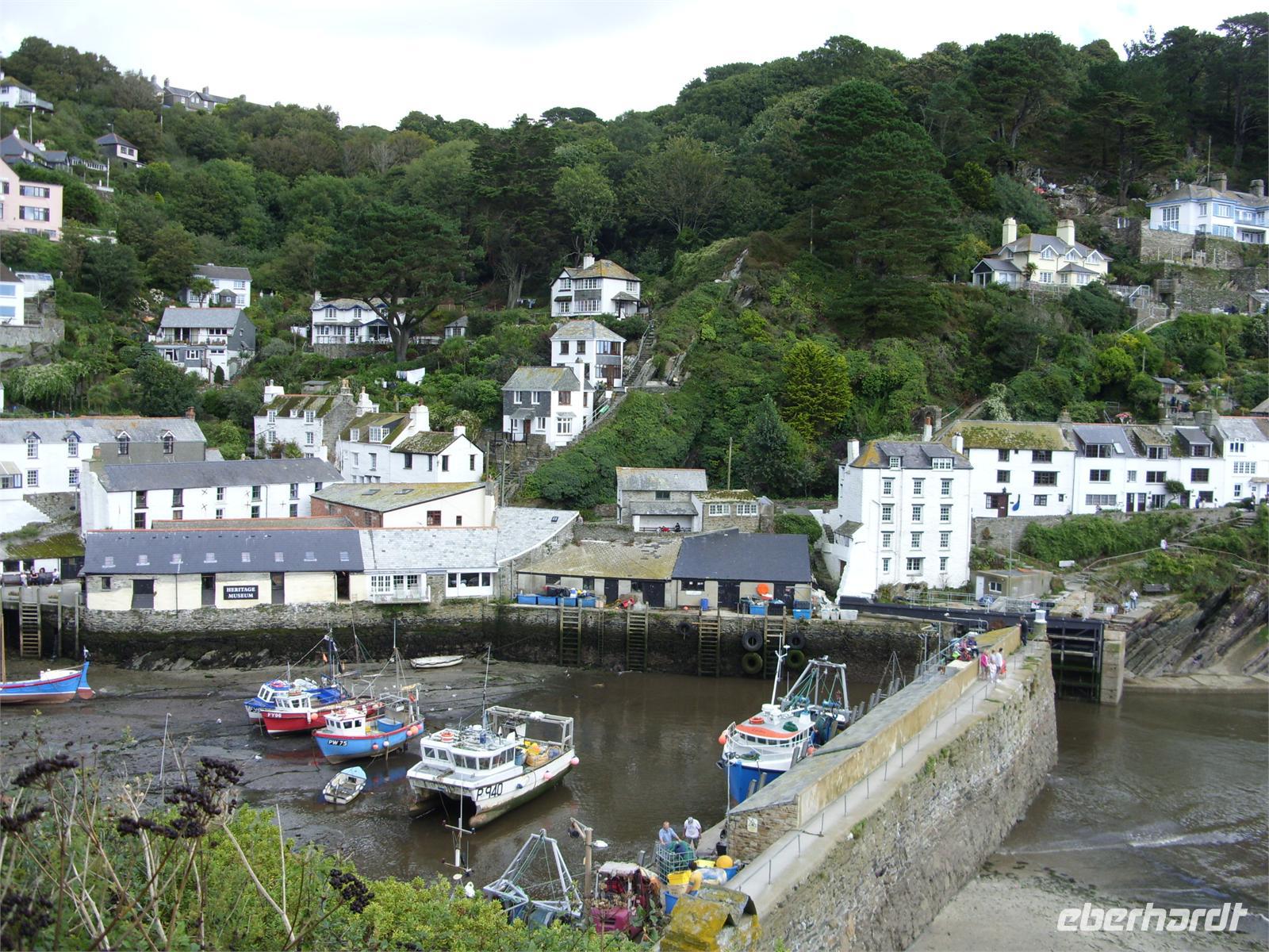Ein Geheimtipp unter den vielen englischen Dörfern war aber mit Sicherheit Polperro. Entlang der Mündung des Pol-Flusses in den Ärmelkanal reihen sich hier terrassenartig angelegte Häuser in Weiß und Pastell. Blumenschmuck gab es überall! Kleine Läden und eine enge Hafeneinfahrt inmitten der kornischen Steilküste rundeten den perfekten Eindruck ab. Toll!
