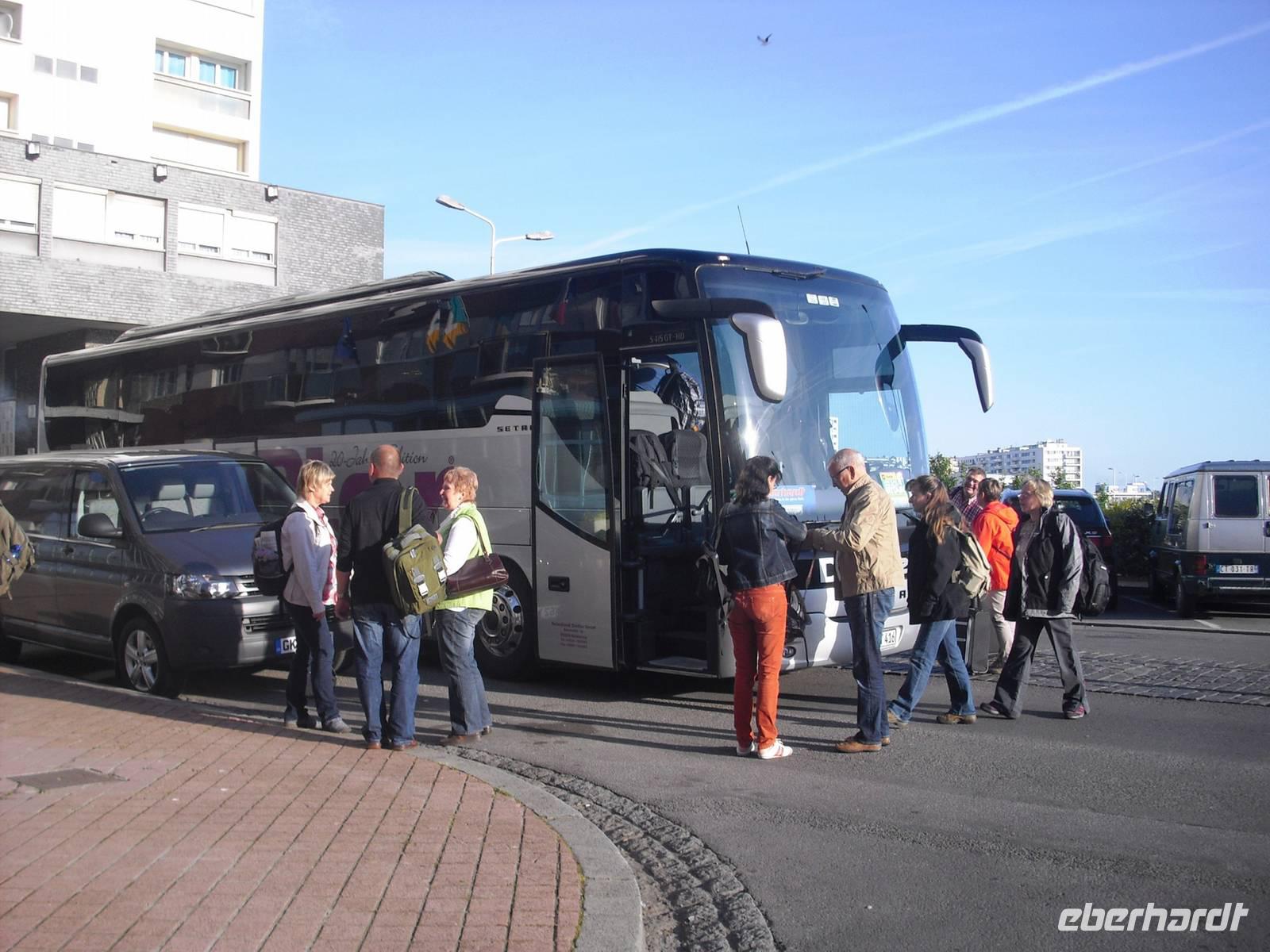 Mit pünktlichen Zustiegen, immer wieder eingelegten Pausen und nur unerheblichen Verkehrsbehinderungen erreichten wir alle zu angemessener Zeit unseren Übernachtungsort Calais.