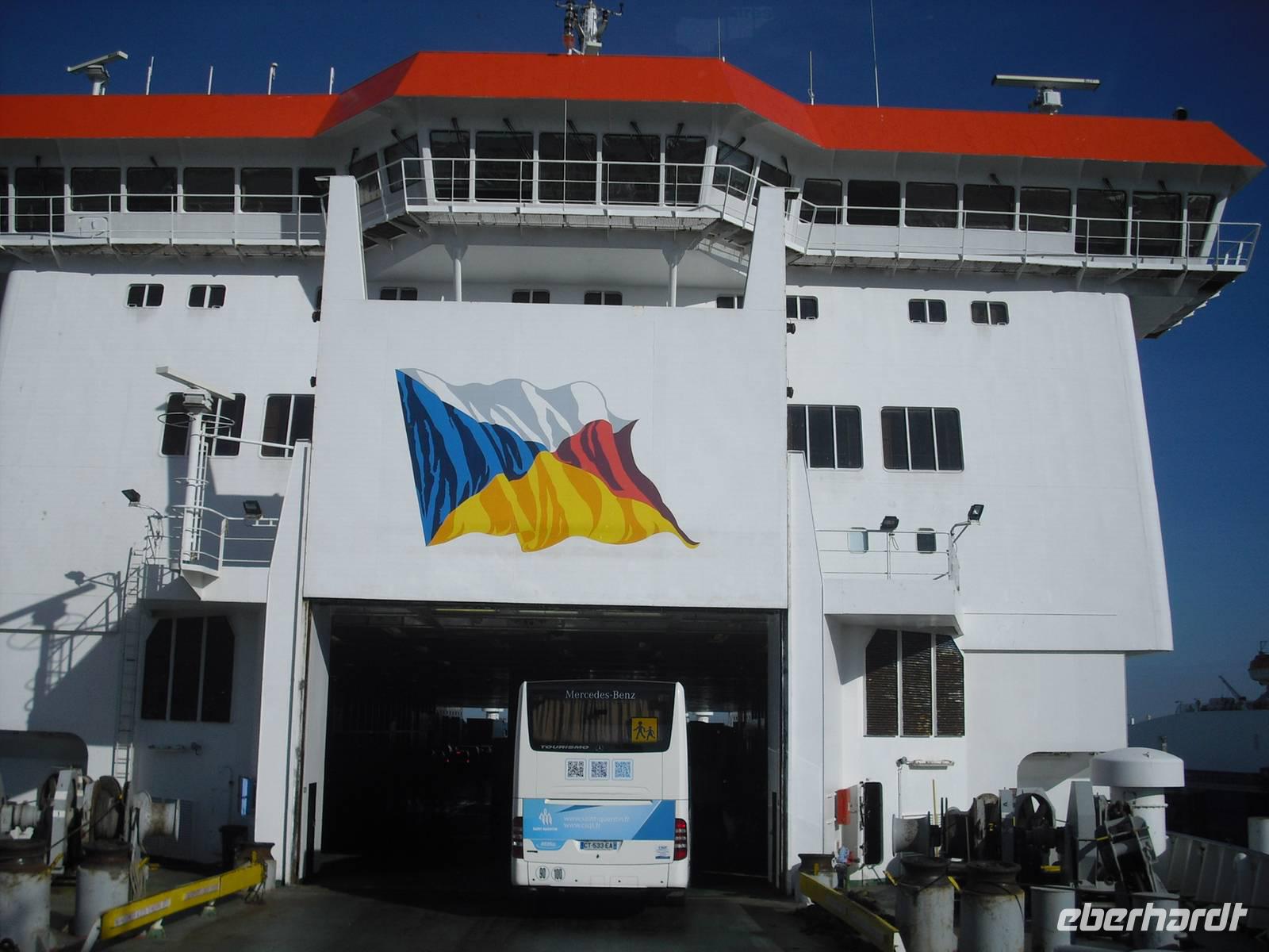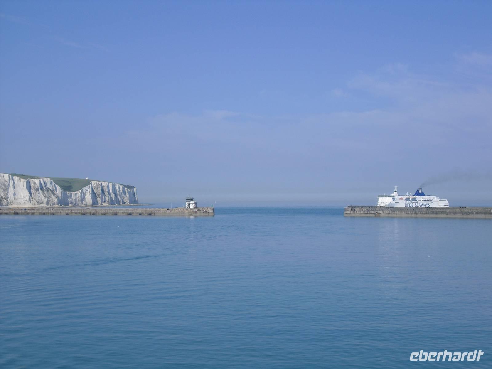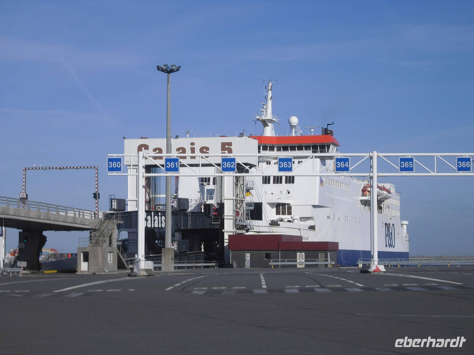 Nach einem frühen Frühstück fuhren wir zum Fährhafen von Calais und unterzogen uns dort der Grenzkontrolle. Alles ging gut und wir konnten mit der Fähre der Fährgesellschaft P&O nach Dover übersetzen.