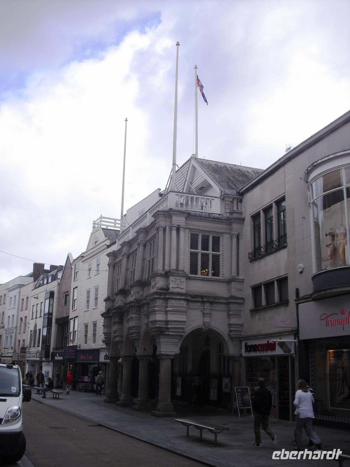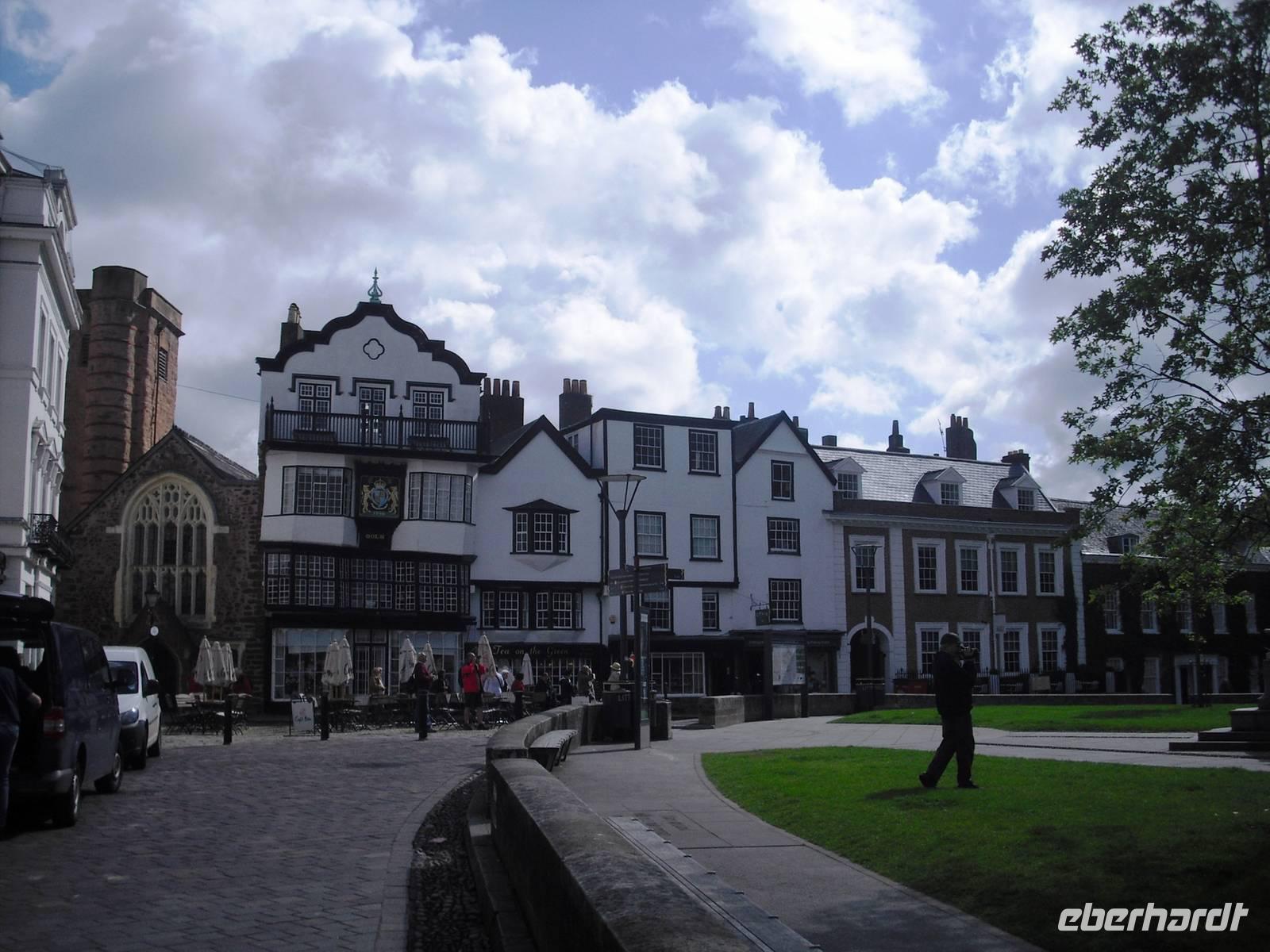 Nach Frühstück und der Gepäckverladung unternahmen wir einen Morgenspaziergang durch Exeter. Rougemont Castle erinnerte daran, daß Exeter die einzige Stadt in England war, die erst nach zwei Jahren der Widerspenstigkeit von den Normannen eingenommen werden konnte. Die Guildhall -die Ursprünge gehen auf 1160 zurück- ist das älteste Verwaltungsgebäude Englands.