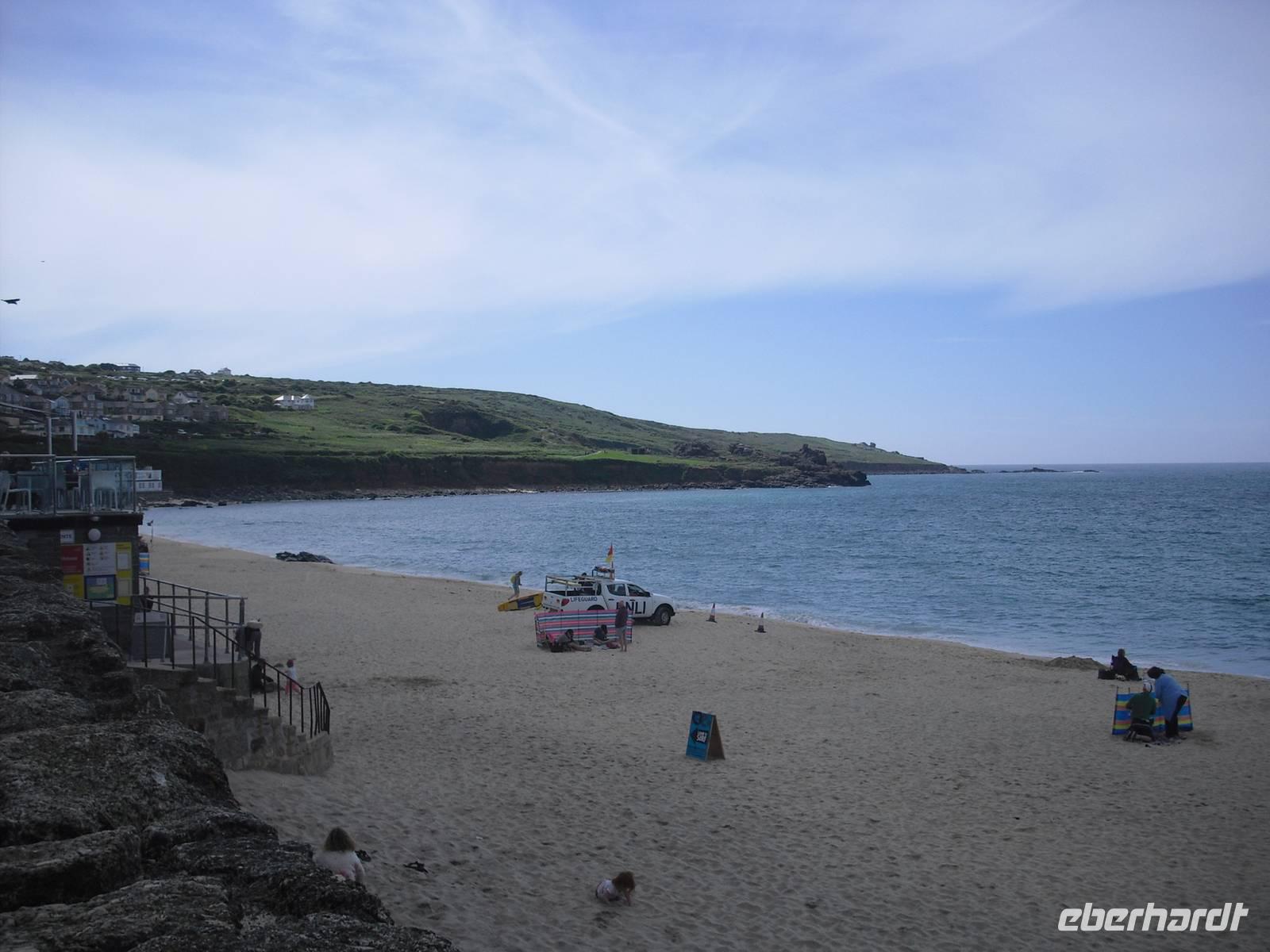 Der zweite Teil des Nachmittags gehörte dem Besuch von St. Ives. Ohne Zweifel touristisches und kulturelles Zentrum Cornwalls ist dieser Ort seit mehr als 100 Jahren eine Art Künstlerkolonie mit besonderen Lichtverhältnissen. Bilder, Zeichnungen und Skulpturen sind seit Juni 1993 in der Tate St. Ives, einem ansprechenden und von Prinz Charles eröffneten Gebäude am Porthmeor Beach, zu besichtigen. Als schönster Platz in St. Ives gilt aber der Skulpturengarten von Barbara Hepworth, eine Dame der großen Bildhauergeneration des 20. Jh.