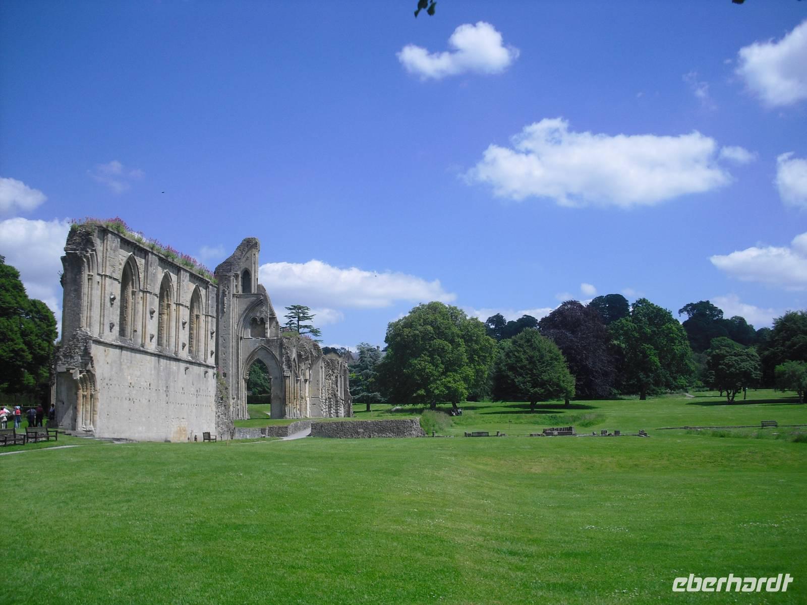 Nördlich des Dartmoors fuhren wir im Anschluß nach Glastonbury. Waren wir im Bodmin Moor nahe dem Dozmary Pool ( das Schwert Exalibur von König Artus soll darin liegen ), wollten wir jetzt seinem vermeintlichen Grab auf dem Gelände der Glastonbury Abbey einen Besuch abstatten. Hier ließ zunächst der angelsächsische König Ina von Wessex um 700 ein Kloster errichten. 1184 brannte eine normannische Abteianlage vollständig ab und es wurde eine neue Klosterkirche gebaut. Während der Reformation von Heinrich dem Achten wurde die Abtei aufgelöst und die Kirchenanlage fiel Bilderstürmern zum Opfer. Die Ruinen jedoch sind auch heute noch sehr eindrucksvoll und wunderbar in einem großen grünbewachsenen Areal eingebettet. In der kleinen Stadt selbst ist noch immer die Atmosphäre einstigen Pilgertums zu spüren. Das George&Pilgrims Hotel ist eine etwa 600 Jahre alte Pilgerherberge und das Tribunal, ein aus dem 15.Jh. stammendes Gerichtsgebäude beherbergt ein kleines Heimatmuseum.