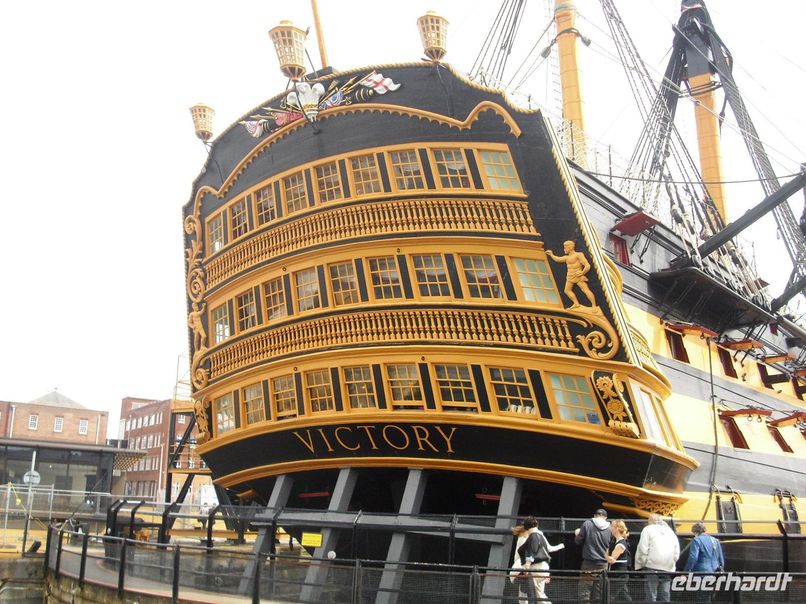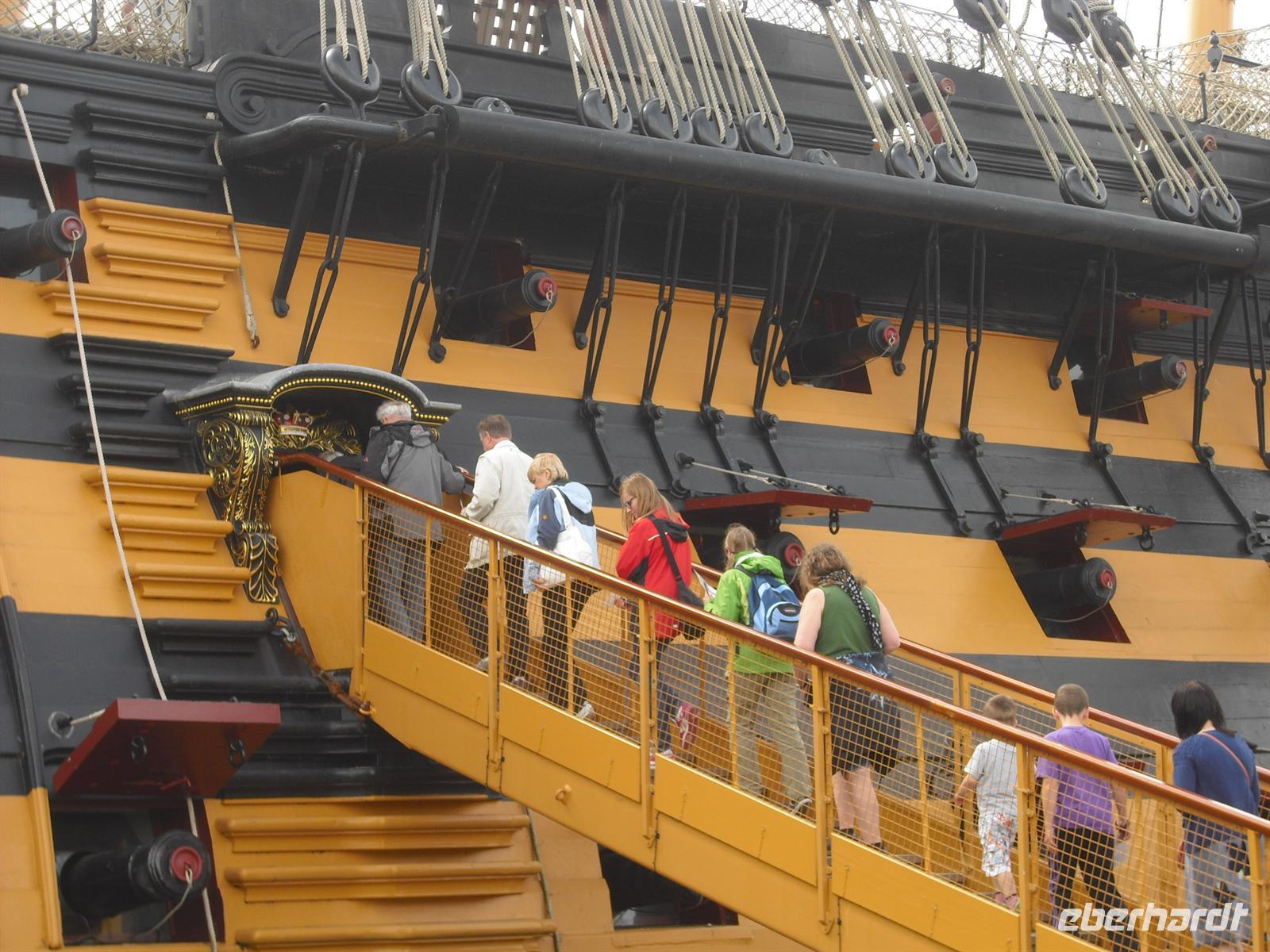 Der erste Samstag auf unserer Reise - der dritte Reisetag - beginnt nach dem Frühstück mit der Fahrt nach Arundel. Dort erwarten uns eine pittoreske Kleinstadt, ein gewaltiges Schloss und ein hervorragend angelegter englischer Garten. Für alles nehmen wir uns gut drei Stunden Zeit zur Besichtigung. Sind wir doch in den privaten Gefilden des Herzogs und der Herzogin von Norfolk. Nach unserer Abfahrt nach Portsmouth - hier wird am Nachmittag das älteste im Dienst der englischen Krone stehende Kriegsschiff der Welt besucht - machen wir einen Stopp in Southsea. Noch immer sind hier Luftkissenboote im Linienverkehr zur Isle of Wight unterwegs - ein technisches Spektakulum. Und es wird fotografiert und gestaunt. Schließlich fahren wir in die Nähe des 170 m hohen Spinnaker Towers, ein Wahrzeichen von Portsmouth, um von der Busausstiegs- und Wiedereinstiegsstelle zum berühmten Schiff HMS Victory zu gelangen. Ausgiebig besichtigen wir die verschiedenen Decks des seit 1928 der Öffentlichkeit zugänglich gemachten Schiffes. Dann geht es in unser Hotel in der Nähe von Portsmouth und wir lassen es uns zum Abend schmecken. Schließlich wird auch heute wieder das müde Haupt zur Ruhe gelegt. Es schläft sich traumhaft in einem typisch englischen Hotel!? Unser Hotel weist schließlich eine ca. 300-jährige Geschichte auf.