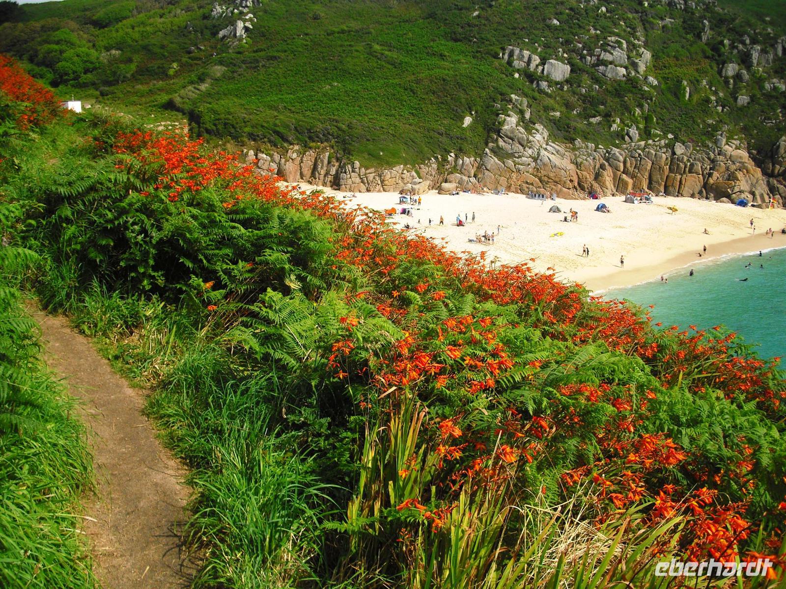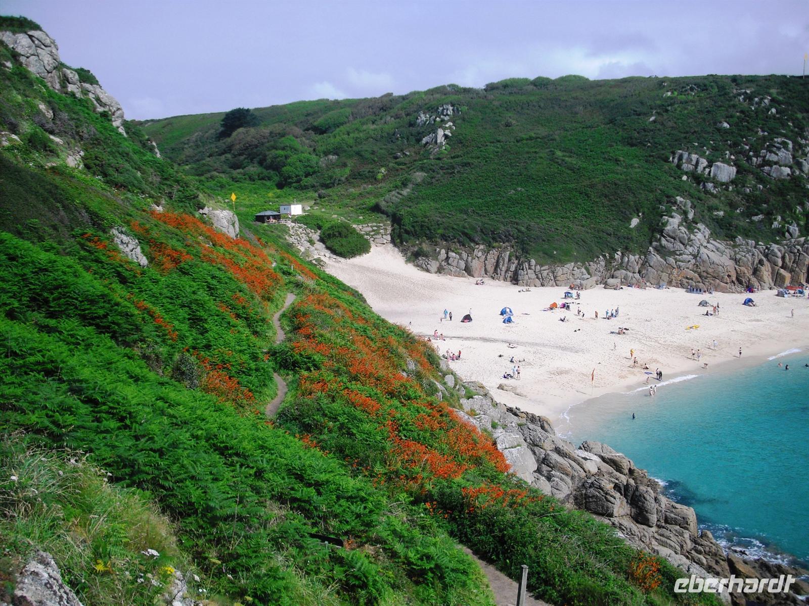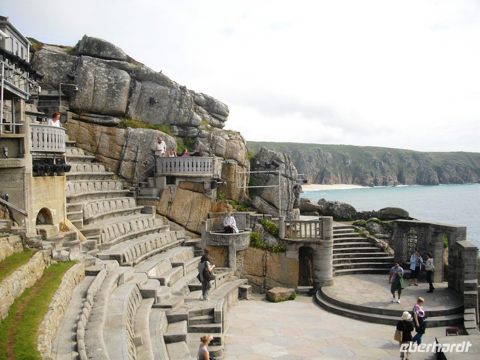 Der erste volle Tag in Cornwall, unser 7. Reisetag, beginnt nach dem Frühstück mit der Fahrt zum Minnack-Theater. Dieses Naturtheater mit wundervoller Kulisse an den Klippen ist die grandiose Umsetzung der Vision von Rowenda Cade, einer begeisterten Theaterfrau,Dieses Theater war 1932 eröffnet worden - wir haben mit unserem Gesang als Reisegruppe zum 80. Jubiläum gratuliert. Danach genießen wir die Sonne - einige von uns auch ein erfrischendes Bad - in der tollen Bucht von Porthcurno. Bei Superwetter fahren wir jetzt nach Lands End, dem westlichsten Zipfel von England. Dort kann jeder entweder den Trubel im Freizeitpark mitmachen oder nach Süden oder Norden „flüchten“, um diese herrliche Steilküstenlandschaft zu genießen. Letzter Programmpunkt an diesem Tag ist der Besuch von St. Michaels Mount. Wir laufen über den Damm, erklimmen den Berg und sehen die cornische Küste in ihrer Einzigartigkeit. Auch die Besichtigung des einstigen Klosters, der einstigen Festung und des vielgeliebten Schlosses als Wohnstätte der Familie St. Aubyns bietet einen eindrucksvollen Einblick in die bewegte Geschichte von St. Michael`s Mount. Zurück im Hotel haben wir alle noch ausgiebig Gelegenheit, nach dem Abendessen den Tag aufzuarbeiten. Dann aber: Good Night!