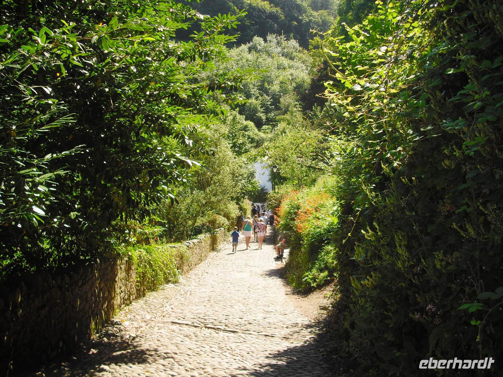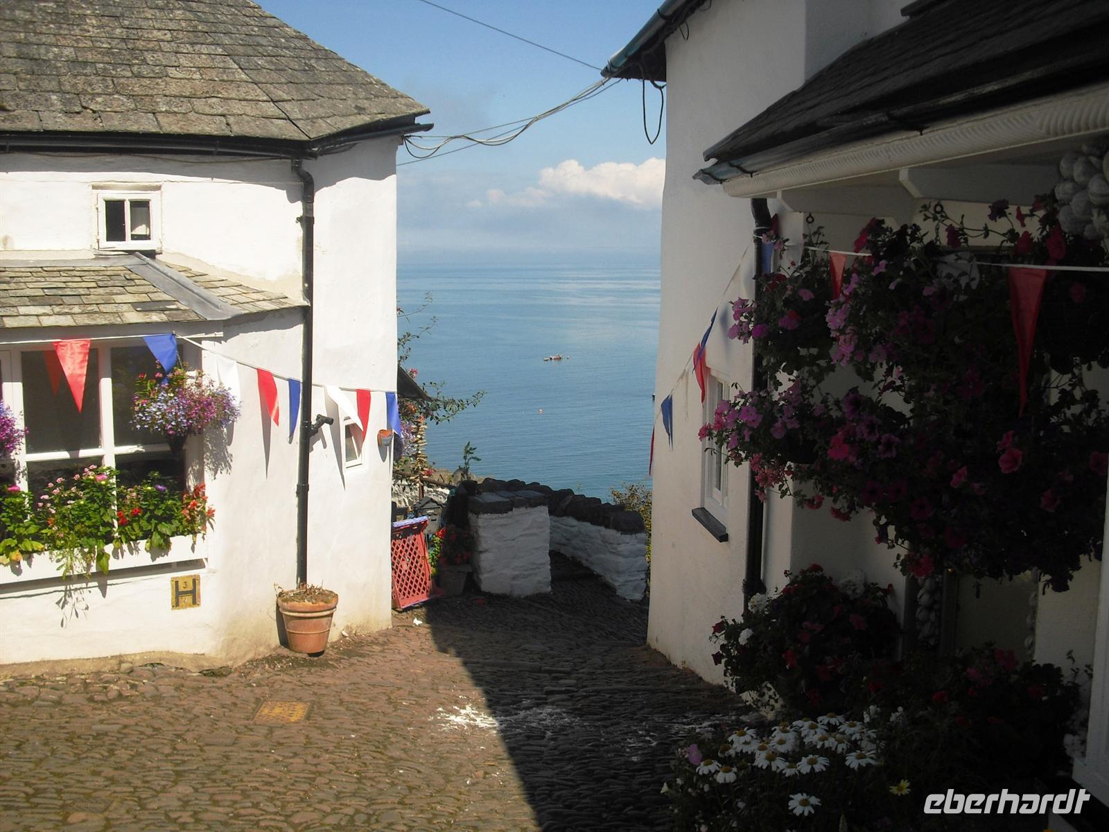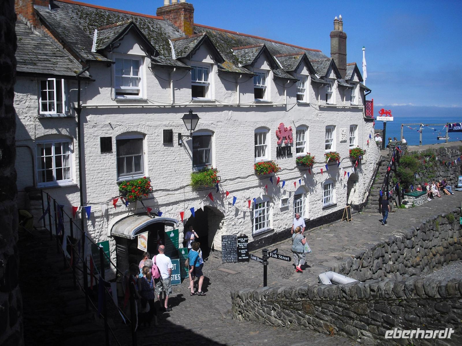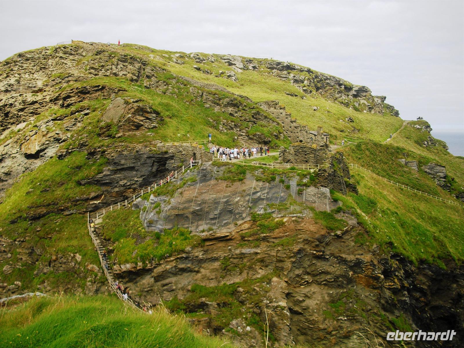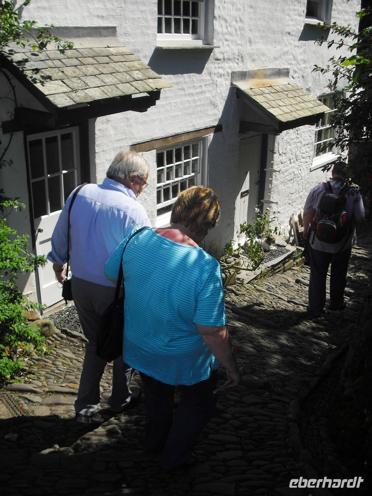 Die Reisegäste könnten sich heute am 9. August 2012, dem 8. Reisetag, individuell erholen, auch Busfahrer und Reiseleiter könnten frei haben Allein, dies passiert nicht, weil sich alle Gäste auf die Spuren von König Arthur begeben wollen. Also auf nach Tintagel und dem Castle, dem vermeintlichen Geburtsort von König Arthur (oder „Arthus“), sowie nach Clovelly, wo für den Besuch ein Eintrittspreis verlangt wird. Wunderschön bei diesem Begleitwetter sind die wilde Nordküste von Cornwall und das Schluchtendorf in Devon. Nach der Rückfahrt nehmen wir im Hotel das Abendessen ein und nach einem abschließenden „small talk“ geht es ins Bett.