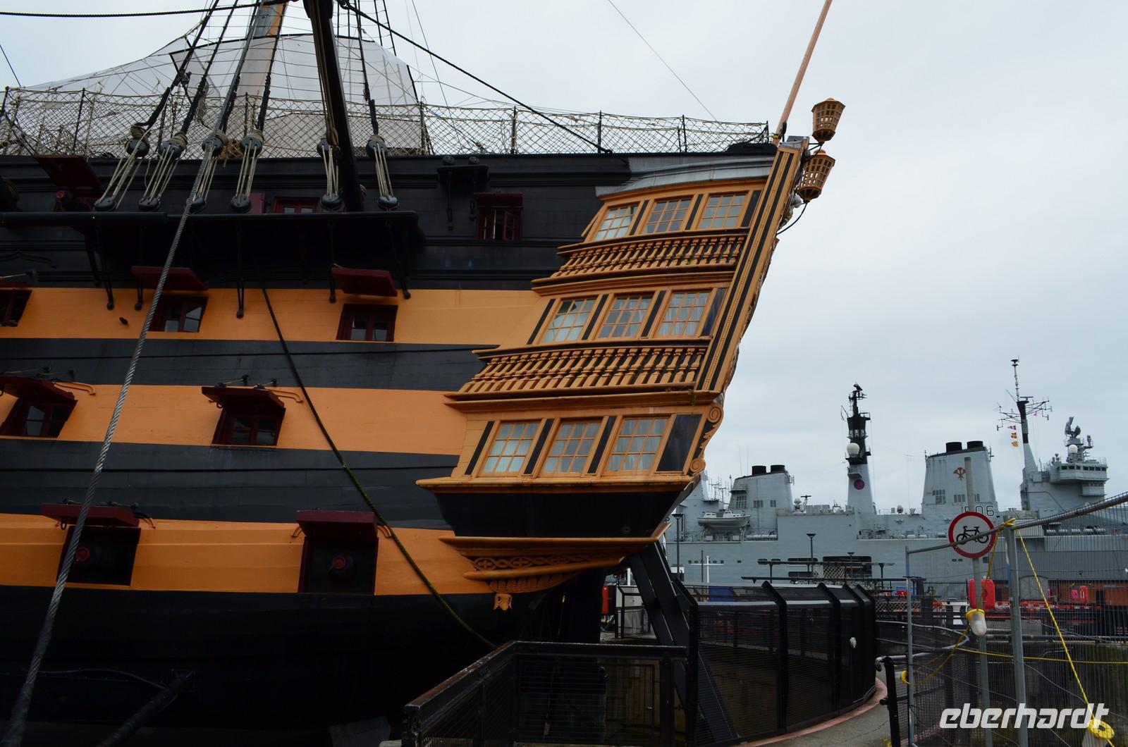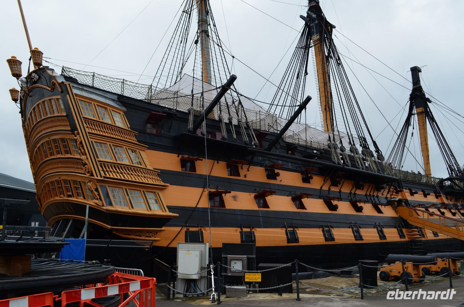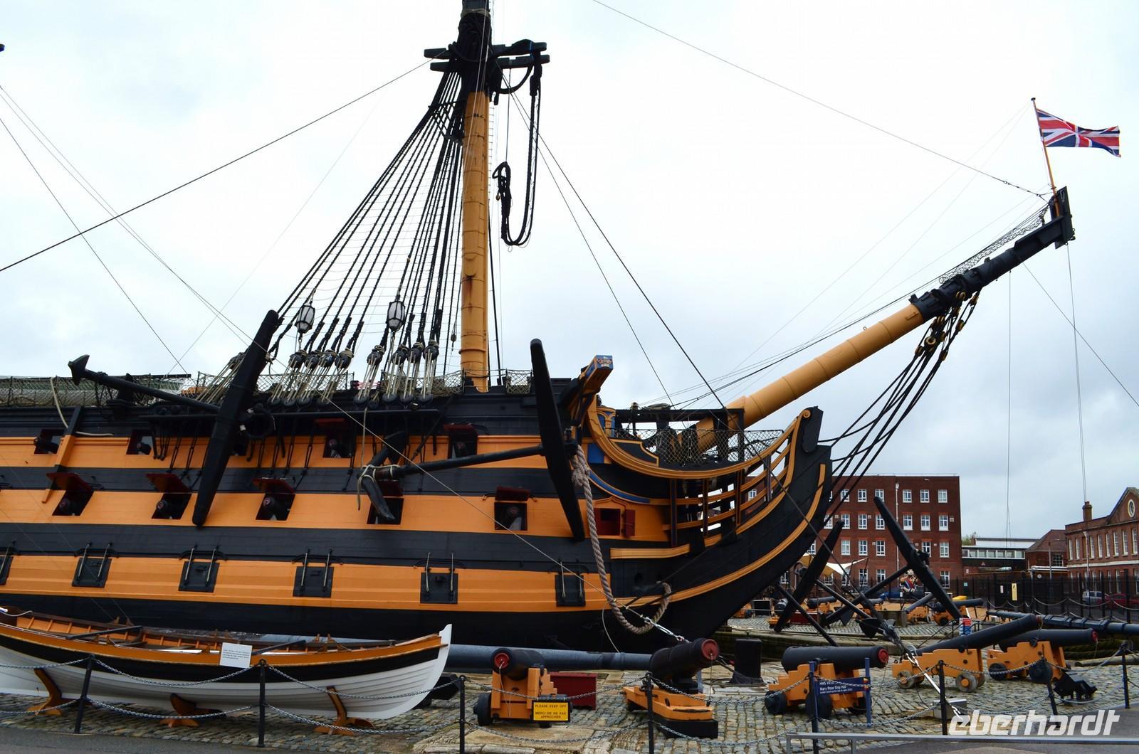Die Weiterfahrt führte uns am Nachmittag nach Portsmouth, der Marinestadt mit den Historischen Docks. Vor uns lag die Besichtigung von Ihrer Majestäts Schiff (HMS) „Victory“. Glücklicherweise spielt das Wetter jetzt wieder mit und wir können die Decks des sehenswerten Flaggschiffes Admiral Nelsons in Ruhe anschauen. Auch die weiteren Ausstellungen auf dem Gelände sind sehenswert und so vergeht die Zeit schnell bis wir am Abend nach Fareham reisen, um im 300jährigen Red Lion Hotel geruhsame Zimmer für die kommenden Nächte und den sehr guten Service eines typisch englischen Hotels mit seinem Restaurant genießen zu können.