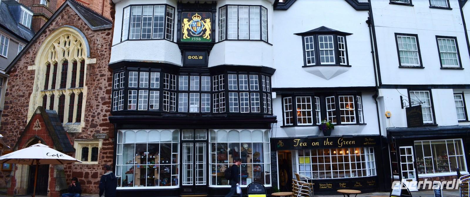 In Exeter machen wir noch einen kleinen Abstecher zu Cathedral mit der herrlichen Westfassade und den historischen Häusern, zum Beispiel Sir Francis Drakes Ships Inn.