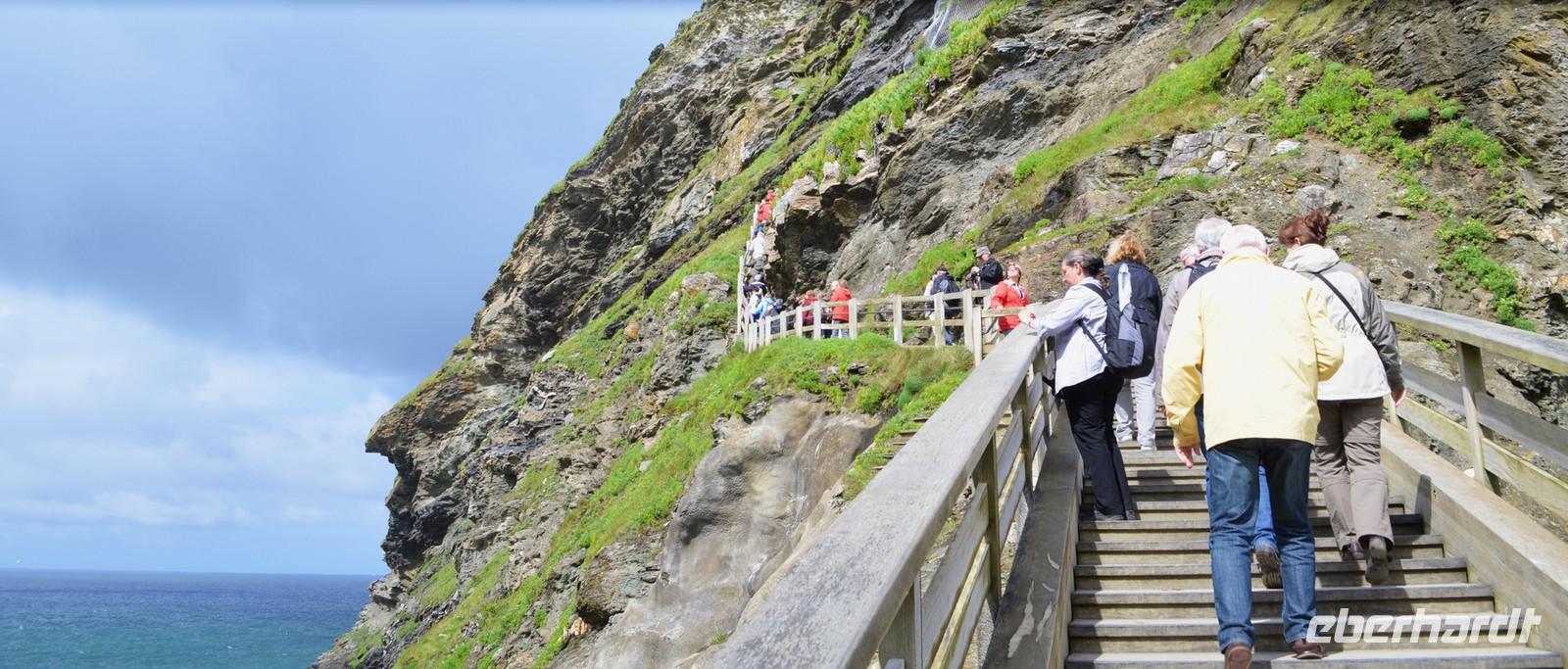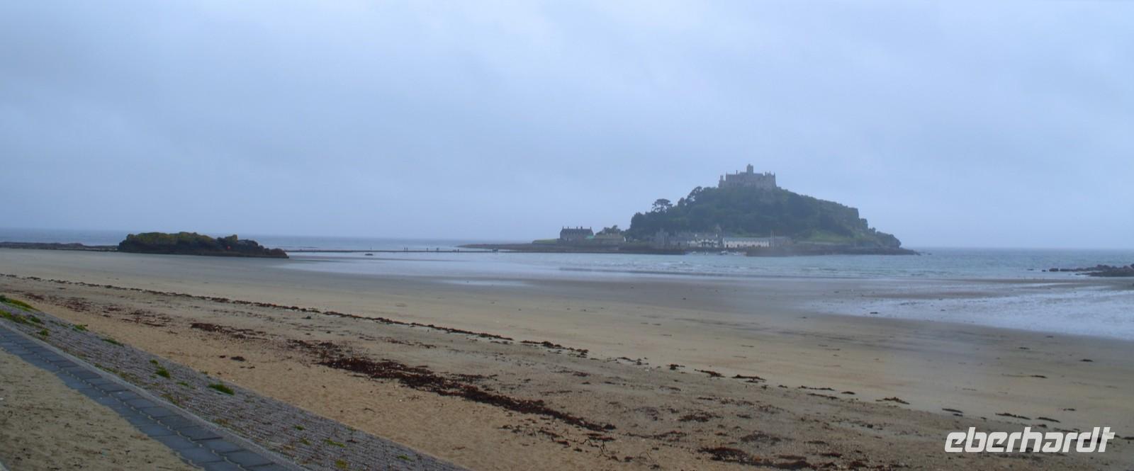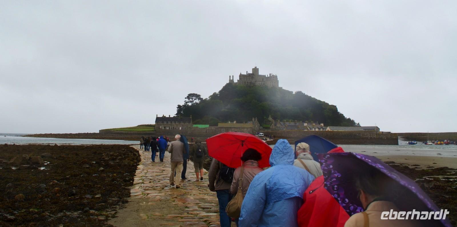 Am nächsten Morgen ist es leider wieder regnerisch. Wir fahren zum St. Michael`s Mount. Gemeinsam geht es zum Übergang, denn es ist Ebbe. Der Weg ist etwas rutschig und auch der Aufstieg zum Schloss durch die Nässe nicht ganz einfach. Die Besichtigung aber interessant. Danach geht es weiter Richtung Land´s End.