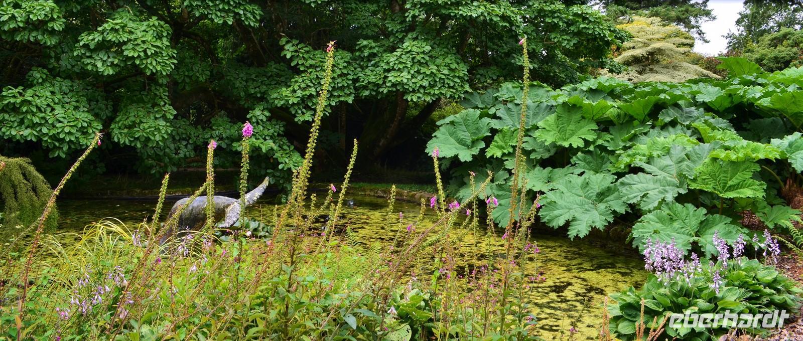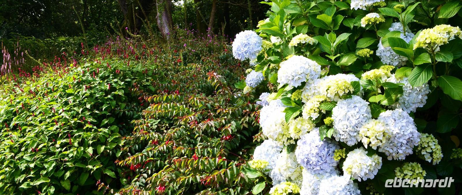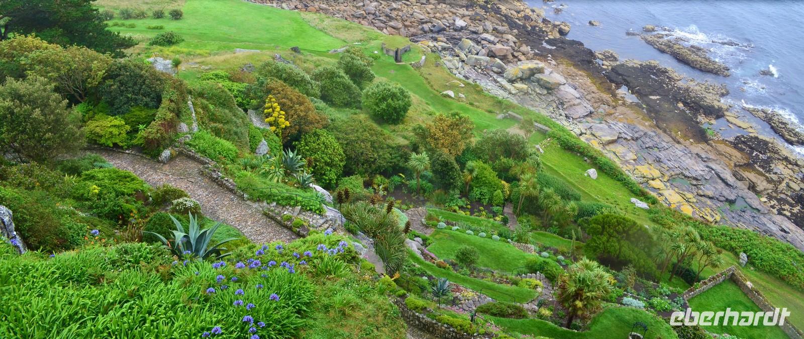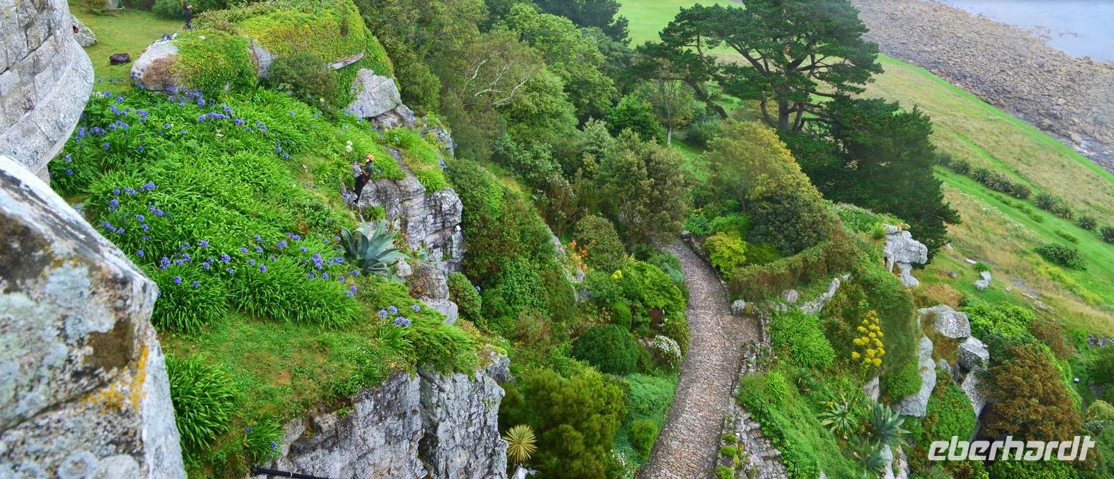 Da nach Auskunft der Gäste die Interessen stark bei Gärten liegen, besuchen wir am Nachmittag noch einen der sehenswertesten in Cornwell, den Trewidden Garden - mit herrlichem Urwald, den größten und ältesten Rhododendren und Magnolien GB`s. Auf der Rückfahrt machen wir nochmals einen kurzen Fotostopp am St. Michael`s Mount, den der Inselberg liegt jetzt herrlich im Sonnenschein.
