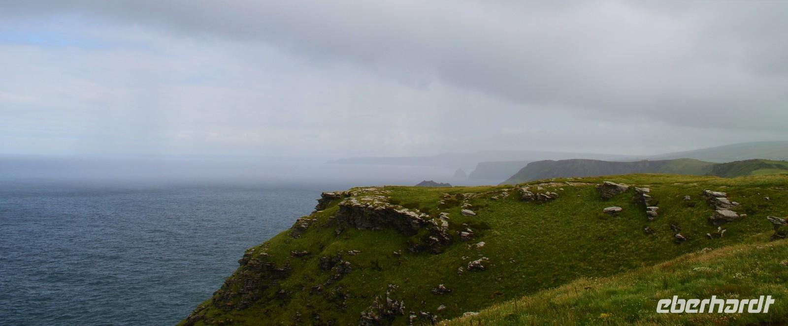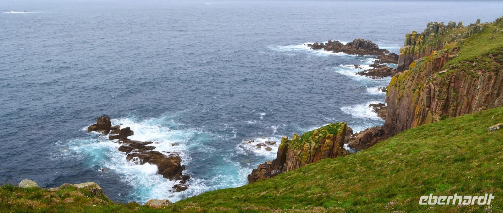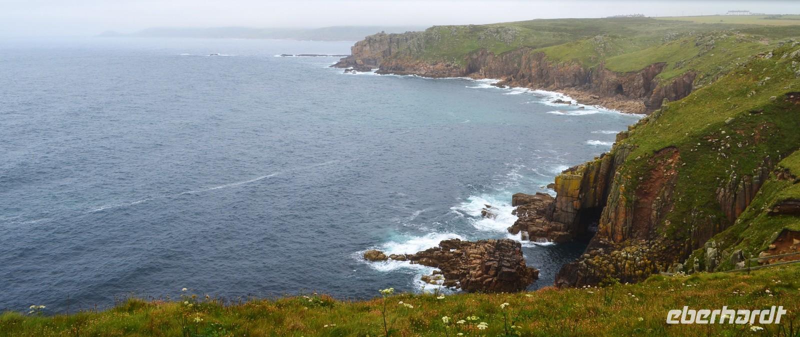 Der anfangs noch dichte Nebel löst sich glücklicherweise auf, die Sonne kommt heraus und es herrscht gute Sicht auf die Buchten am westlichsten Zipfel Englands.