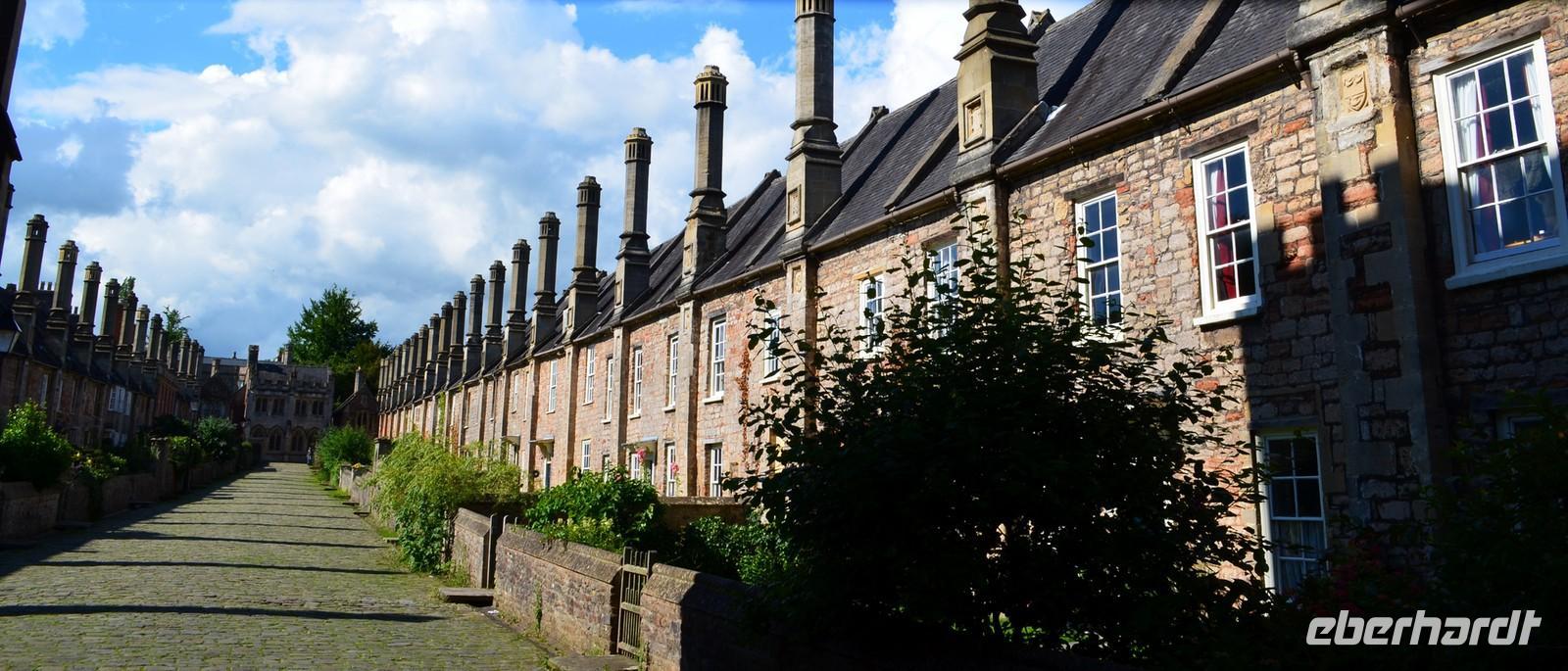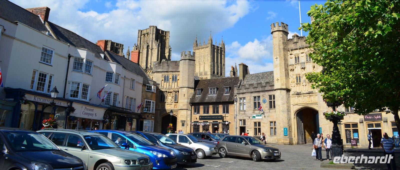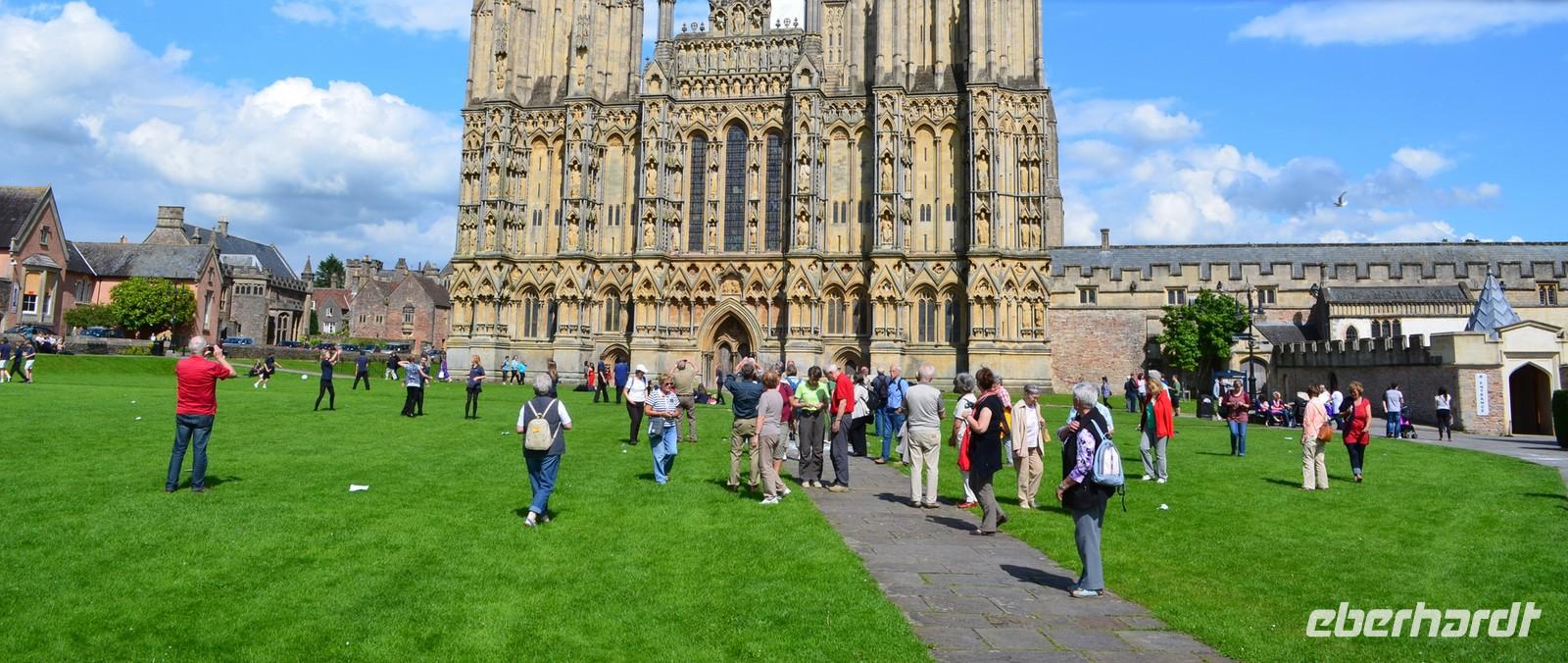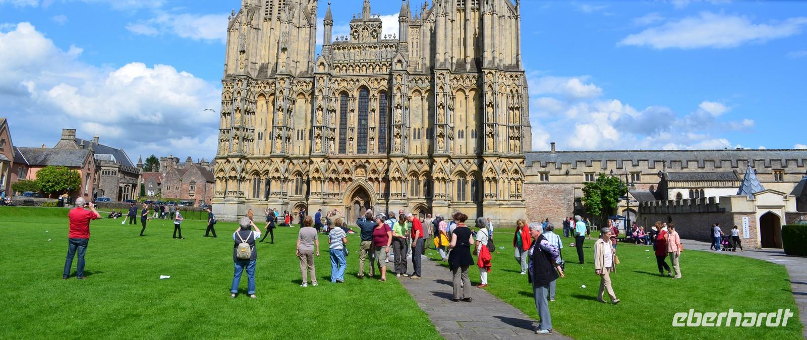 Dann die Weiterfahrt nach Wells, dem nächsten schönen Ort an diesem Nachmittag. Das hübsche Stadtzentrum und die sehenswerte Cathedral sind unsere Ziele. Wir erstellen die Gruppenfotos vor der dritten der berühmtesten Kirchen-Westfassaden Englands, dann ist individuelle Besichtigung des Kircheninneren - mit den kämpfenden Rittern an der historischen Uhr, dem imposanten Stützwerk des Vierungsturmes usw.