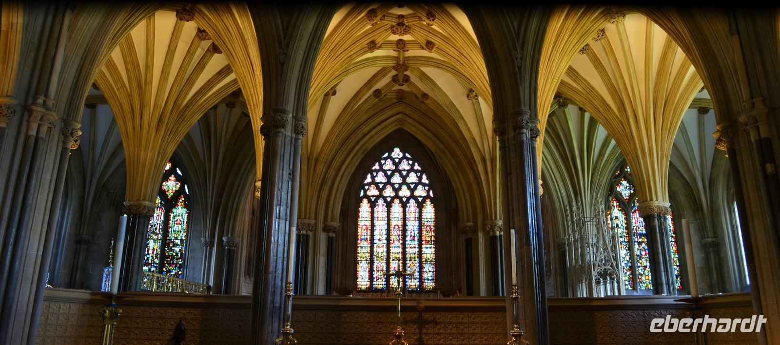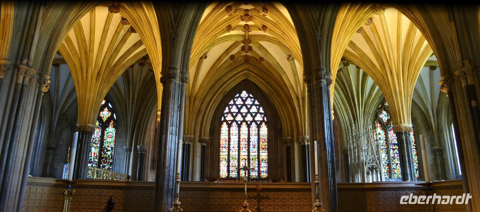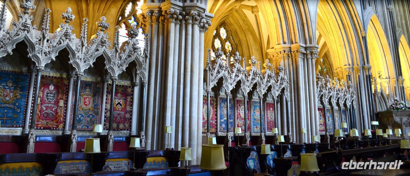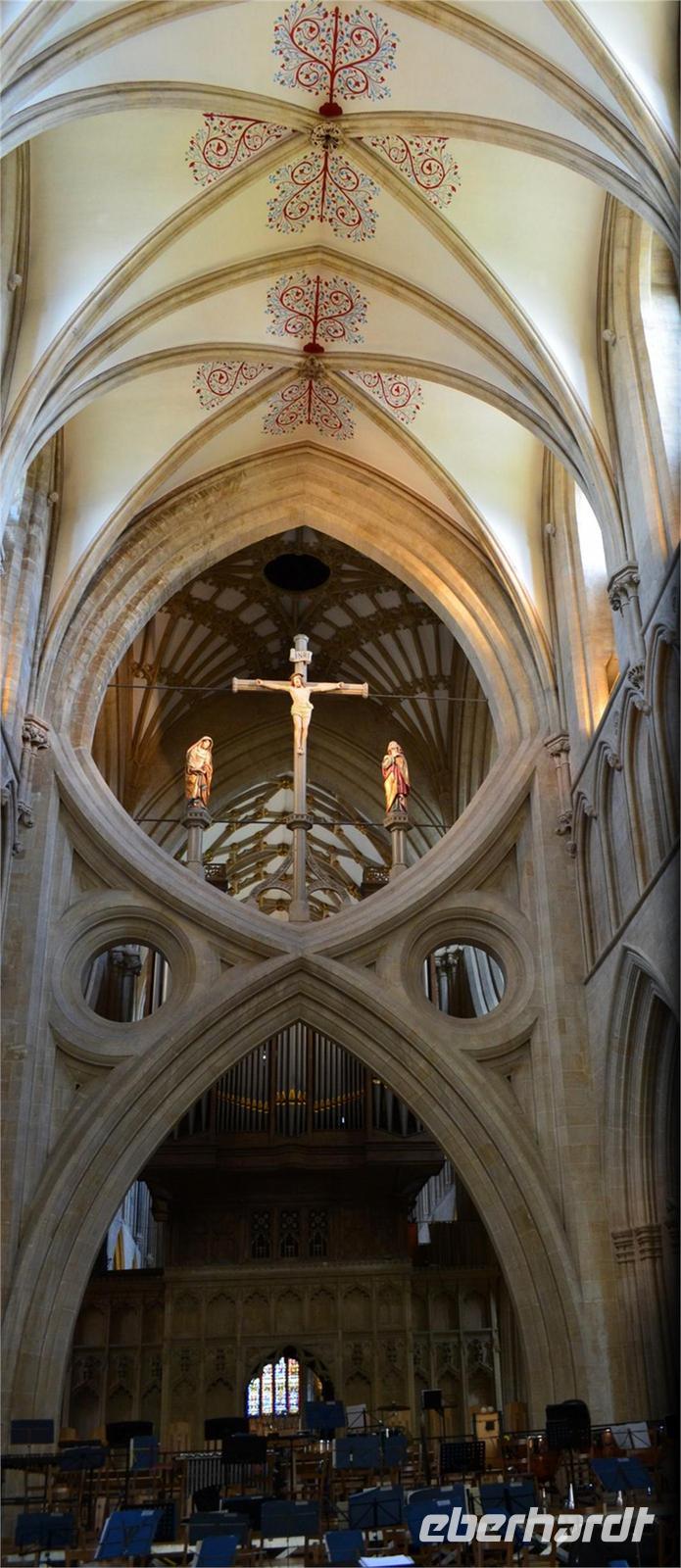 Dann die Weiterfahrt nach Wells, dem nächsten schönen Ort an diesem Nachmittag. Das hübsche Stadtzentrum und die sehenswerte Cathedral sind unsere Ziele. Wir erstellen die Gruppenfotos vor der dritten der berühmtesten Kirchen-Westfassaden Englands, dann ist individuelle Besichtigung des Kircheninneren - mit den kämpfenden Rittern an der historischen Uhr, dem imposanten Stützwerk des Vierungsturmes usw.