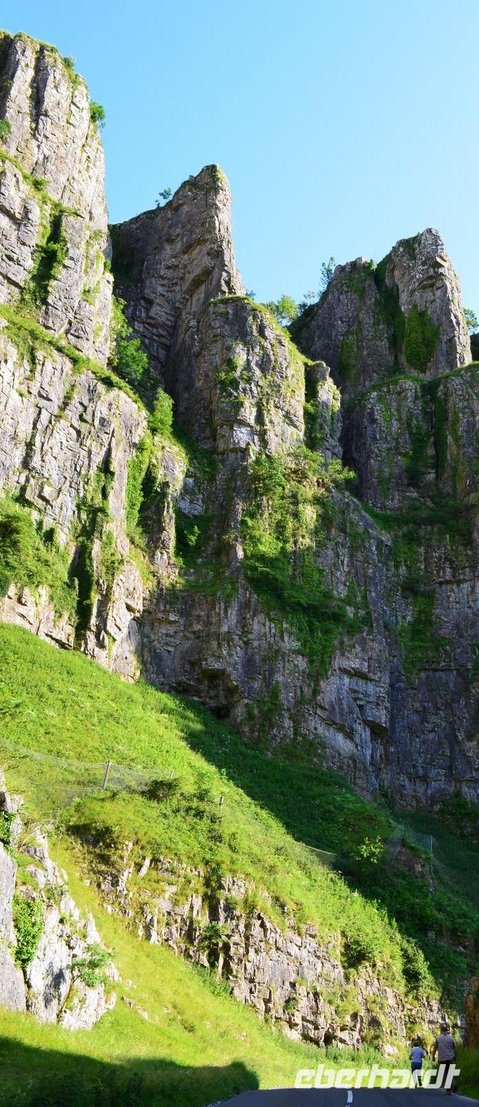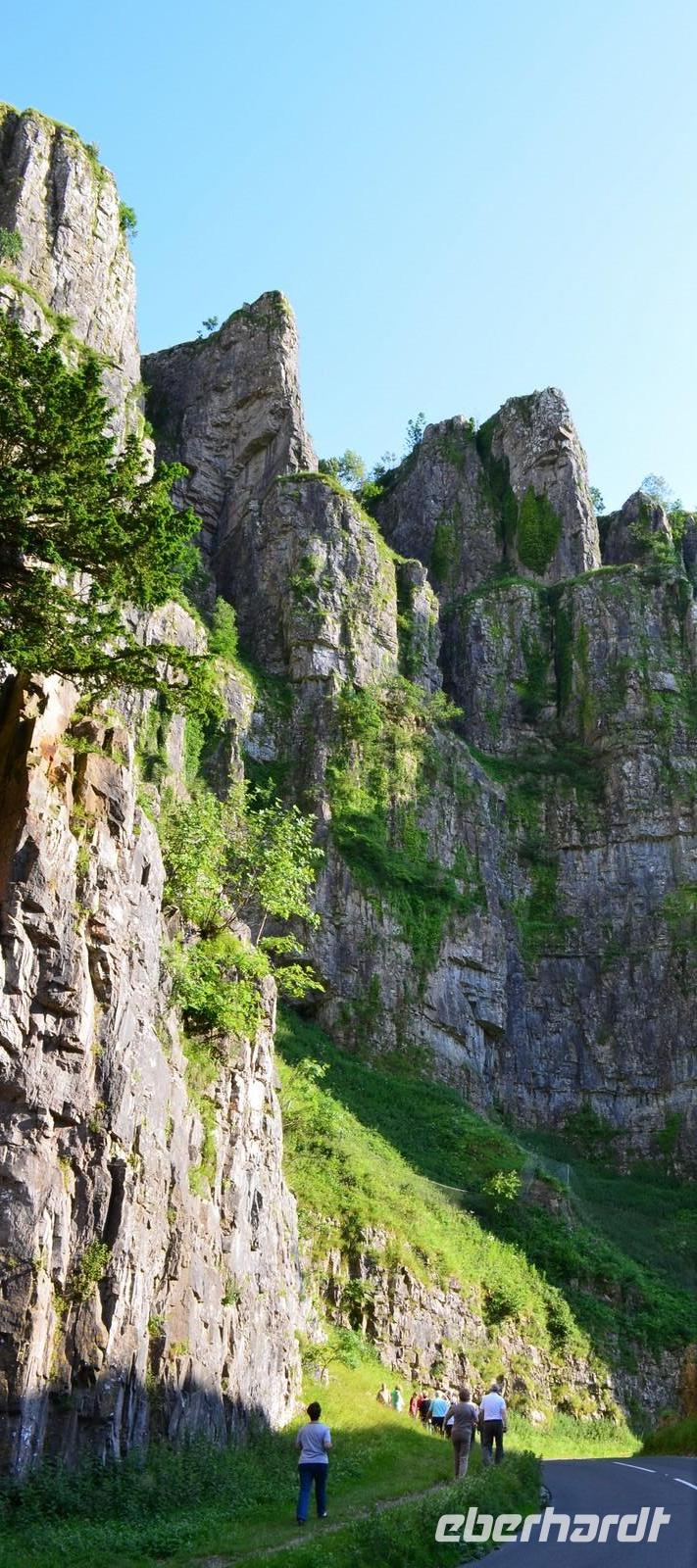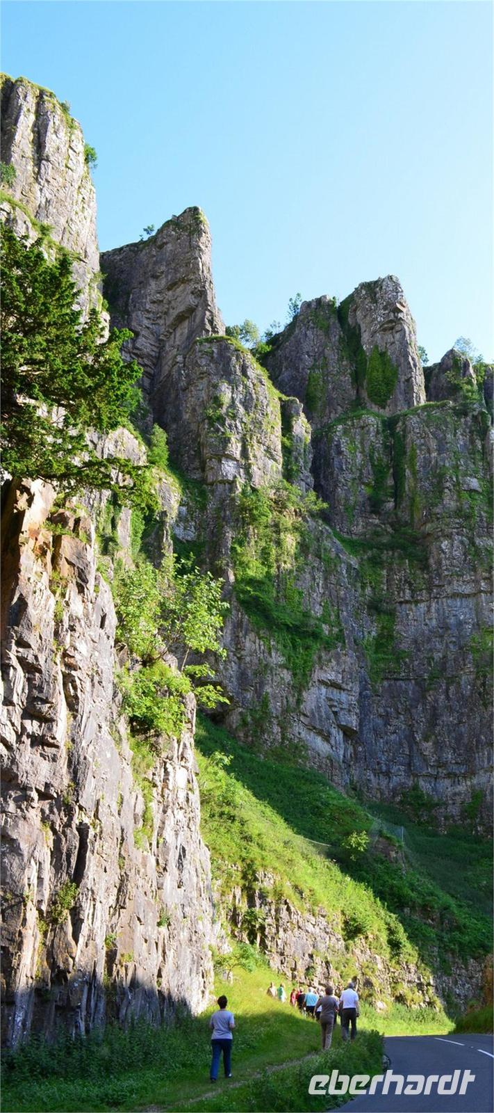 Dann geht es weiter nach Bristol, dabei machen wir aber einen kleinen Umweg und fahren durch die Cheddar-Schlucht mit ihren 120 m hohen Felswänden.