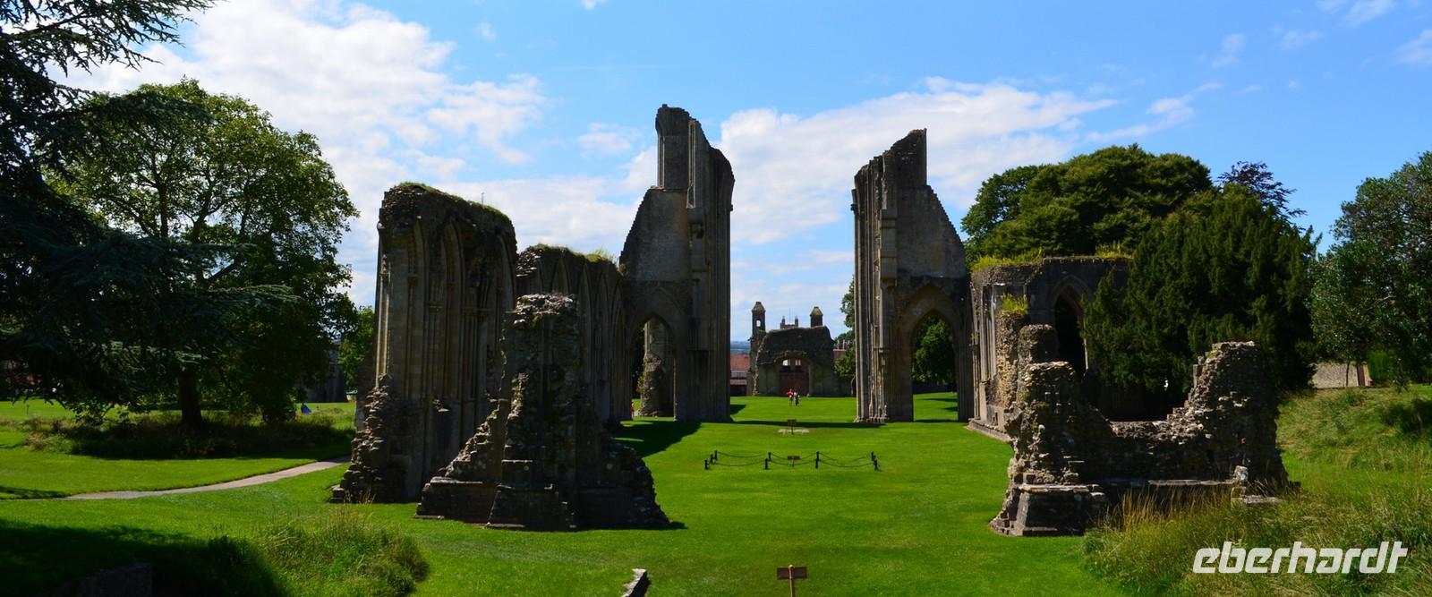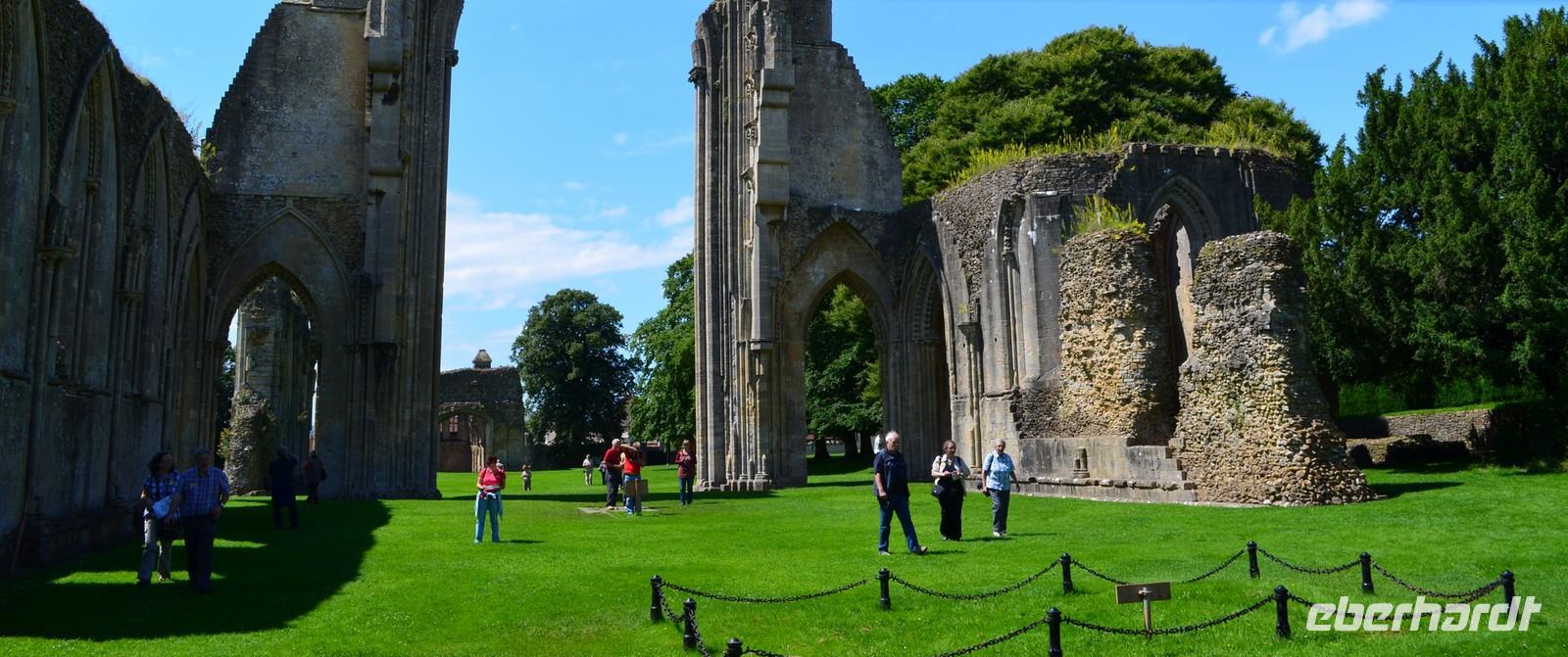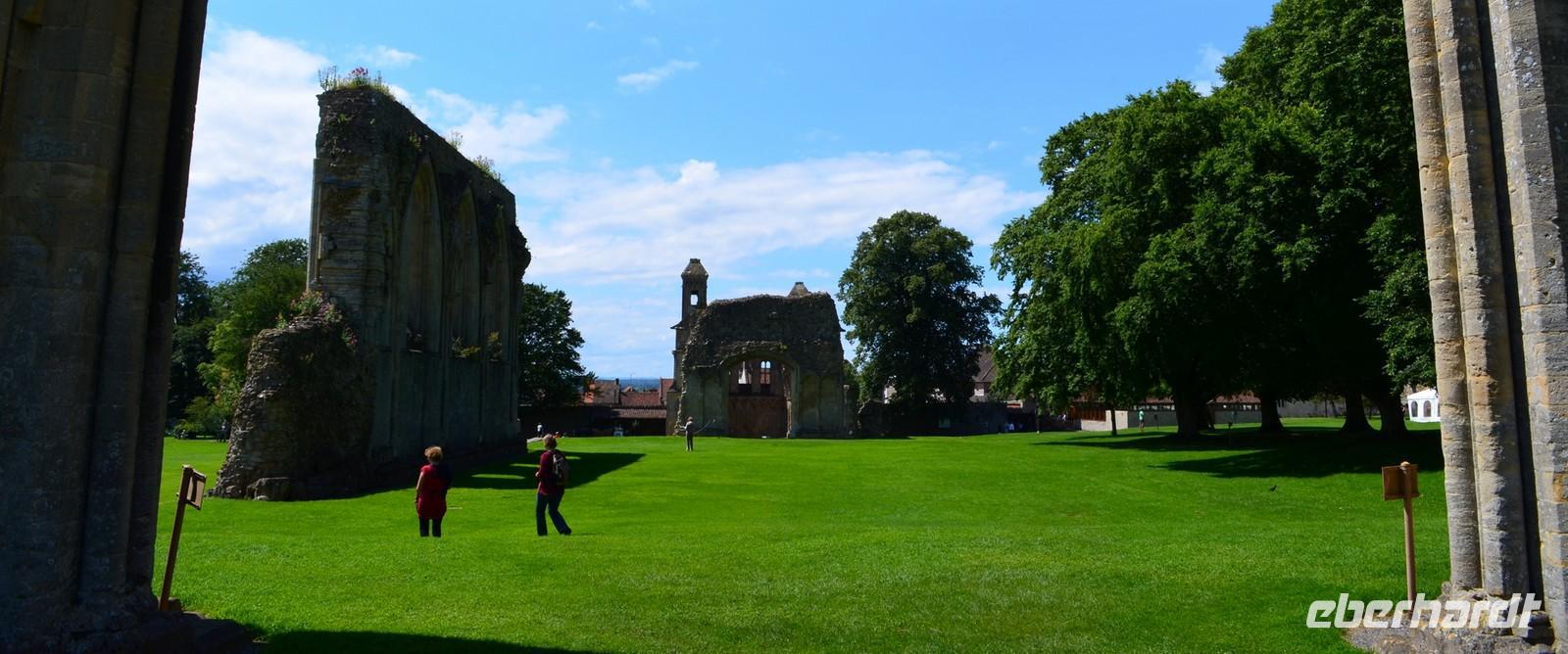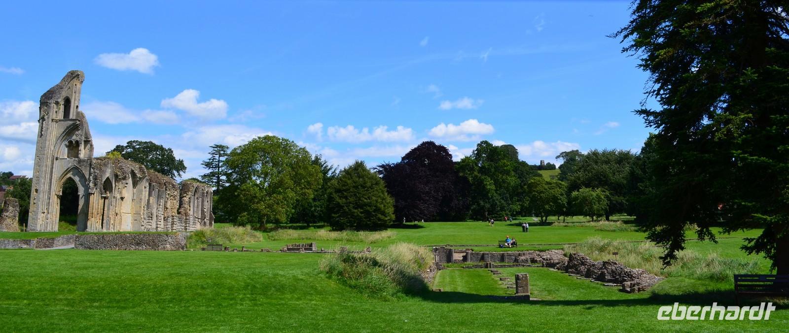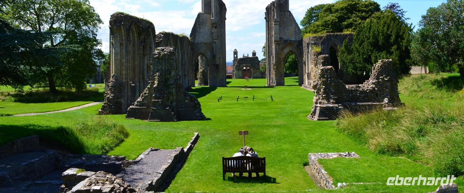 Am Mittag kommen wir in Glastenbury an, dem ersten Reiseziel am heutigen Tag. Wir laufen zur Abbey, besichtigen diese schöne Klosterruine und sind begeistert. Wir stehen andächtig am Grab von König Artus und seiner Genuvevre und wir schauen hinauf nach Avalon - zum Glastonbury Tor.