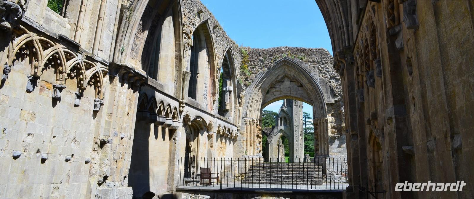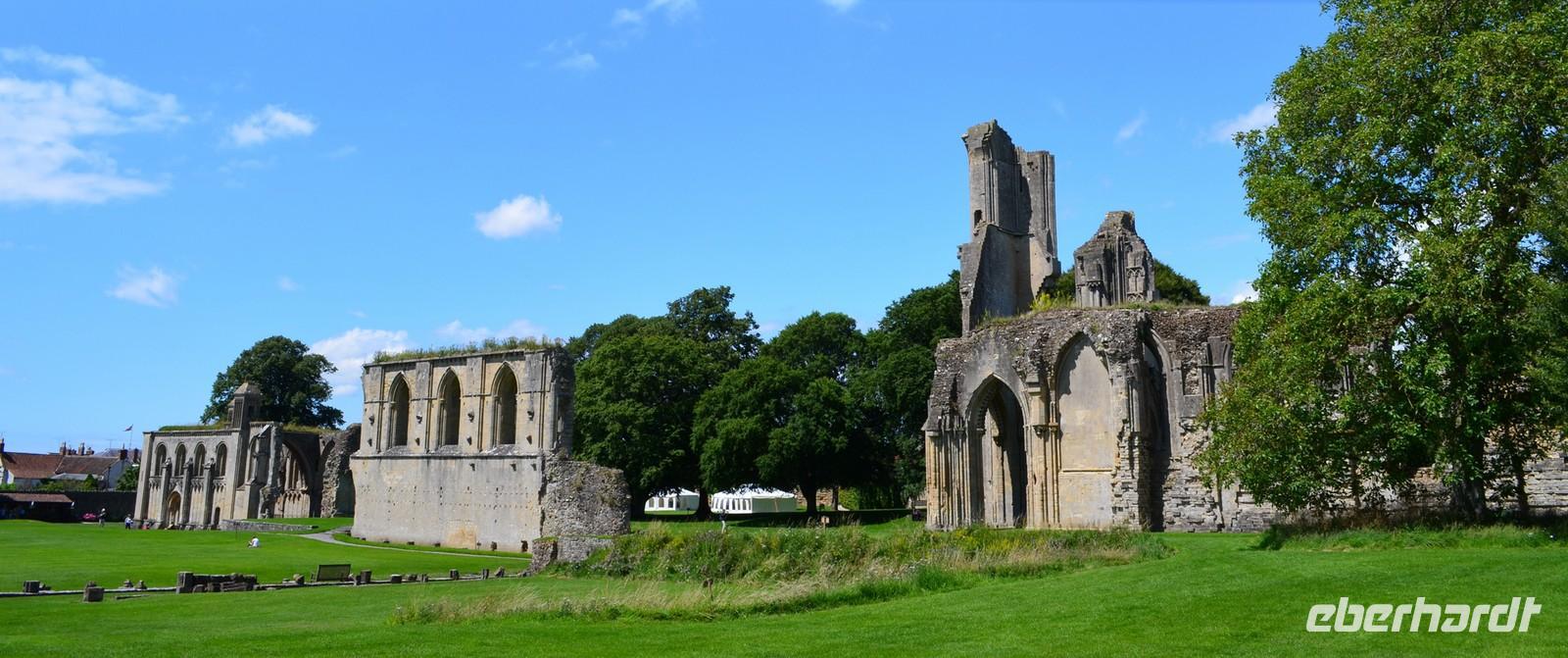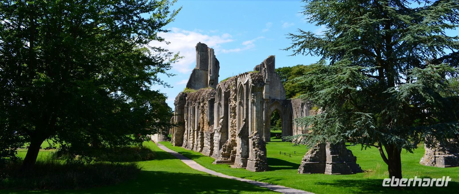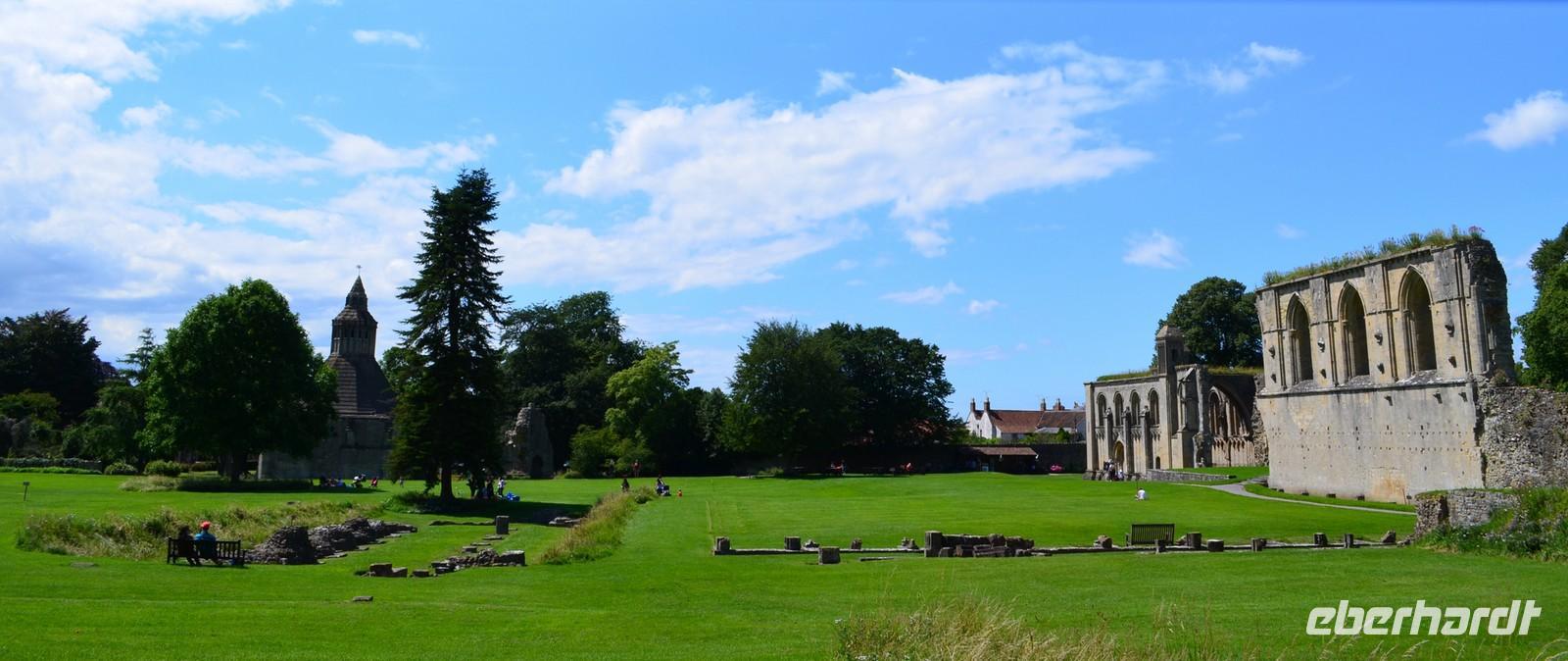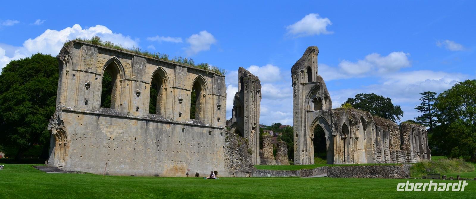 Am Mittag kommen wir in Glastenbury an, dem ersten Reiseziel am heutigen Tag. Wir laufen zur Abbey, besichtigen diese schöne Klosterruine und sind begeistert. Wir stehen andächtig am Grab von König Artus und seiner Genuvevre und wir schauen hinauf nach Avalon - zum Glastonbury Tor.