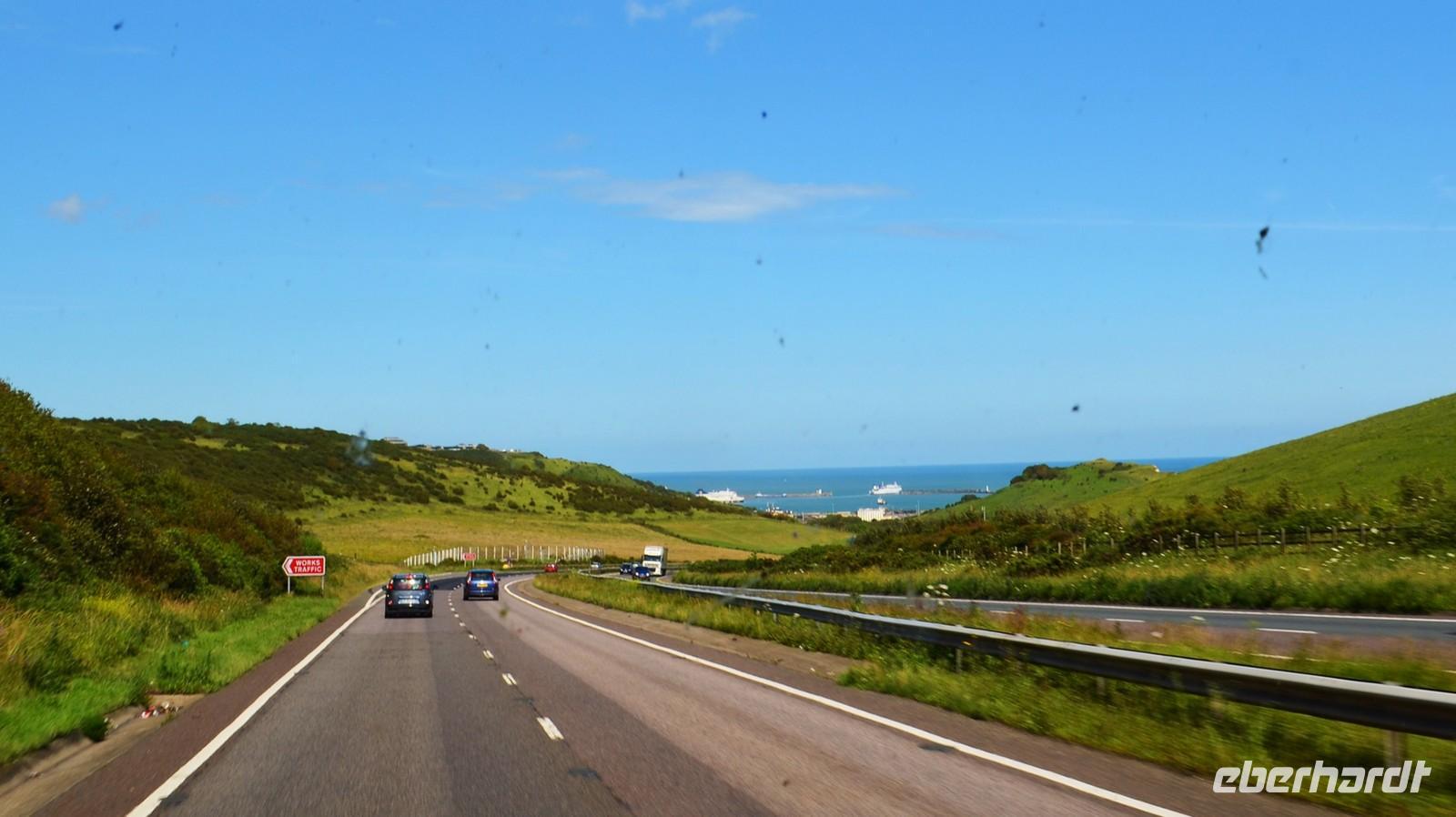 Bei ruhiger See und jetzt schönem Wetter setzten wir nach Dover über.