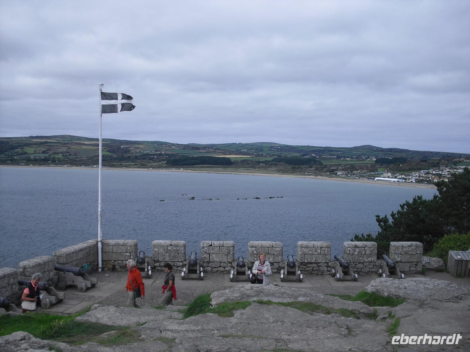 Der gesamte Nachmittag wurde mit dem Besuch von St. Michaels Mountausgefüllt. Mit Booten setzten wir zur Gezeiteninsel über und erklommen, teilweise mit einiger Mühe, den Burgfelsen. Belohnt wurden wir alle mit einer spektakulären Panoramasicht auf die cornische Küste und mit dem Kennenlernen des Klosters, der Festung und der Wohnstätte der Familie St. Aubyn. Im Jahr 1647 wurde Colonel John St. Aubyn von den Lords und Commons des Parlaments zum „Captain of the Mount" ernannt. Zwölf Jahre später konnte er die Insel käuflich erwerben, und seitdem ist sie Wohnsitz der Familie St. Aubyn, seit 1954 allerdings nur zur Miete beim National Trust. NISCH SCHLECHT!