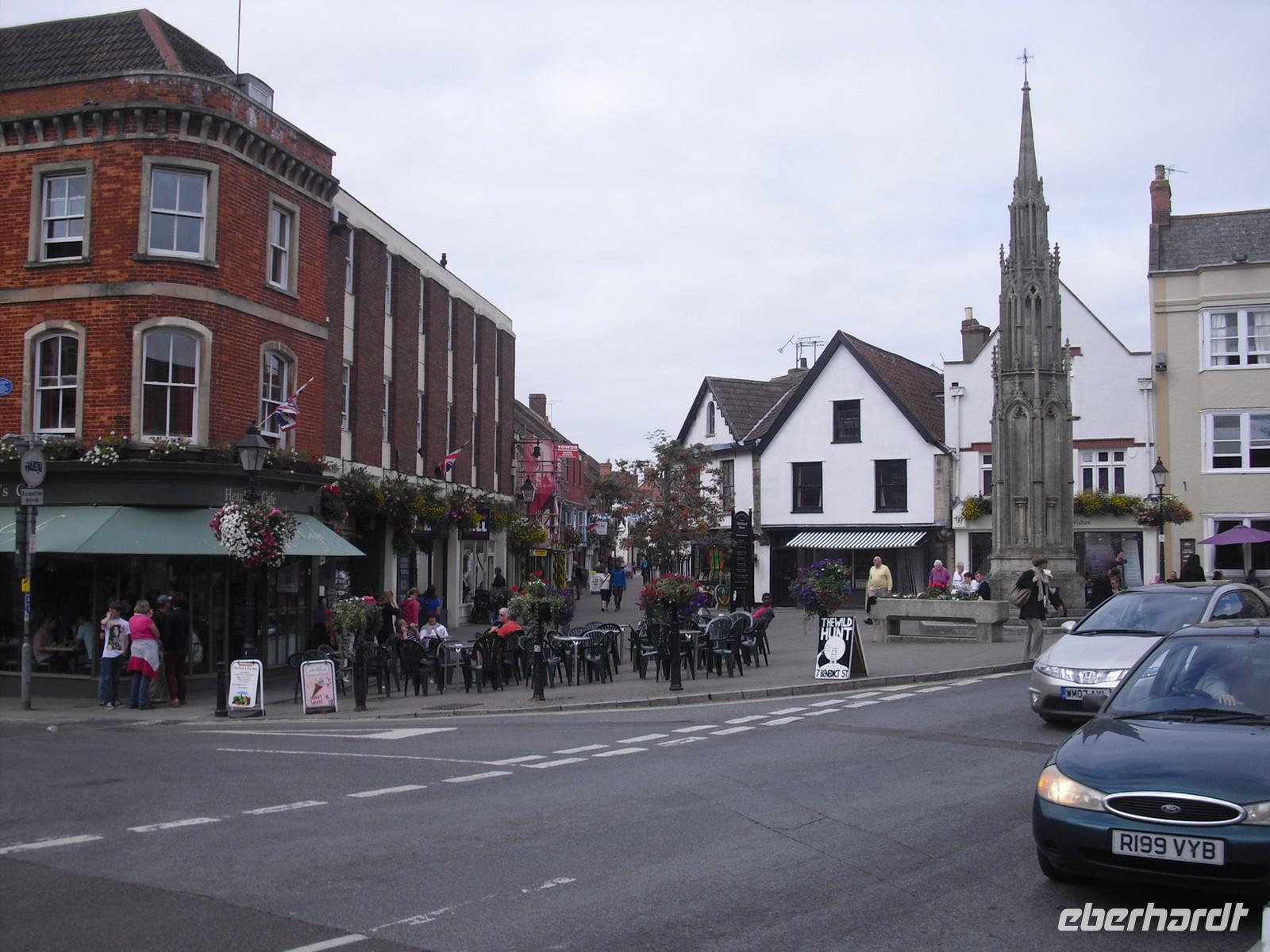 Unser letzter Tag in England begann am Sonntag, dem 16.09., mit einem letzten englischen Frühstück. Nach der Abfahrt ging es zuerst zu einem bemerkenswerten Bauwerk von I.K. Brunel: eine Straßenhängebrücke über dem Fluss Avon in Bristol. In schwindelerregender Höhe überspannt sie eine beeindruckende Schlucht. NISCH SCHLECHT! Im Anschluss fuhren wir ein Stück in das reizvolle Gebiet der Cotwolds hinein. Als typischen, sehenswerten Ort für diese Gegend wählten wir Tetbury, in dessen Nähe sich der Landsitz Highgrove von Prinz Charles befindet. Auch in Tetbury gibt es ein Geschäft, wo „Royale Produkte" verkauft werden. Nichts wie rein und wenigstens mal schauen! Wir lernten in Tedbury auch eine „richtige", sehr freundliche Engländerin kennen. NISCH SCHLECHT!