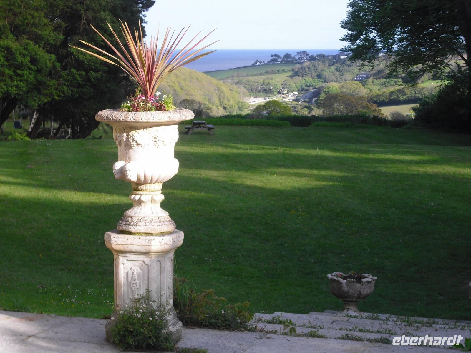 Unser heutiger Tag führte nach dem Frühstück an die Westküste Cornwalls. Bequem erreichten wir mit unserem Bus Tintagel, der vermeintliche Geburtsort von König Arthur. Wir besichtigten Tintagel Castle bzw. das, was davon übrig ist und konnten auch die Höhle des Zauberers Merlin entdecken. Unsere Mittagspause hatten wir in Boscastle, ein Schluchtendorf, das im August 2004 so schrecklich durch Überschwemmungen und Schlammlawinen zerstört wurde. Ohne irgendeinen Hinweis darauf sieht man es dem Ort nicht mehr an. Tea Time in Clovelly war am Nachmittag angesagt. Dieser Ort in Devon ist dafür bekannt, das es seinen Besuchern einen Eintritt abnimmt. Unglaublich, aber wahr! Es ist trotzdem ein pittoreskes Dörfchen und einen Besuch allemal wert. Nach unserer Wiederankunft im Hotel erneut ein leckeres Abendessen,ein Kennenlernen von Ben, dem Chefkoch des Hotels und eine letzte Übernachtung in unserem Herrenhaus in Cornwall.