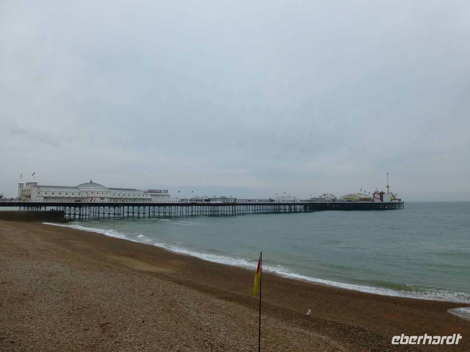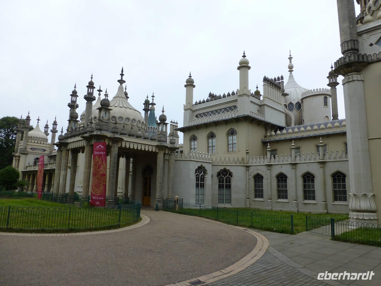 Nach dem Frühstück fahren wir zum Fährhafen von Calais. In ca. 80 Minuten setzten wir über nach Dover. Zwischen Calais und Dover hat der Ärmelkanal seine schmalste Stelle und so geht es hier am schnellsten. In Dover grüßen uns die weißen Klippen. Über Hythe erreichen wir später wieder Küste und fahren durch die Romney March nach Rye. In dem mittelalterlichen Hafenstädtchen legen wir einen Stopp ein. Es lohnt sich die alten Gassen zu erkunden. Rye war früher ein bedeutender Hafenort, die Stadt gehörte zu den Cinque Ports, welche sich um die Flotte des Königs zu kümmern hatte. Heute ist der Hafen weitgehend verlandet, nur noch private Boote verirren sich hier her. Weiter geht es nach Hastings, dem ersten einer Reihe von Seebädern in Südengland. Bedeutend sind hier die Net-Shops, das sind Netzspeicher für Fischernetze. Von hier fahren wir durch das pittoreske Seebad Eastbourne zum Beachy Head. Leider machen hier tief hängende Wolken einen Blick unmöglich. Wir machen dennoch hier unsere Mittagspause, denn es gibt einen Busparkplatz. Am Nachmittag erreichen wir unser Hotel in Brighton. Nach dem Bezug der Zimmer gehen wir noch zu einem Besuch des Royal Pavillion. Das exotische Gebäude im indischen Maharadscha Stil wurde vom Georg dem IV in Auftrag gegeben als er noch Thronanwärter war. Es sollte ein Repräsentativer Sommerpalast sein und den Schönen und Reichen zum Feiern dienen. Schon Königin Victoria hat sich dem Bauwerk entledigt und es im 19. Jh. An die Stadt Brighton verkauft.