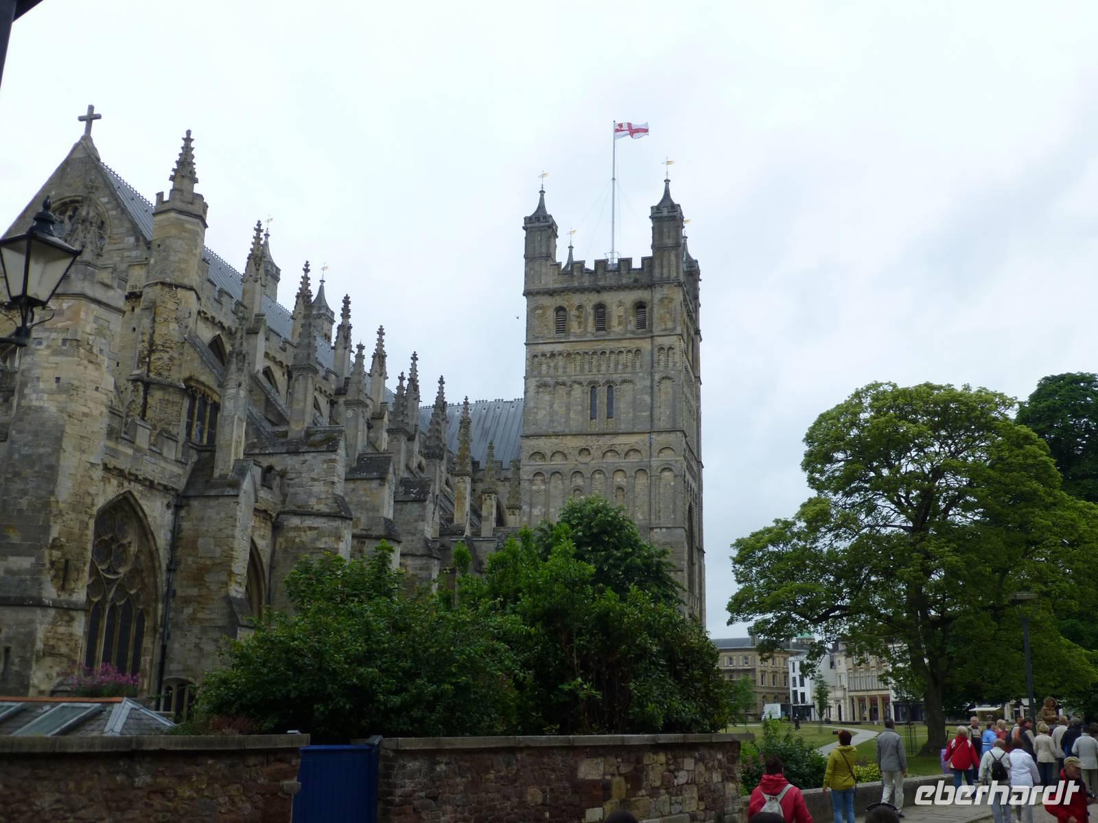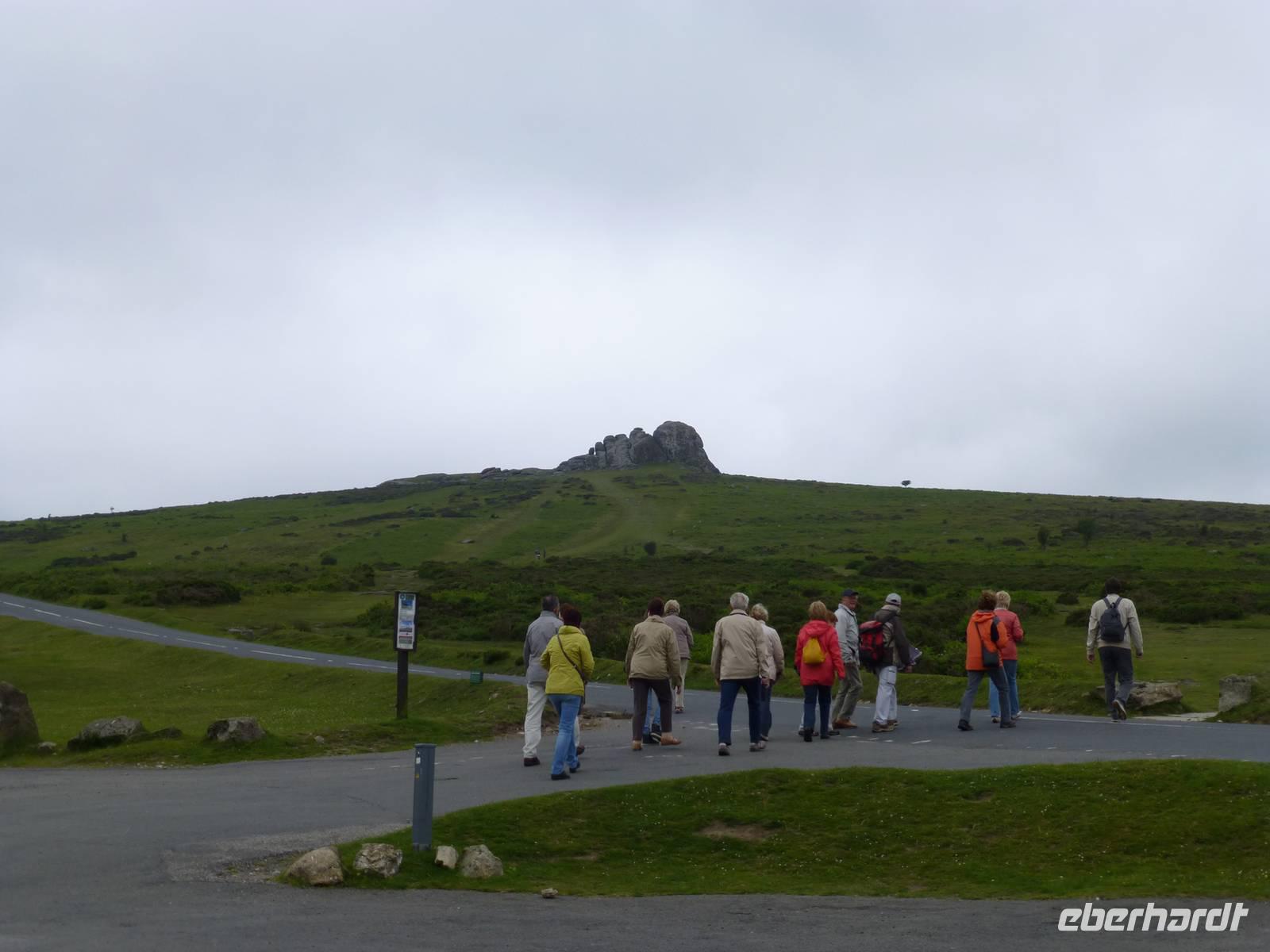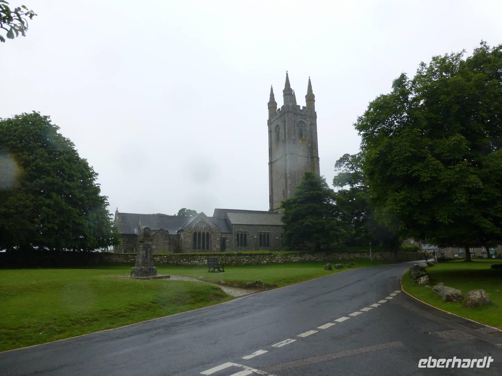 Als Extra für unsere Gäste haben wir heute eine örtliche Reiseleiterin gebucht. Renate Davie, aus Bonn stammend und seit einigen Jahren in Falmouth lebend, wird diesen Tag gestalten. Wir beginnen mit einem kleinen Rundgang durch die Stadt Exeter, welche nicht nur eine schöne Kathedrale aufweisen kann, sondern mit einer schönen Mischung aus historischer und moderner Bausubstanz glänzt. Danach starten wir Dartmoor. Das Wetter zeigt sich noch von seiner besseren Seite und so nutzen wir die Gelegenheit hinauf zum Granitfelsen Haytor zu laufen. Danach zieht es sich zu und das Dartmoor erhält das typische neblig trübe Wetter. In Widecombe in the Moor machen wir einen nächsten Halt. Das kleine Dörfchen hat eine kleine Kirche mit einem außergewöhnlich hohen Turm von 40 m aufzuweisen. Wir müssen die gleiche Straße wieder zurück und fahren dann weiter über Mortenhampsted nach Postbridge. Hier können wir die alte „Clapperbridge" besichtigen. Vorbei an Princetouwn erreichen wir Tavistock und machen in diesem Landstädtchen noch einen kleinen Bummel. Danach fahren wir direkt nach Falmouth, wo wir das Penmorvah Manor Hotel bei Budock Water gg. 18 Uhr erreichen.