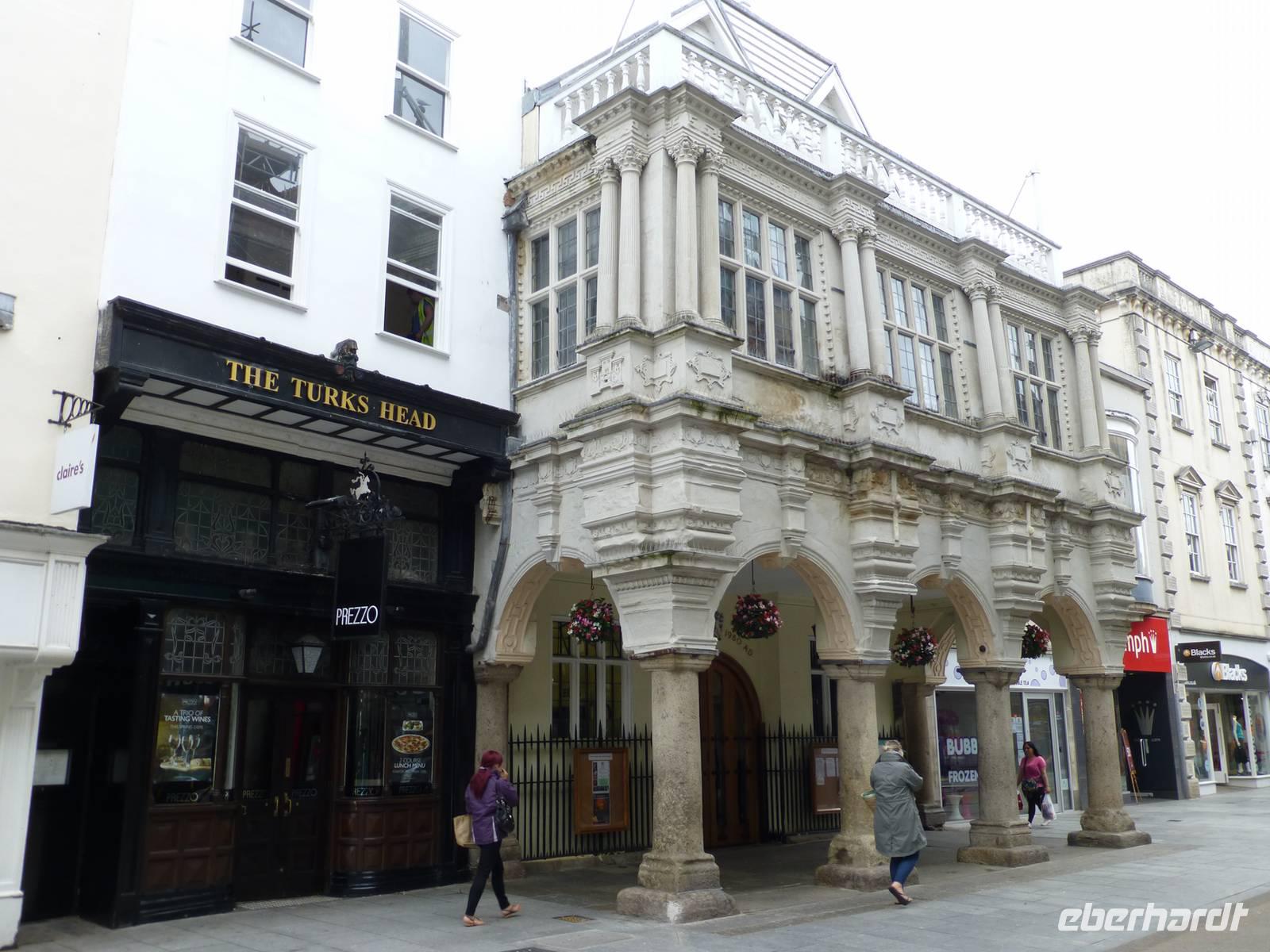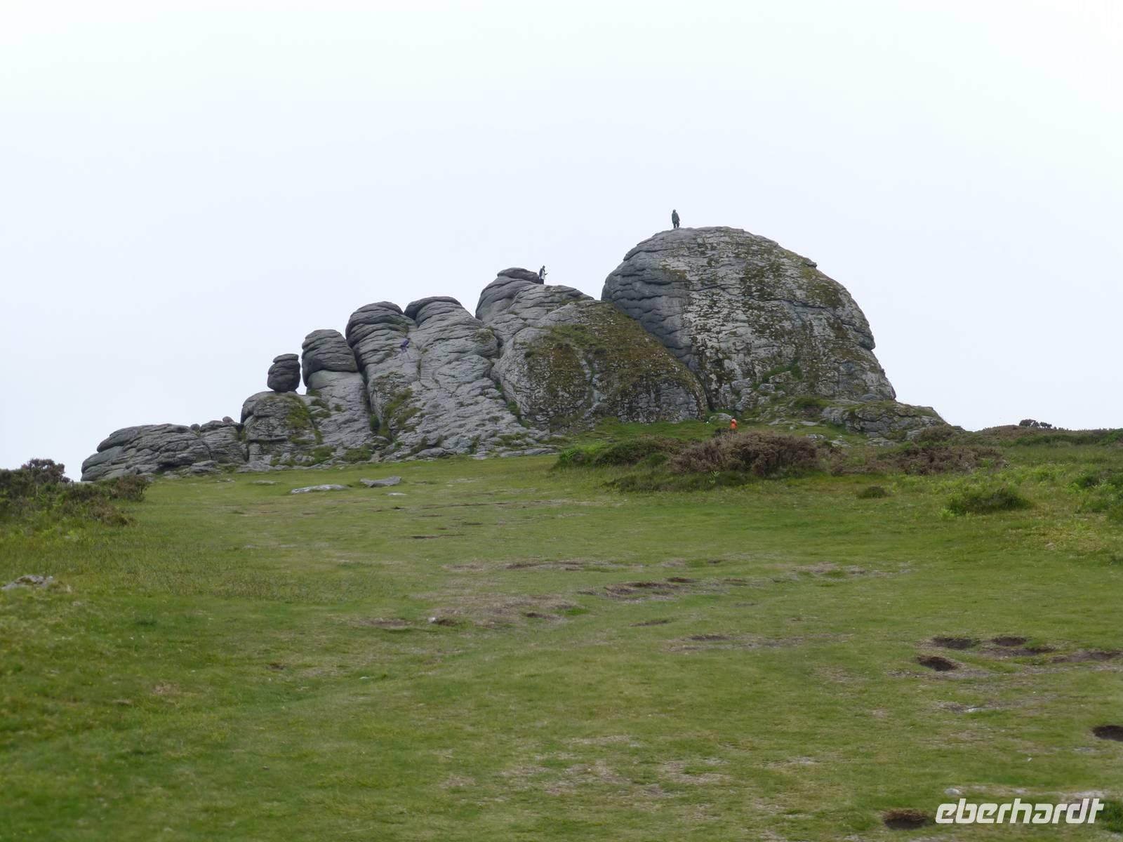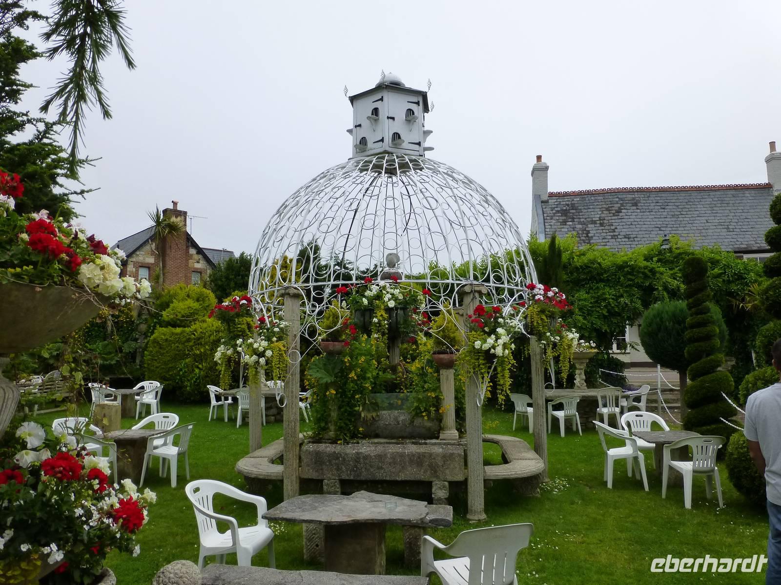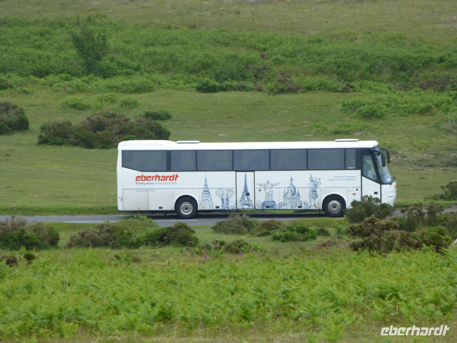 Als Extra für unsere Gäste haben wir heute eine örtliche Reiseleiterin gebucht. Renate Davie, aus Bonn stammend und seit einigen Jahren in Falmouth lebend, wird diesen Tag gestalten. Wir beginnen mit einem kleinen Rundgang durch die Stadt Exeter, welche nicht nur eine schöne Kathedrale aufweisen kann, sondern mit einer schönen Mischung aus historischer und moderner Bausubstanz glänzt. Danach starten wir Dartmoor. Das Wetter zeigt sich noch von seiner besseren Seite und so nutzen wir die Gelegenheit hinauf zum Granitfelsen Haytor zu laufen. Danach zieht es sich zu und das Dartmoor erhält das typische neblig trübe Wetter. In Widecombe in the Moor machen wir einen nächsten Halt. Das kleine Dörfchen hat eine kleine Kirche mit einem außergewöhnlich hohen Turm von 40 m aufzuweisen. Wir müssen die gleiche Straße wieder zurück und fahren dann weiter über Mortenhampsted nach Postbridge. Hier können wir die alte „Clapperbridge" besichtigen. Vorbei an Princetouwn erreichen wir Tavistock und machen in diesem Landstädtchen noch einen kleinen Bummel. Danach fahren wir direkt nach Falmouth, wo wir das Penmorvah Manor Hotel bei Budock Water gg. 18 Uhr erreichen.