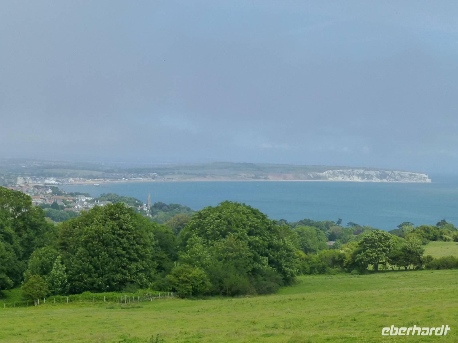 Ein Ausflug zur Isle of Wight ist heute unser Programm. Von Southhampton fahren wir knapp eine Stunde mit der Fähre nach East Cowes. Einen ersten Stopp auf der Insel, welche auch als "Garten Englands" bezeichnet wird, machen wir im kleinen Ort Godshill. Neben schönen mit Reet gedeckten Häusern ist auch die auf einen Hügel gebaute Kirche aus dem 14. Jh. mitsamt dem Gemeindefriedhof interessant. Heute am Sonntag ist 11 Uhr Gottesdienst, so das leider nicht jeder einen Blick hinein werfen kann. Die Glocken werden hier noch mit der Hand geläutet, wie mir der Pfarrer der Gemeinde erklärte. Von hier fahren wir weiter nach Shanklin, einem der Hauptorte auf der Isle of Wight. Ein Rundgang durch Old Shanklin oder auch ein Gang hinab zum Strand sind die Ziele. Am Morgen machte das Wetter noch keinen so tollen Eindruck, jetzt zur Mittagszeit scheint die Sonne. Allerdings fahren wir einige Kilometer später wieder tiefliegende Wolken oder man kann es auch "trockenen Nebel" nennen. An den Needles möchte die Sonne, aber sie schafft es noch nicht so recht. Wir fahren oder laufen trotzdem hinunter zum steinigen Strand und von dort sind die bis zu 30 m hohen Felsnadel aus Kalkstein gut zu sehen. Und dann schafft es die Sonne doch noch und wir können den Ausblick genießen. Über Yarmouth fahren wir zurück zur Fähre nach East Cowes und setzen wieder über nach Southhampton.