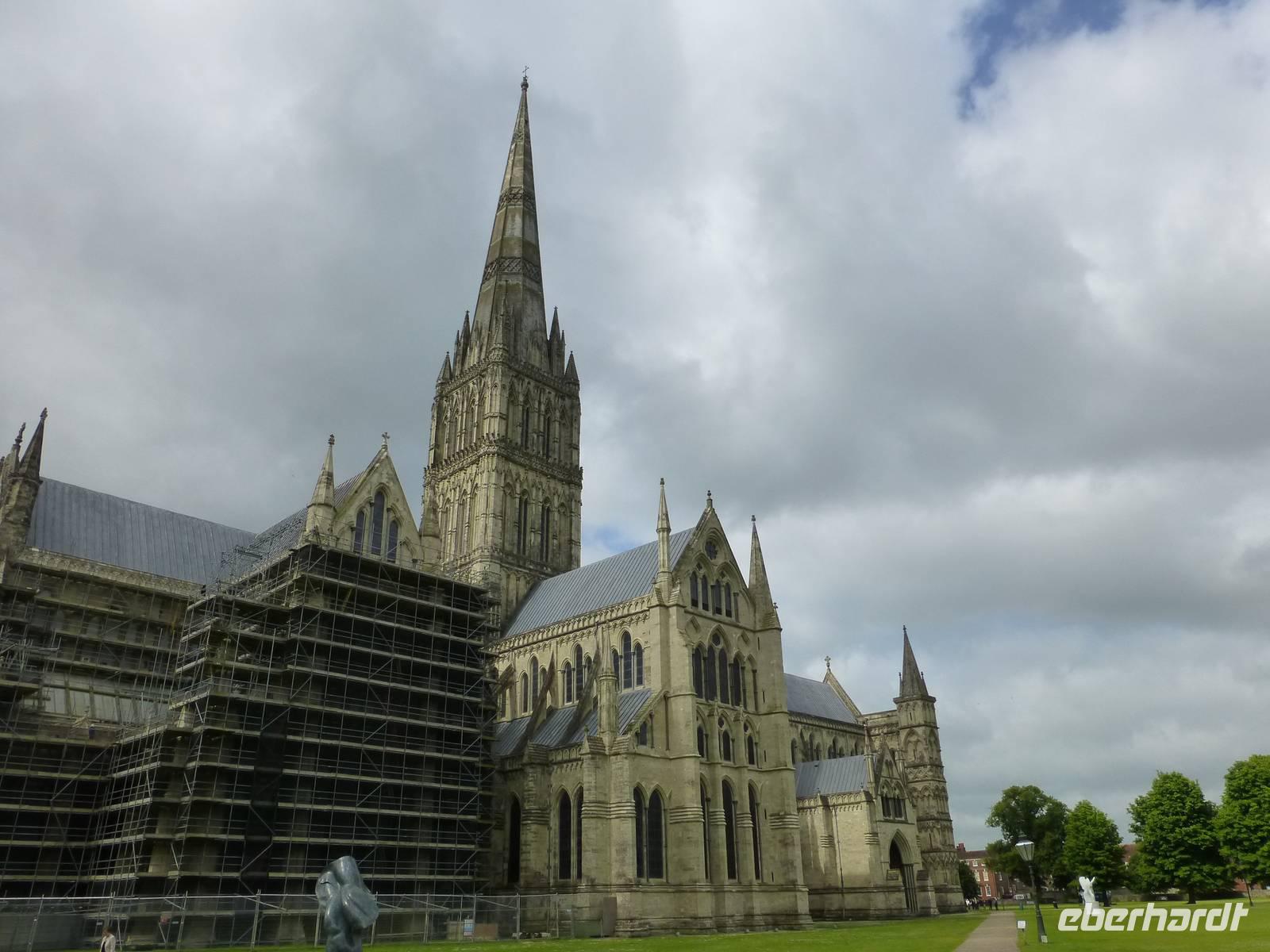 Unser Weg führt uns zuerst nach Salisbury, einer Stadt mit gewaltiger Kathedrale. Schon bei der Anfahrt wird der gewaltige Kirchturm sichtbar.