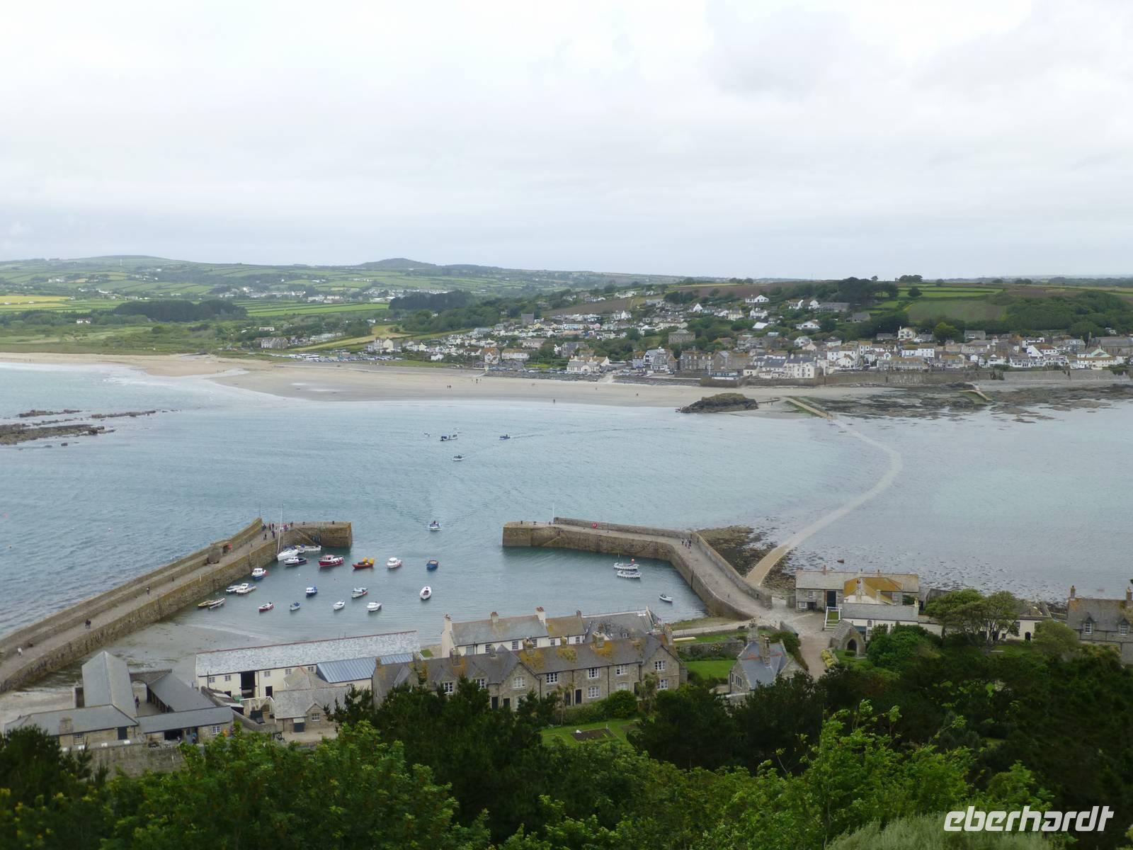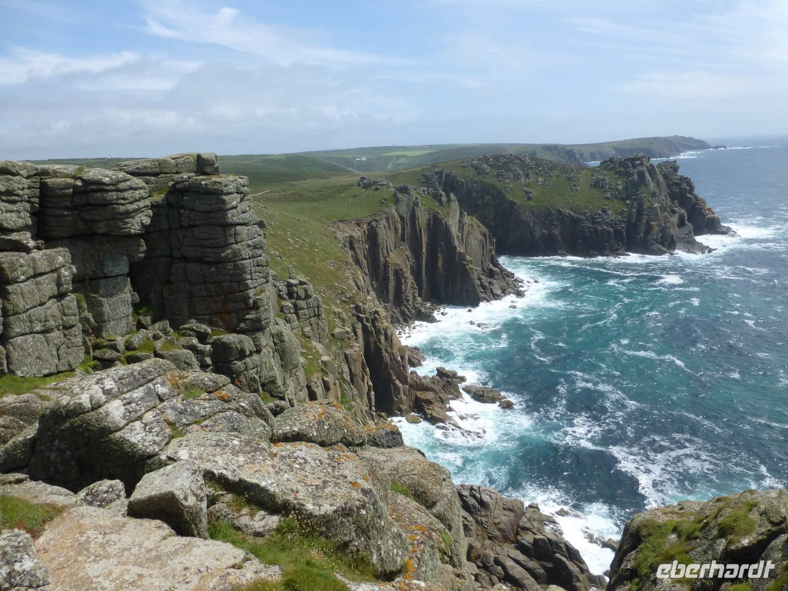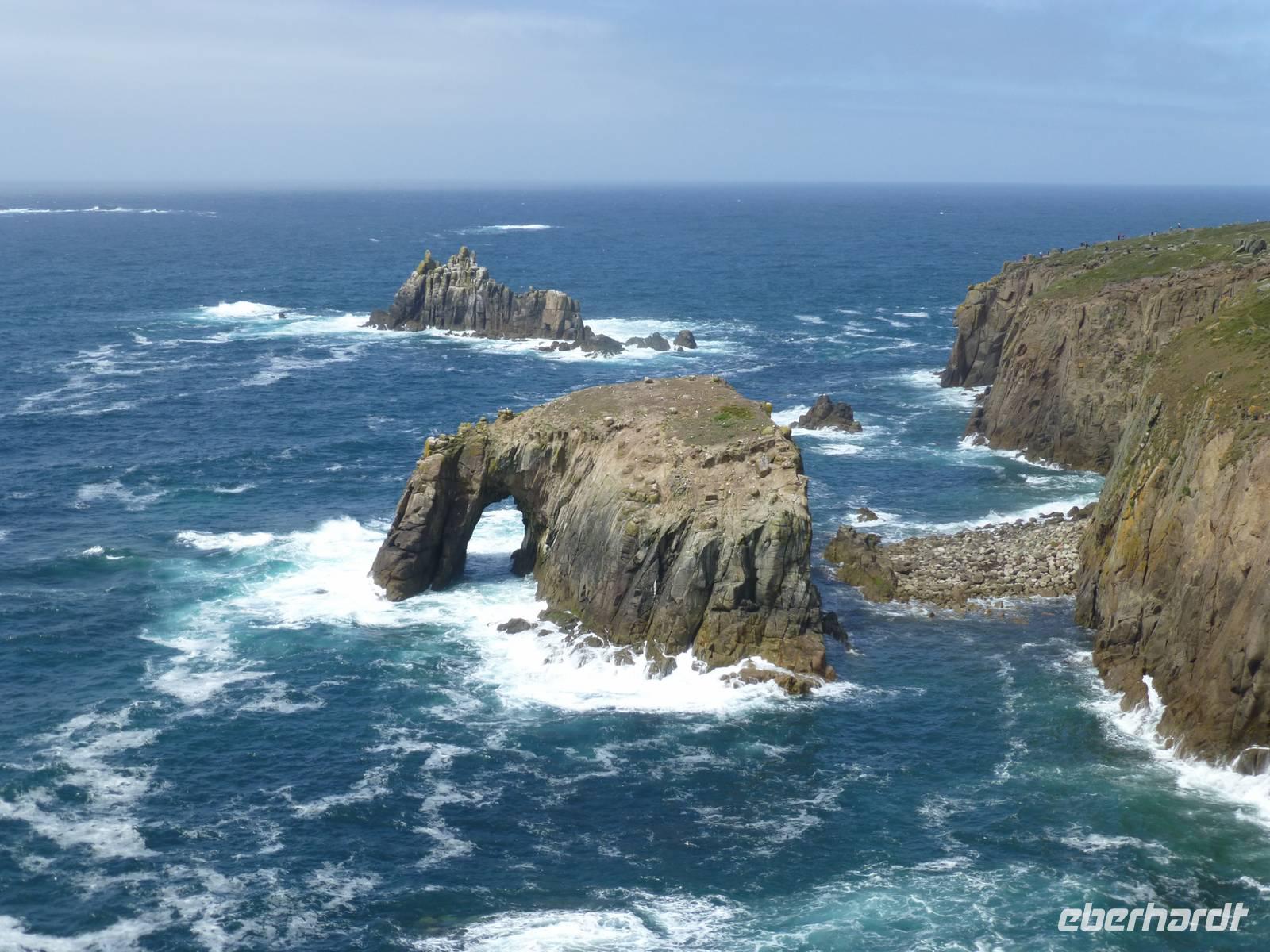 Erster Besichtigungspunkt ist heute St. Michaels Mount. Auf einer der Küste vorgelagerten kleinen Insel hatte man schon im 6. Jh. ein Kloster errichtet, welche über viele Jahr zu den Benediktinern von Mt. Saint Michel in der Normandie gehörte. Im 16. Jh. wurde das Kloster aufgelöst und danach bis heute Wohnsitz der Familie Aubyn. Diese übergab das Anwesen 1954 an den National Trust, welcher es jetzt pflegt. Nachdem wir über den Damm hinüber gelaufen sind, dieser wird bei Flut überspült, können wir die einzelnen Räume besichtigen. Gleichzeitig hat man einen tollen Blick über die Penzeance Bay. Anschließend fahren wir zum westlichsten Punkt Großbritanniens, nach Lands End. Wenn man den ganzen kommerziellen Rummel beiseite lässt, kann man hier wunderschöne Klippen sehen und ein Stück auf dem Coast Path entlang laufen. Das Wetter meint es auch gut mit uns, Sonnenschein begleitet unseren Weg. Nach dem westlichsten Punkt fahren wir noch zum südlichsten Punkt, dem Lizard Point. Auf der Halbinsel Lizard gelegen läuft man vom gleichnamigen einige Minuten bis dahin. Etwas weniger Rummel und eine andere Klippenlandschaft sehen wir hier. Nach einer Stunde Aufenthalt, ebenfalls mit Sonnenschein, fahren wir zurück in unser Hotel.