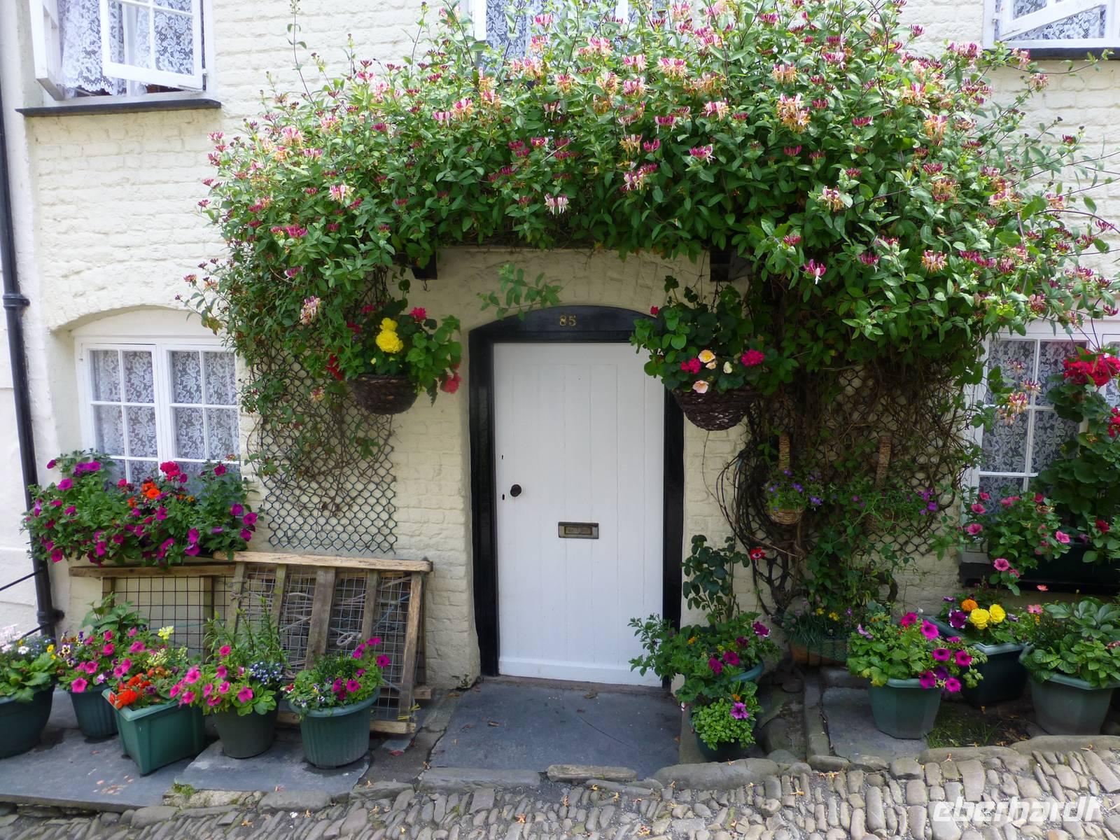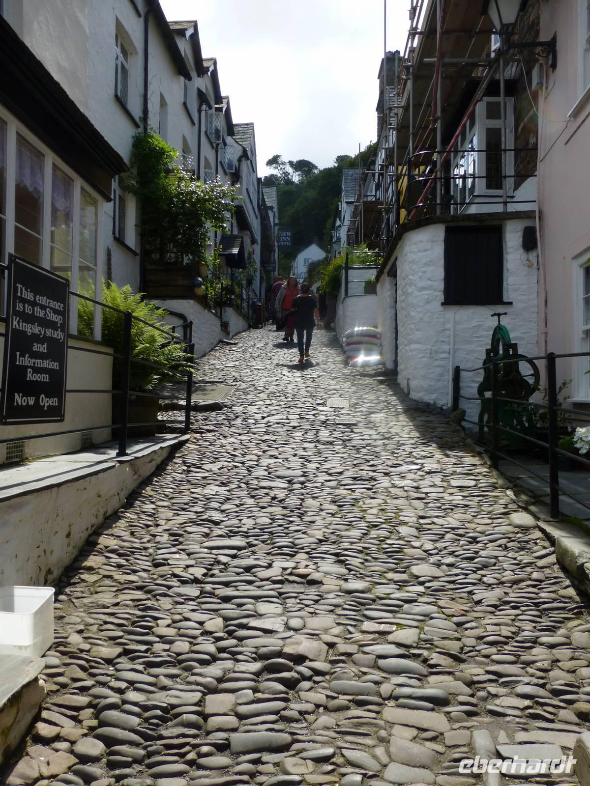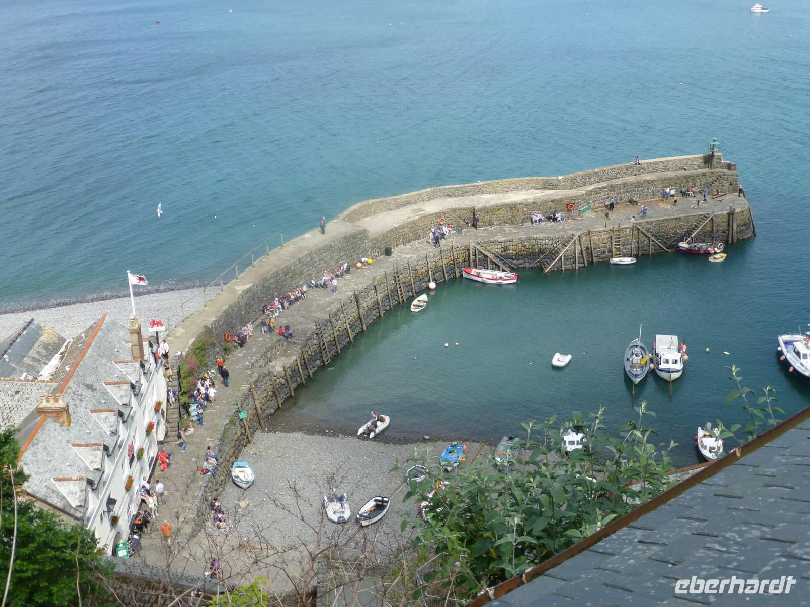 Ein fakultativer Ausflug führt uns heute zuerst zu einem mythischen Ort. Auch das Wetter zeigt sich am Vormittag von seiner mythischen Seite, jede Menge tief hängende Wolken ziehen an Land. Vom Parkplatz in Tintagel, einem Ort wo sich alles um König Artus dreht, laufen wir hinab zum Eingang des Tintagel Castle. Hier soll der Legende nach der Geburtsort von König Artus gewesen sein. Die Ruinen des Castle sind allerdings aus dem 13.Jh. und Artus hat etwa 600 Jahre früher gelebt. Wissenschaftler haben herausgefunden, das es sich tatsächlich um eine historische Figur handelt, deren Lebensmittelpunkt wahrscheinlich in Wales war. Unten am Meer ist das Wetter nicht mehr so neblig und wir haben eine gute sicht auf das Castle und die umliegenden Klippen. In der Bucht können wir sogar einige Seehunde beobachten. Als wir Tintagel wieder verlassen beginnt sich die Sonne zu zeigen. Wir fahren weiter nach Norddevon und besuchen das kleine schmucke Örtchen Clovelly. Es liegt direkt an den Klippen und über eine, mit groben Kieselsteinen versehene High Street, läuft man hinab bis zum Hafen. Einige der Häuser kann man auch besuchen, so das Fishermans Cottage. Natürlich muss man den gleichen Weg auch wieder hinauf oder man nutzt den Rover-Service hinauf zum Parkplatz. Die Strecke zurück nach Cornwall in unser Hotel nach Falmouth ist die selbe wie am Morgen, nach knapp 2,5 h fahrt sind wir zurück.