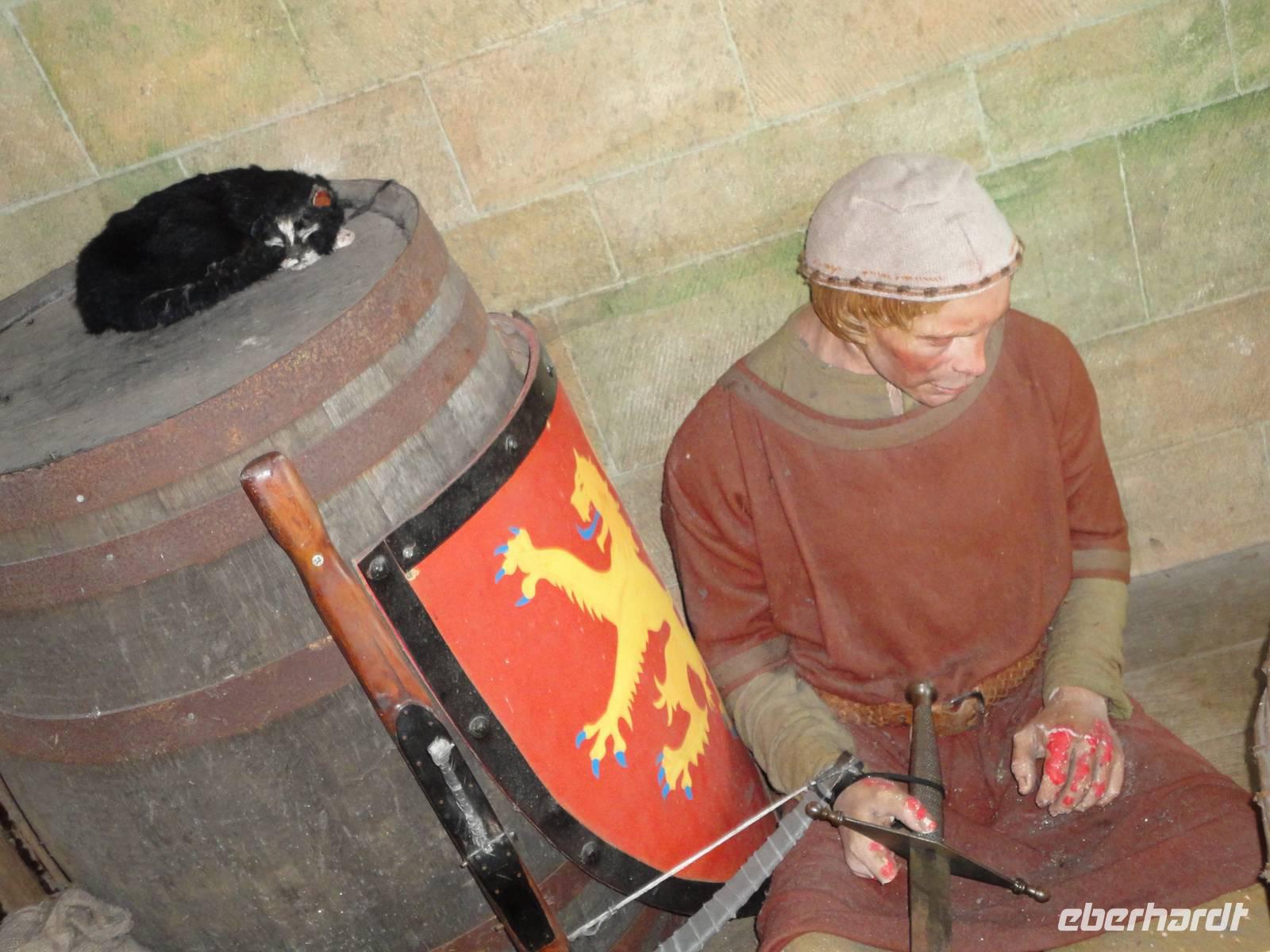 In Arundel besuchten wir zuerst die Kirche und dann die Motte auf dem Schlossgelände - von dort oben hatten wir einen herrlichen Blick. Mit Wachsfiguren war anschaulich das mittelalterliche Leben nachgestellt. Die Schlossräume zeigten uns eine Fülle von Räumen von der riesigen Baronshalle bis zur gemütlichen Bibliothek und überall konnten wir mit Freiwilligen plaudern über das Leben damals. Das Victory-Schiff war sicher für kleinere Menschen als wir gebaut und das Leben zwischen Hängematte, Kombüse und Kanone war sicher kein Zuckerschlecken. Wir sahen den Ort auf Deck, an dem Admiral Nelson tödlich verwundet wurde.