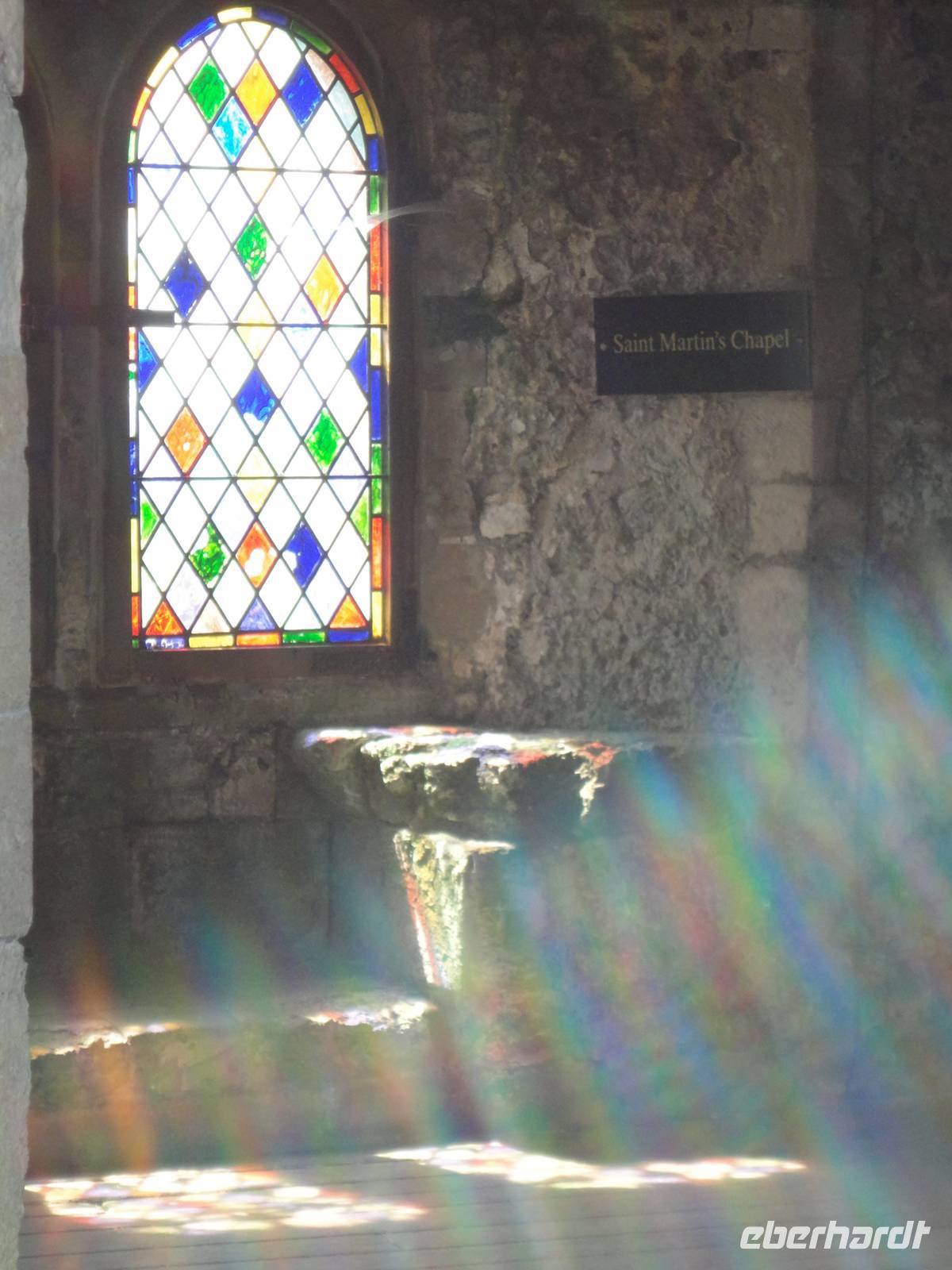 Unser Weg führte nach Glastonbury zur alten Abteiruine, dort zeigte uns der Mönch Leonfrick die Marienkapelle, die Kirche, das „Grab" von Artus und seiner Frau sowie die Klostergebäudereste. Sehr schön und humorvoll. Unser Bus erwartete uns schon und los ging es in das hübsche Städtchen Wells mit der ungewöhnlichen Scheren-Kathedrale, eine architektonische Besonderheit in ganz England.