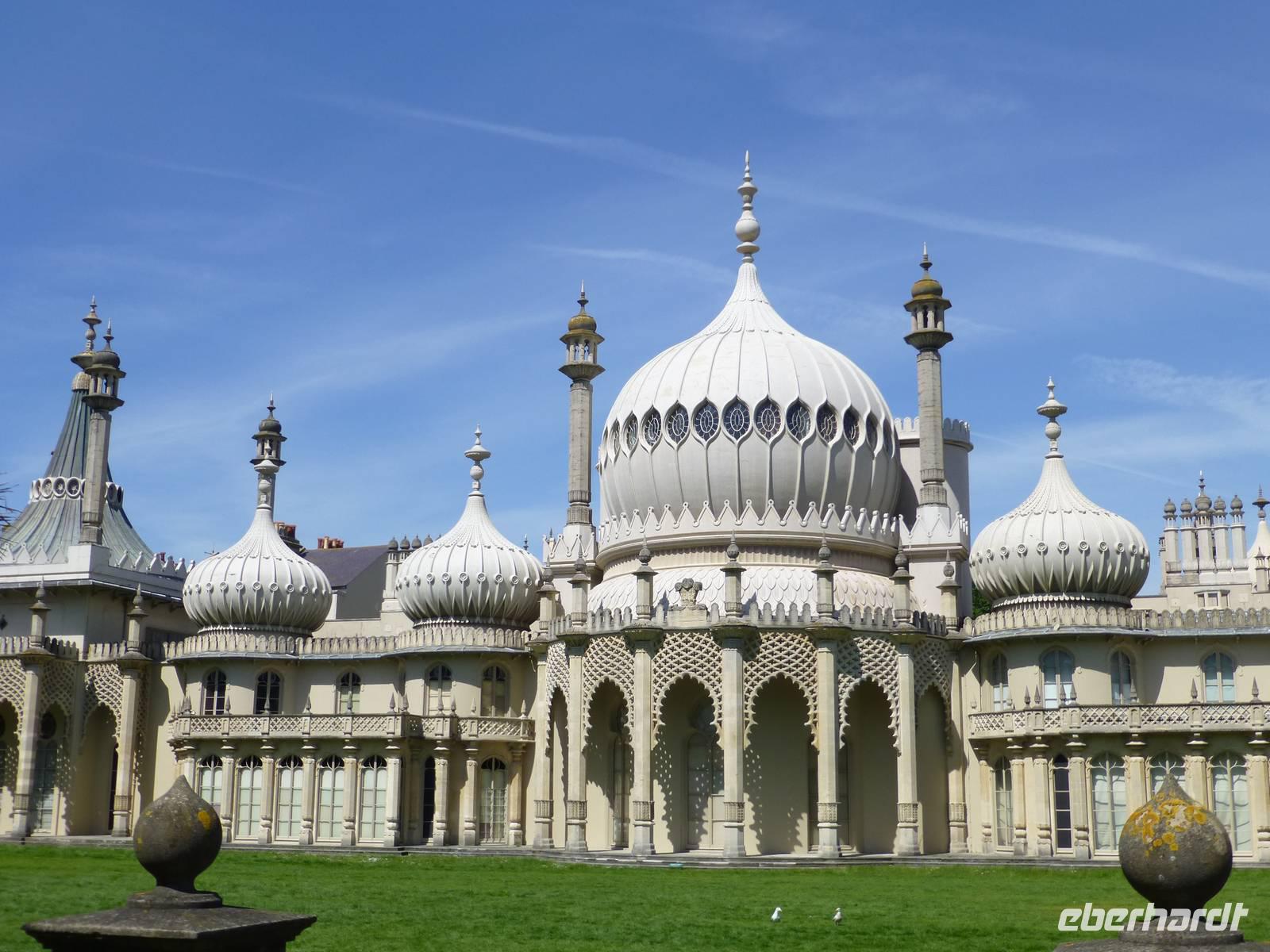 Das turbulente Seebad Brighton erreichten wir am Nachmittag. Kein anderes britische Seebad ist so bekannt wie Brighton. Bereits um das Jahr 1750 reisten die ersten Lords, Earls und Dukes nach Brighton, um Erholung am und im Meer zu suchen. Es folgten viele berühmte Persönlichkeiten wie Charles Dickens, Lewis Carroll, Fürst von Pückler-Muskau und Theodor Fontane. Von der Seepromenade bummelten wir durch die engen Gassen der Lanes zum Royal Pavilion, Großbritanniens größte Geschmacksverirrung. Ab 1802 ließ der Thronfolger und spätere König Georg IV. seine Villa zu diesem prunkvollen Palast vom Architekten John Nash umbauen. Von außen ist der Königliche Pavillon mit seinen Zwiebelkuppeln, Bleistiftminaretten, den säulentragenden Balkonen und der orientalischen Ornamentik im indisch-muslimischen Stil gehalten; im Inneren dagegen dominiert der fernöstliche Einfluss. Beeindrucken waren der 9 m hohe Kristalllüster im Bankettsaal, die moderne Küche sowie die goldenen Kuppel des Musiksalons. Im Gegensatz zu den prunkvollen Gesellschafträumen wirkten die Privatgemächer des Königs sehr bescheiden.