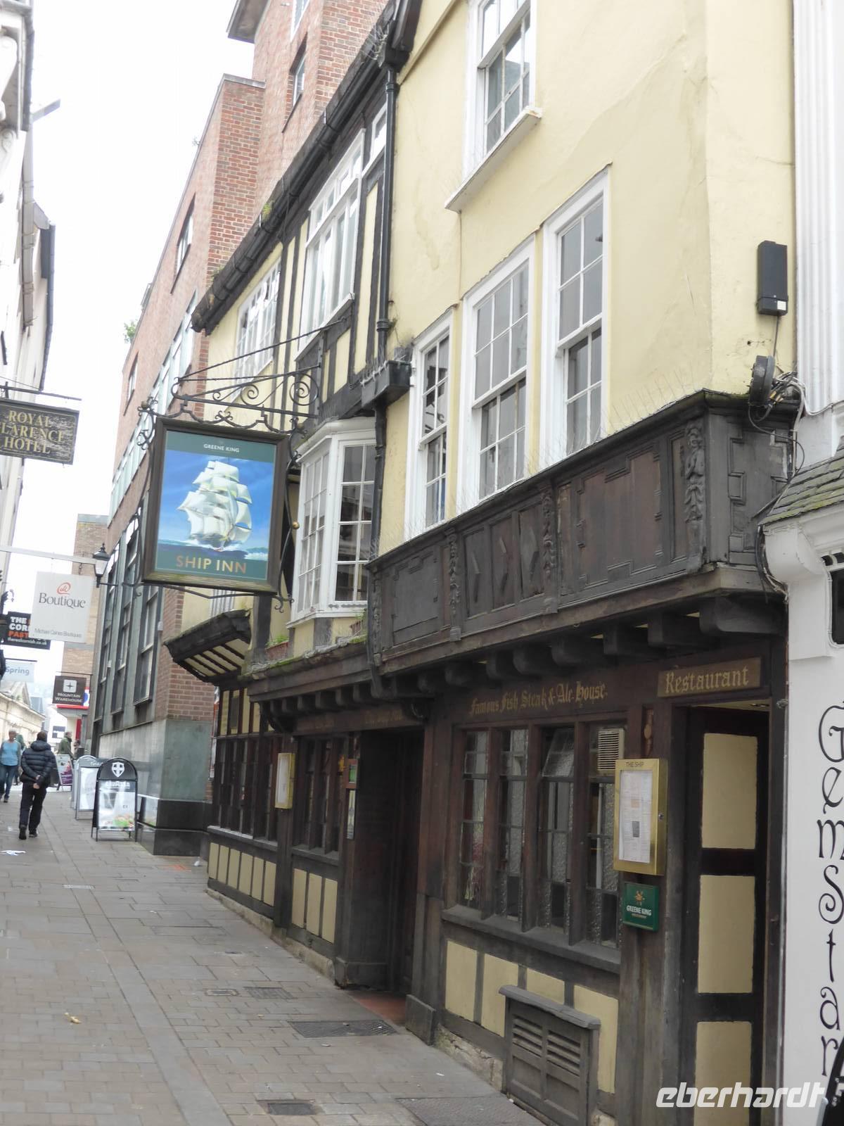 Um die Kathedrale herum befinden sich noch einige alte Fachwerkhäuser, wie das Mol´s House sowie das Ship Inn. Das Ship Inn war der Lieblingspub einiger Elitekapitäne wie Sir Francis Drake und Sir Walter Raleigh.
