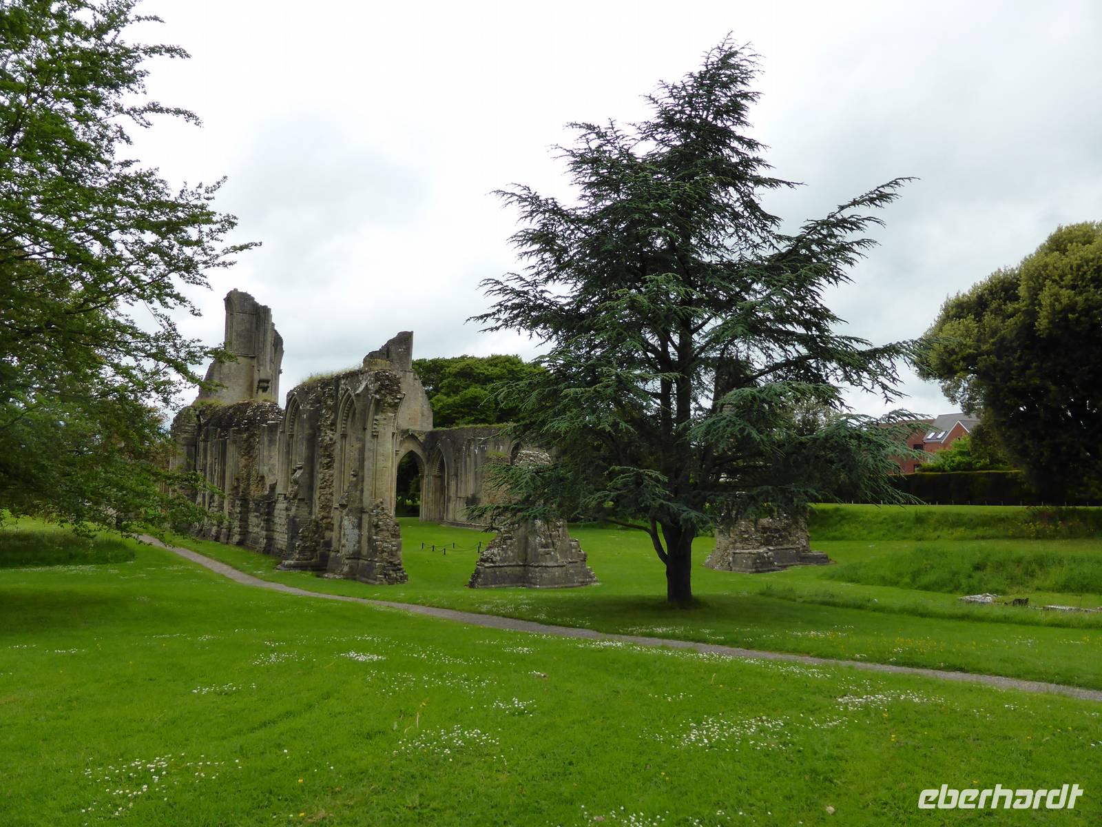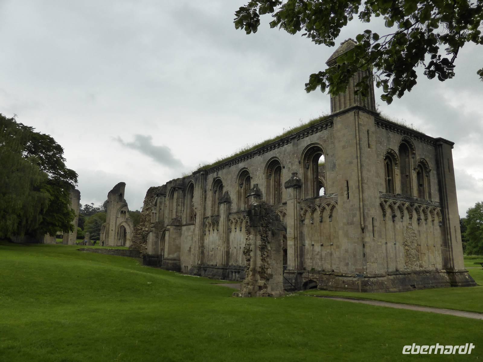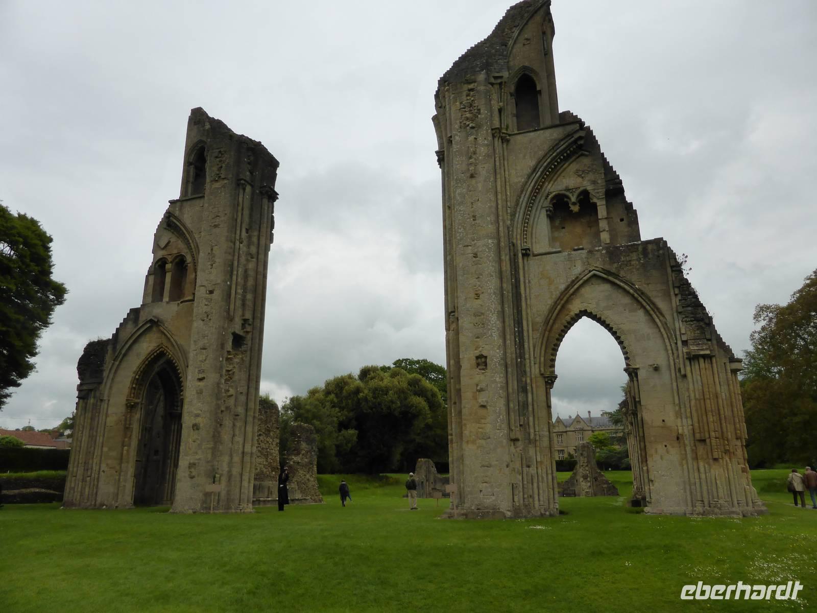 Unser nächstes Ziel war Glastonbury. Glastonbury ist ein Wallfahrtsort für Esoteriker aller Art. Dies spiegelte sich auch in den zahlreichen Geschäften des Ortes wieder. Wir besuchten allerdings die ehemalige Abtei von Glastonbury. Hier soll Joseph von Arimathäa den Heiligen Gral vergraben haben und sich das Avalon von König Artus befinden. Während unseres Rundganges sahen wir die vermeintliche Grabstätte von König Artus und seiner Frau Guinevere, da 1191 Mönche der Abtei das Grab entdeckt haben wollen. Die beeindruckenden Ruinen der ehemals fast 180 m langen Klosterkirche beherrschen heute noch das grünbewachsene Areal. Gut erhalten sind die Marienkapelle sowie die Abtsküche.