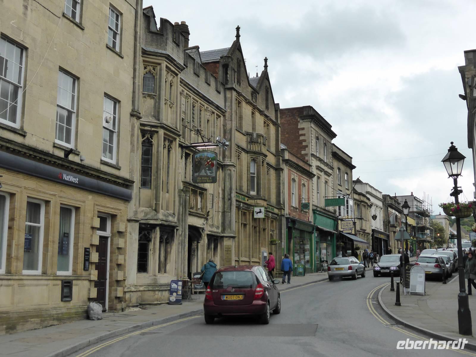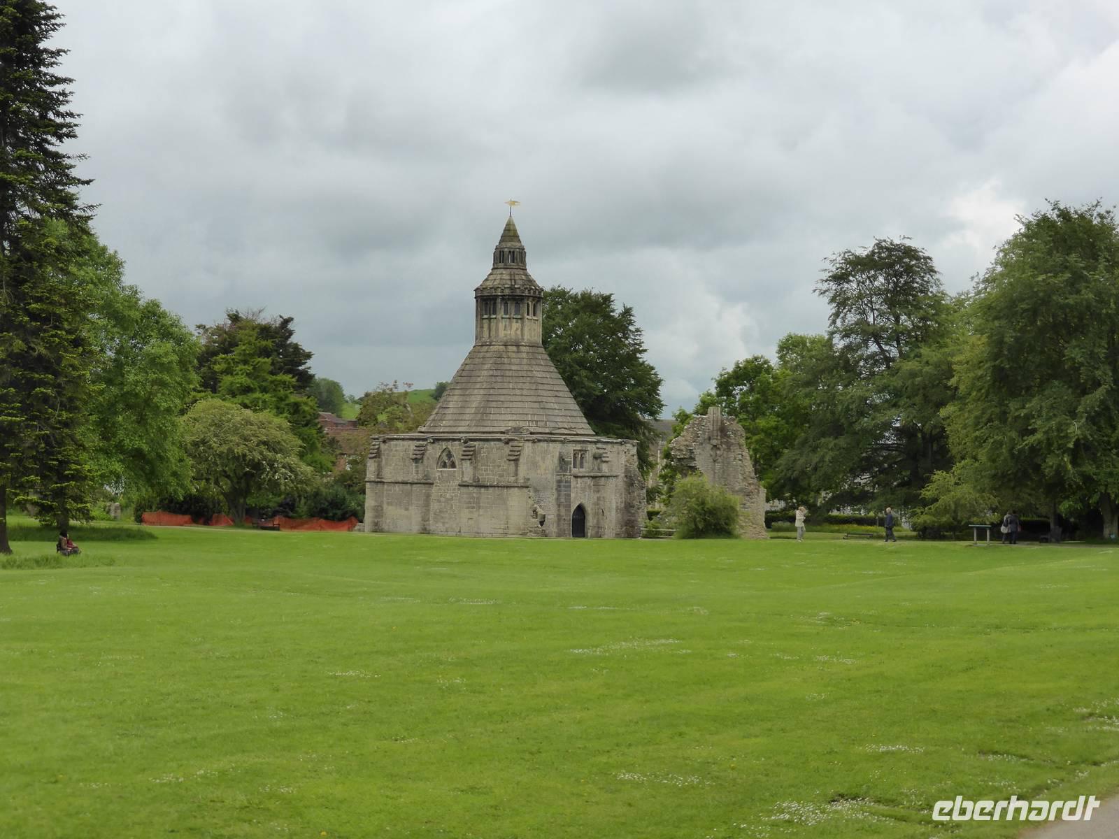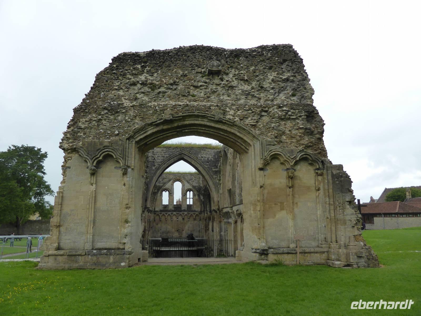 Unser nächstes Ziel war Glastonbury. Glastonbury ist ein Wallfahrtsort für Esoteriker aller Art. Dies spiegelte sich auch in den zahlreichen Geschäften des Ortes wieder. Wir besuchten allerdings die ehemalige Abtei von Glastonbury. Hier soll Joseph von Arimathäa den Heiligen Gral vergraben haben und sich das Avalon von König Artus befinden. Während unseres Rundganges sahen wir die vermeintliche Grabstätte von König Artus und seiner Frau Guinevere, da 1191 Mönche der Abtei das Grab entdeckt haben wollen. Die beeindruckenden Ruinen der ehemals fast 180 m langen Klosterkirche beherrschen heute noch das grünbewachsene Areal. Gut erhalten sind die Marienkapelle sowie die Abtsküche.