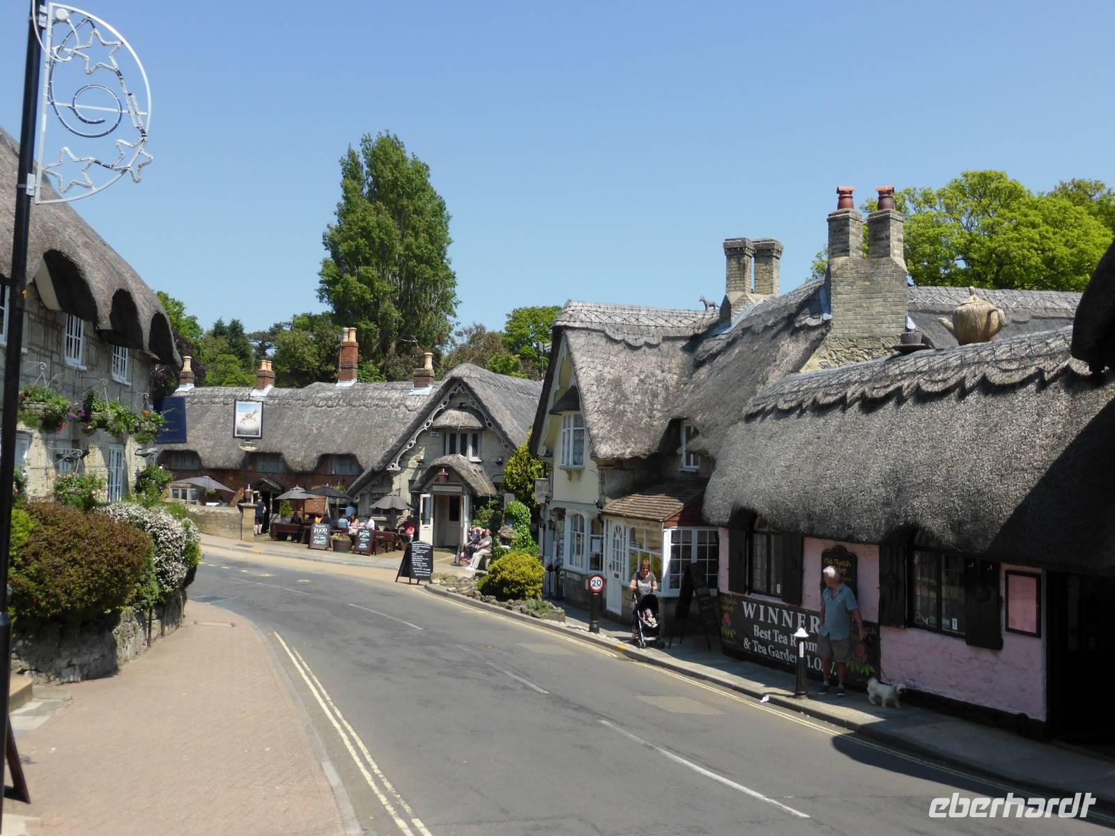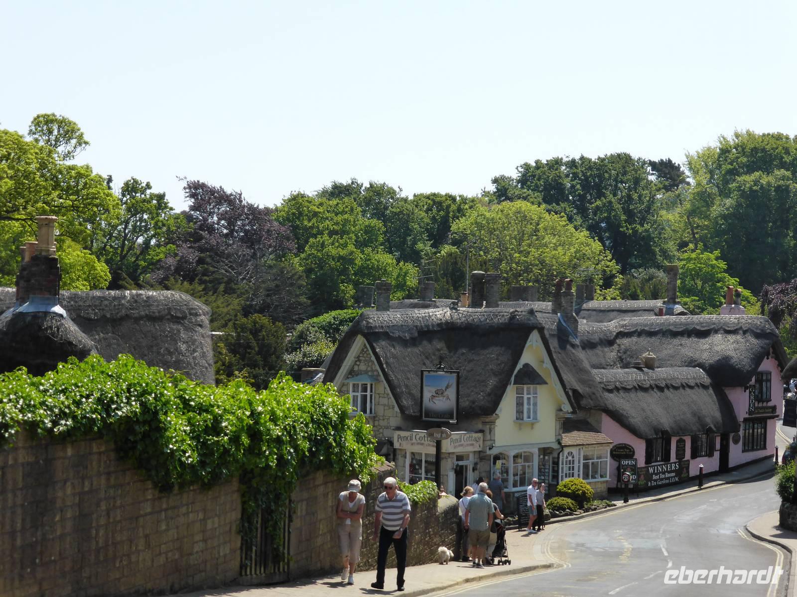 Unsere Rundfahrt führte uns durch das Inselinnere vorbei an der Hauptstadt Newport nach Godshill. In diesem Puppenstubendörflein reihen sich kleine reetgedeckte Cottages aneinander. Den Namen erhielt das Dorf von der Kirche St. Lawrence auf dem Hügel, da Gott wollte, dass diese Kirche auf der natürlichen Erhebung errichtet wird. Von oben genossen wir einen schönen Blick auf die umliegende Landschaft.