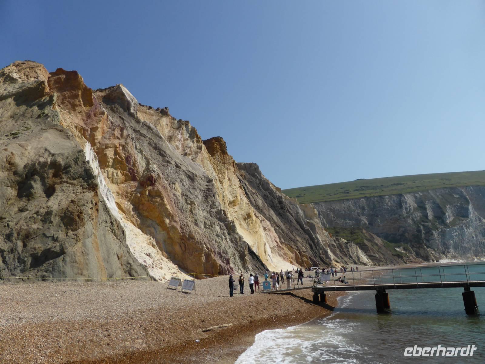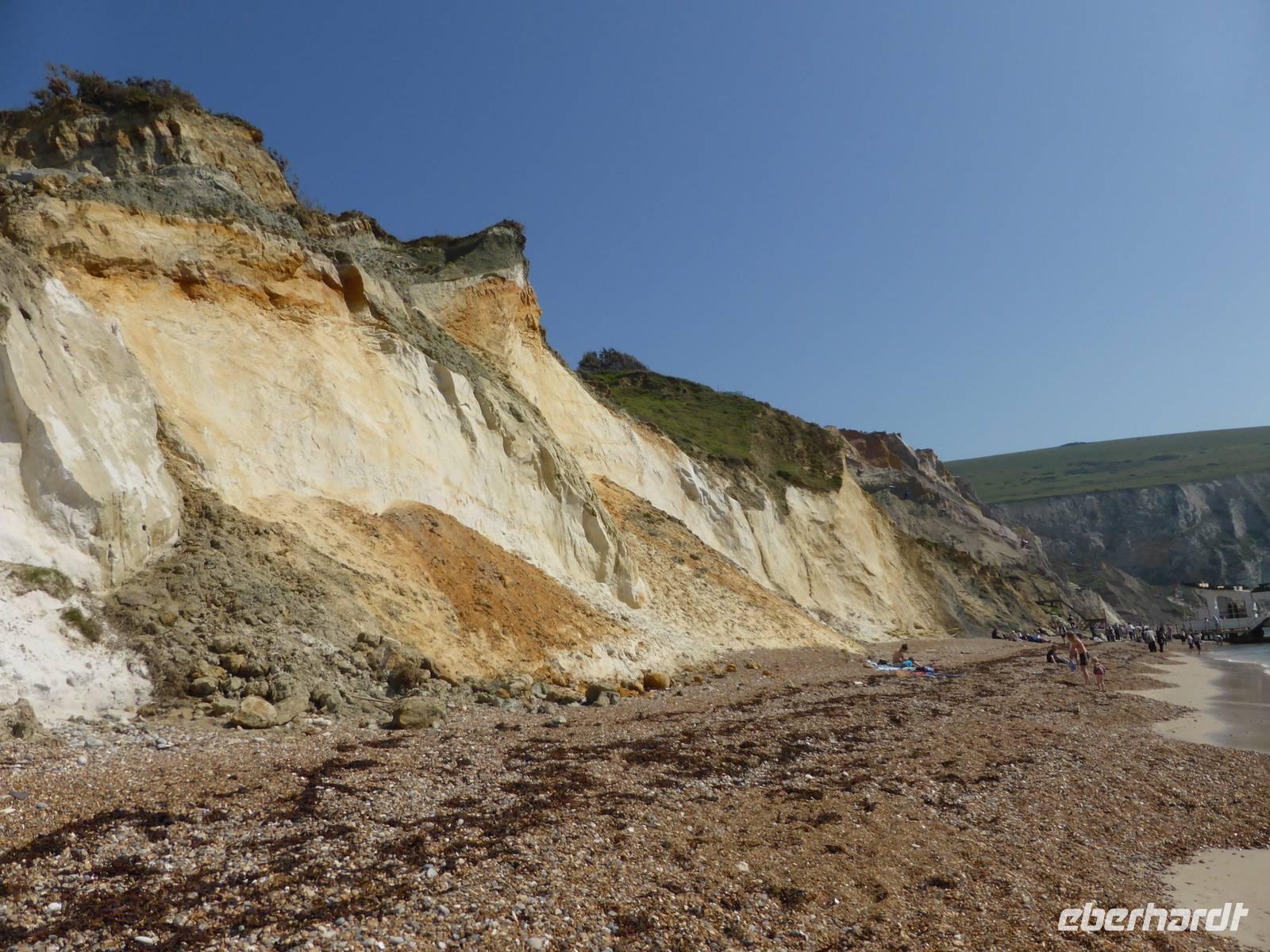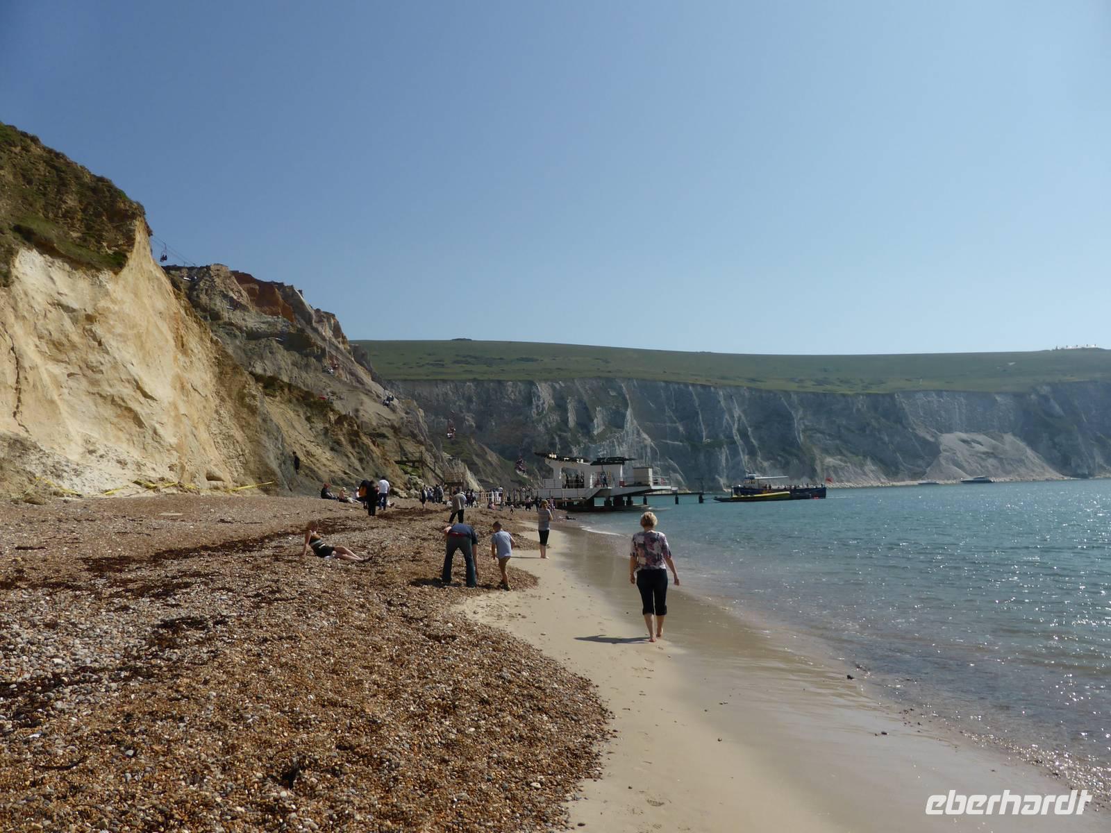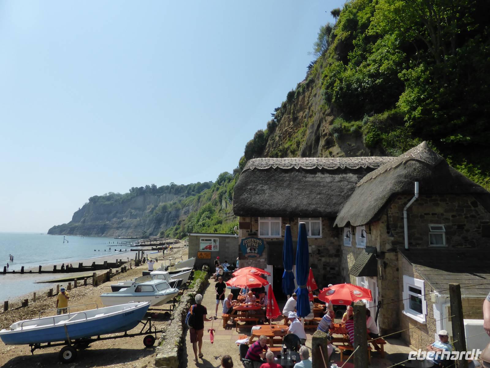 Unsere Mittagspause verbrachten wir in Shanklin. Einige Gäste wanderten durch die Shanklin Chine, eine tiefe, in Jahrmillionen vom Wasser ausgewaschene Klamm. Die Schlucht war in den vergangenen Jahrhunderten oft der Unterschlupf für Schmugglerbanden, heute säumen selten Pflanzen, hohe Bäume sowie das Bächlein den Weg.
