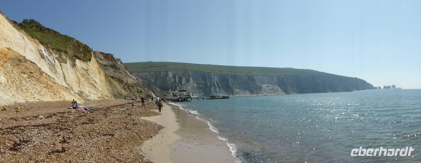 Entlang der Südküste vorbei an dem Heilbad Ventnor mit seinem botanischen Garten sowie dem St. Catherine´s Point dem südlichsten Punkt der Insel gelangten wir zu The Needles und die Alum Bay. An der Westspitze der Isle of Wight ragen drei große weiße Kreidefelsen aus dem Meer - die Needles. Sehr beeindruckend waren die bunten Sandsteinfelsen in dieser Bucht. Wir spazierten die Treppen hinunter zum Wasser, um die verschieden farbigen Sandsteinschichten zu betrachten. Einige Gäste benutzen auf dem Rückweg den Sessellift. Der Rückweg zur Fähre führte uns über die Nordwestküste zurück nach East Cowes. Unsere Fähre erwartete uns bereits und brachte uns nach einer einstündigen Überfahrt über den Solent und durch den Mündungstrichter des Southampton Waters zurück nach Southampton.