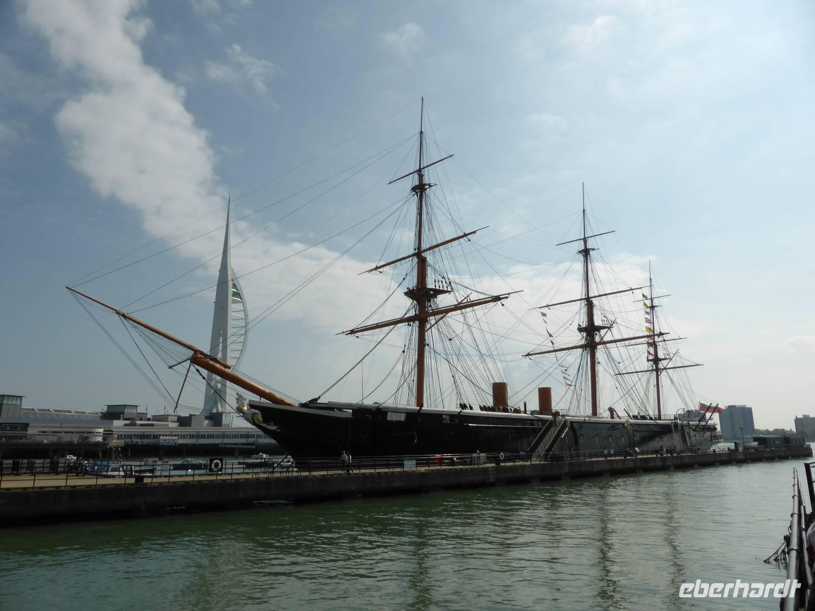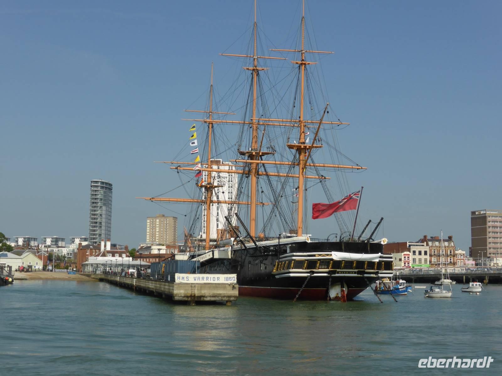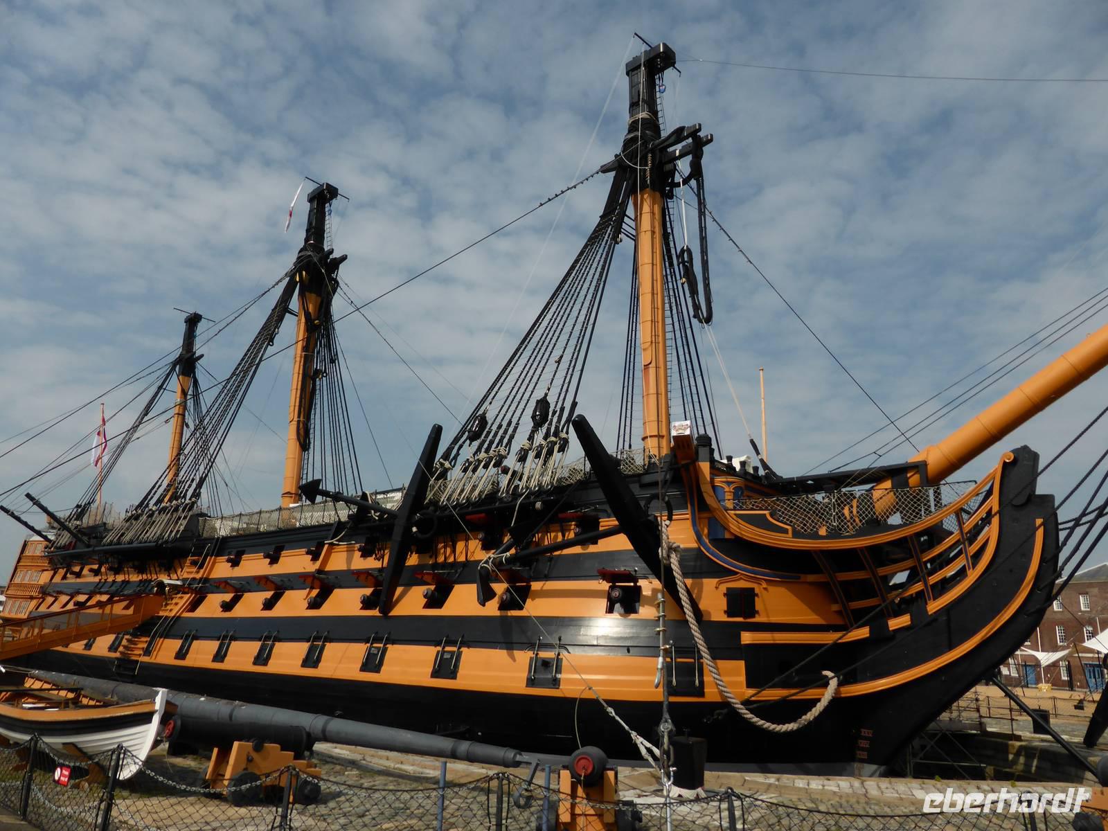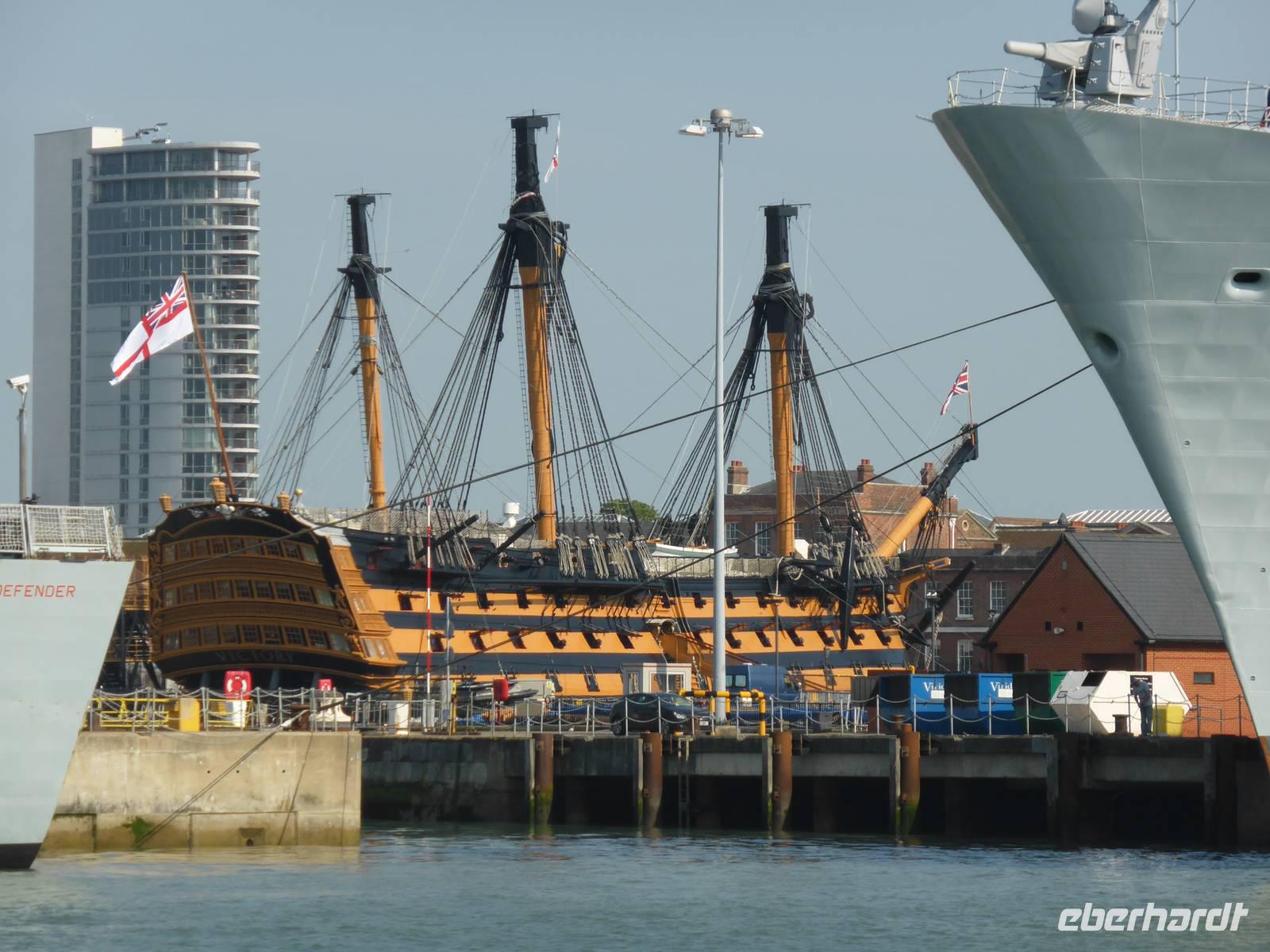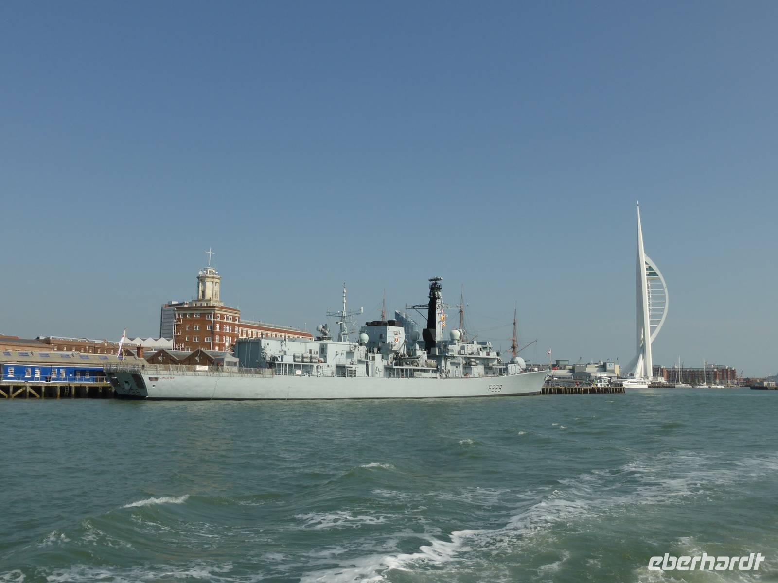 Die Weiterreise führte uns nach Portsmouth, dem wichtigsten Marinestützpunkt England. Der sichere Naturhafen von Portsmouth wurde Ende des 15. Jh. befestigt und trägt den Beinamen „Flagship of Maritime England". In dem Historischen Hafenanlagen befinden sich die HMS Warrior, das erste stahlbewehrte Kriegsschiff, welches 1860 vom Stapel gelaufen ist, die Mary Rose, der Stolz der Kriegsmarine von Heinrich VIII., das Royal Naval Museum sowie die HMS Victory. Unser Ziel war die HMS Victory, das Flaggschiff von Admiral Nelson, die immer noch uneingeschränkt seetüchtig ist. Während eines kleinen Rundganges über die 9 Decks erfuhren wir viel über die Lebensweise der Matrosen, warfen einen Blick in die Kabine von Lord Nelson. Im Anschluss nutzen einige Gäste die Möglichkeit, das Museum zu besuchen bzw. den Militärhafen während einer Hafenrundfahrt kennen zu lernen. Während dieser Rundfahrt erblickten wir zahlreiche Marineschiffe sowie das neue Wahrzeichen von Portsmouth - den Spinaker Tower.