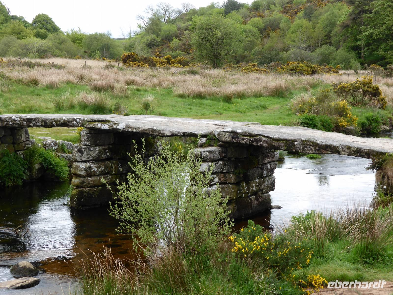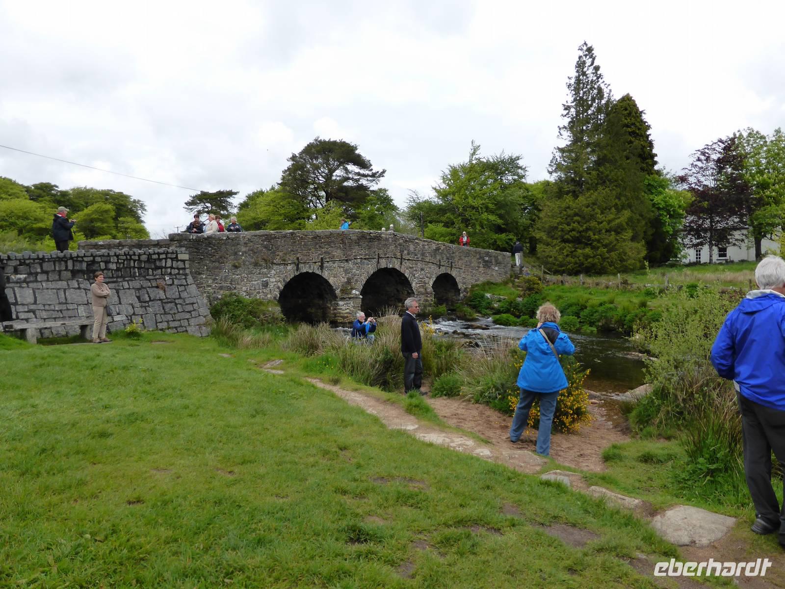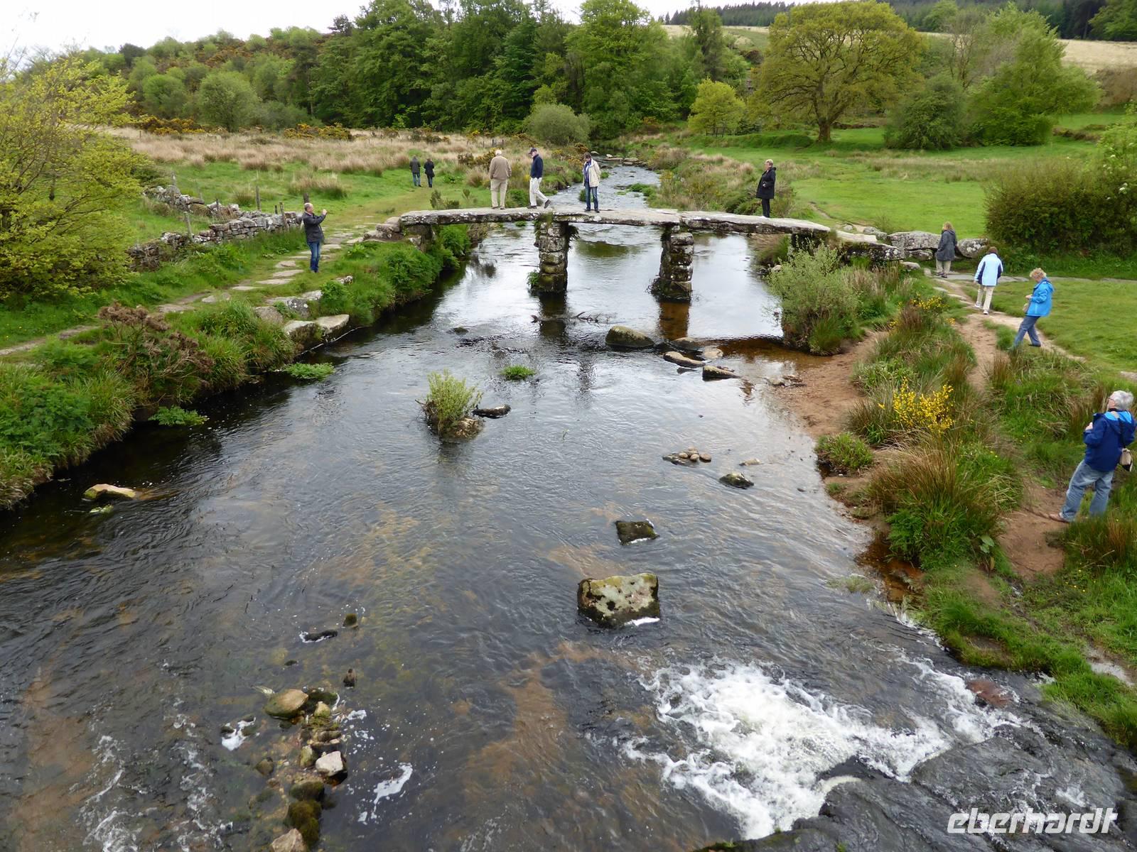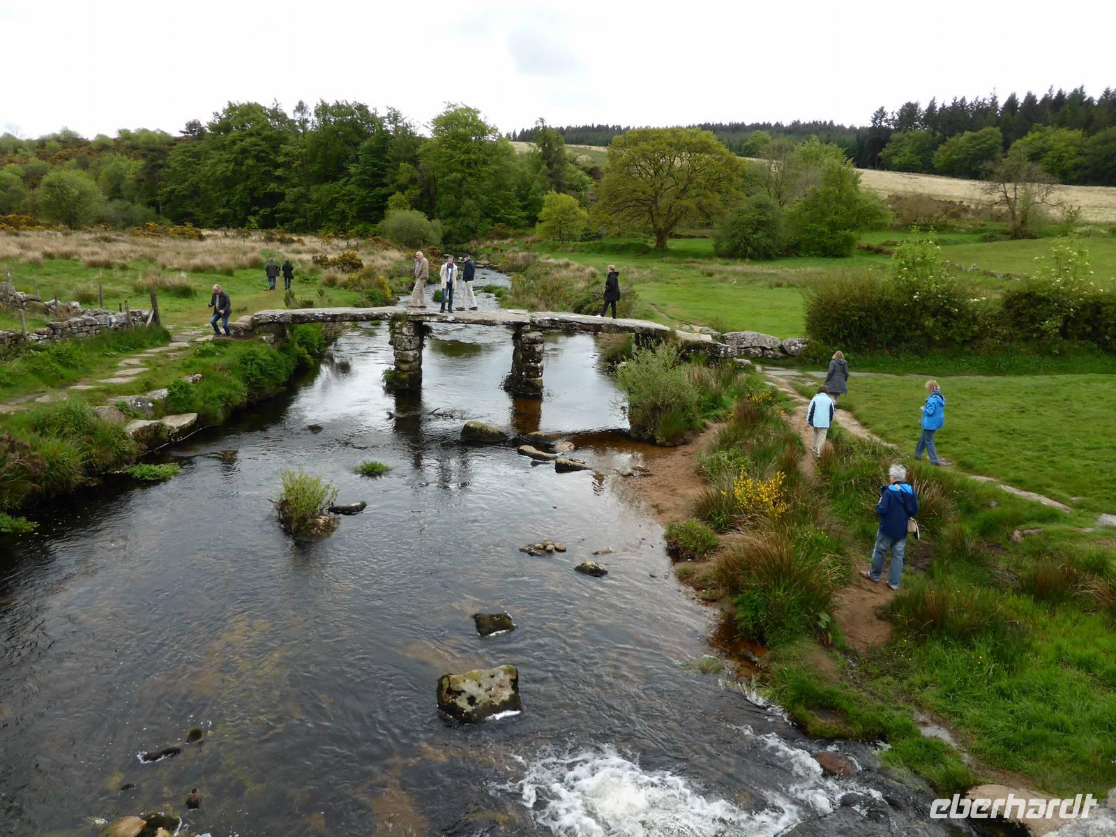 Nach unserem Aufenthalt in Exeter fuhren wir weiter durch das berühmte Dartmoor. Das Dartmoor entstand aus dem Zusammenwirken von menschlichen Einflüssen sowie Klimaveränderungen. Aufgrund des recht sonnigen Wetters erwartete uns eine bezaubernde Landschaft. Die Dartmoor Ponys und die weißen Kleckse der Schafe in den sanft geschwungenen Hügelhängen, die verschiedenen Grünschattierungen sowie die einzelnen Tors (Berge) ließen das Dartmoor sich von seiner schönsten Seite zeigen. Über Moretonhampstead, einem kleinen Marktort im nördlichen Dartmoor erreichten wir Postbridge mit seiner bekannten Clapperbridge, einer Steinplattenbrücke. In Tavistock, einer alten Stannary Town (Zinnstadt) besuchten wir die berühmten Markthallen.