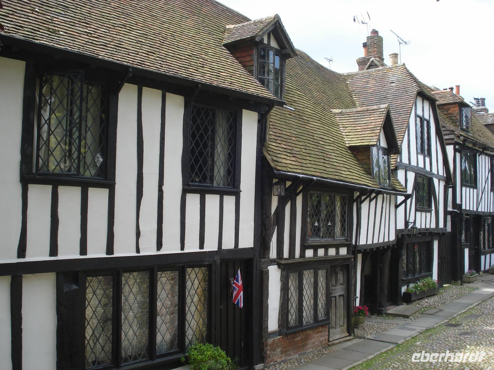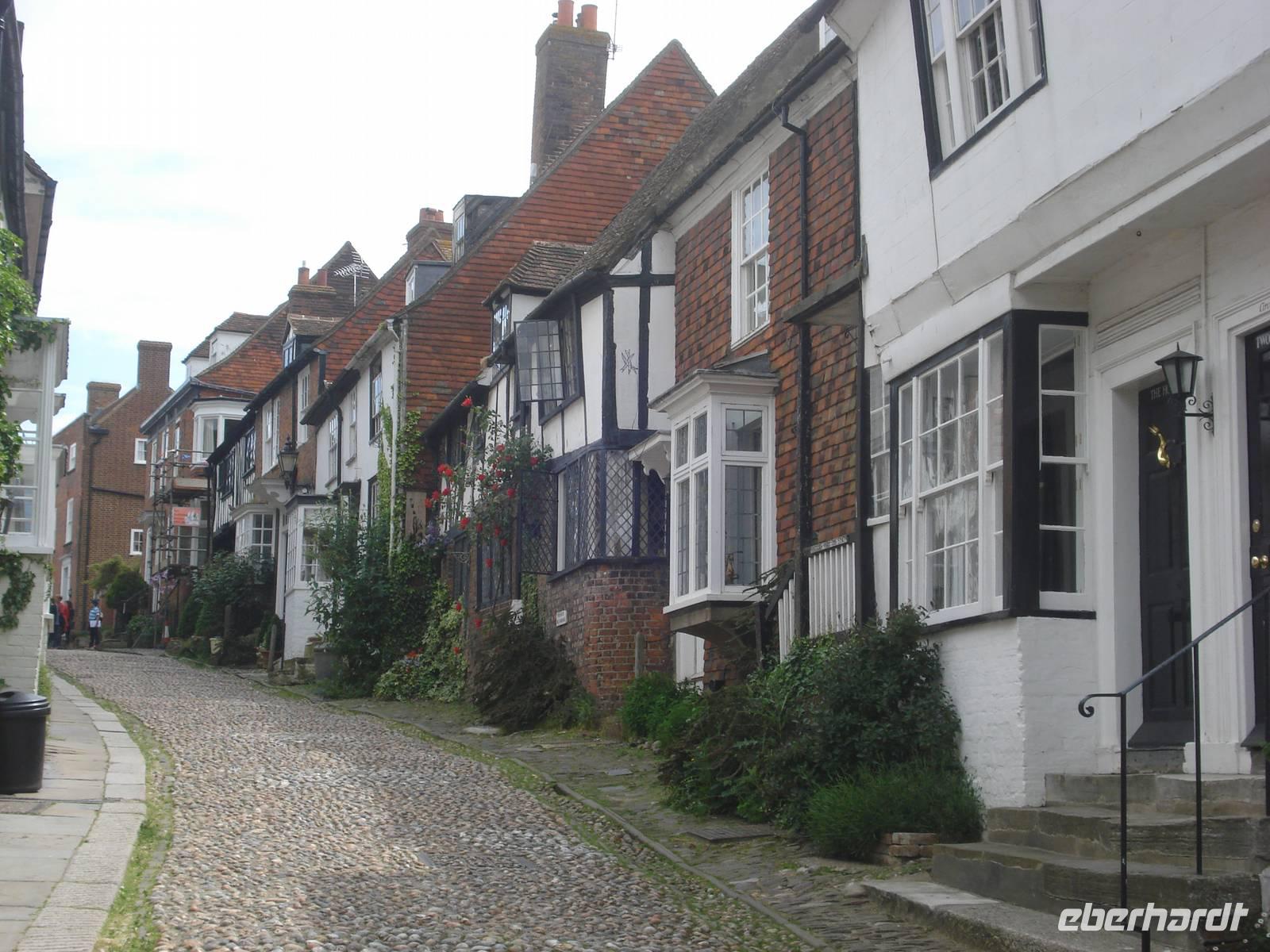Nach einem für französische Verhältnisse reichhaltigen Frühstück starteten wir zum Fährhafen von Calais. Die Überfahrt über den Ärmelkanal verlief ruhig. Die weißen Klippen von Dover begrüßten uns in England. Der westliche Kreidefelsen heißt Shakespeares Cliff, denn Englands großer Dramatiker siedelte dort eine Szene im King Lear an. Unser erster Aufenthalt war das Puppenstubenstädtchen Rye.