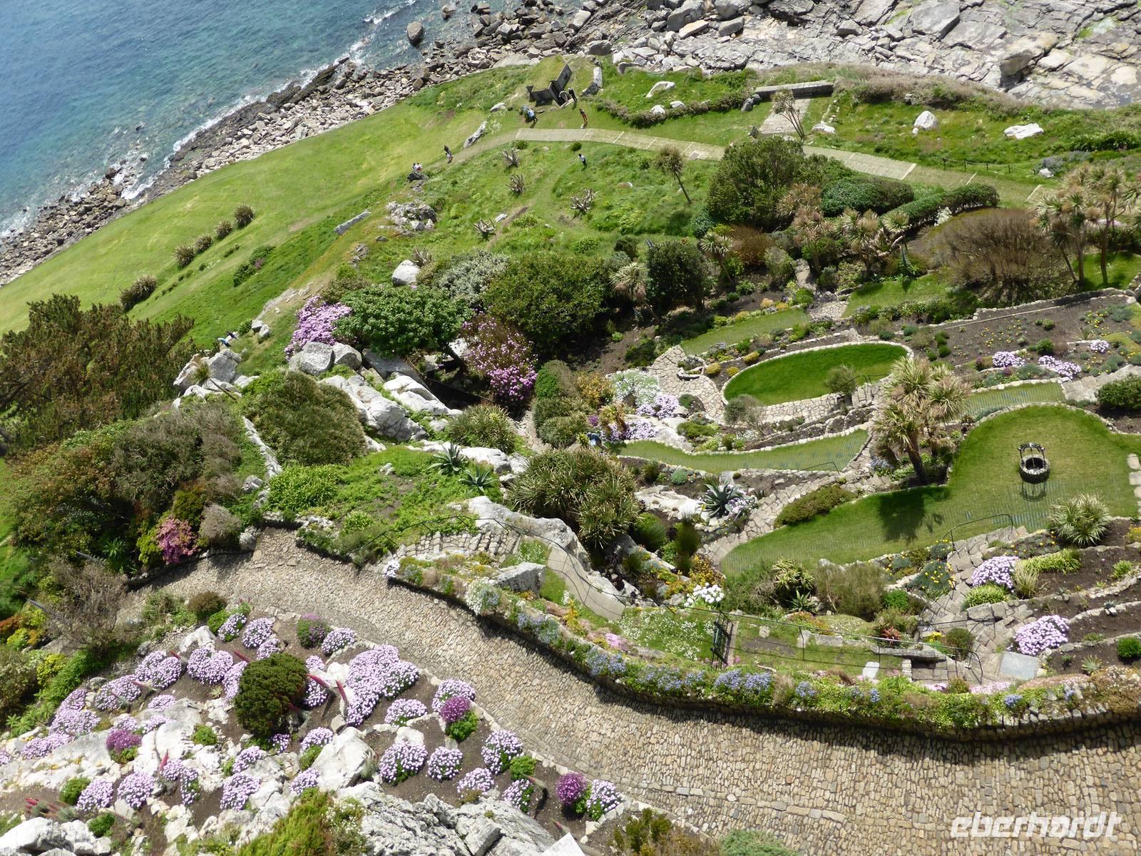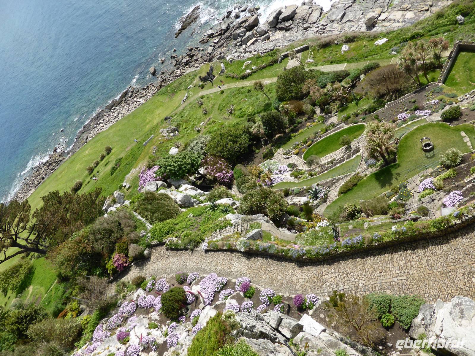 Auf unserem Rundgang besichtigten wir die verschiedenen Wohn- und Repräsentationsräume, die Kirche und genossen einen wunderbaren Blick von der Terrasse auf die Bucht. Von oben hatte man bereits den besten Blick auf die wunderschönen Gärten am Südhang des Felsens. Auch für einen kleinen Besuch der Gärten hat die Zeit noch gereicht.
