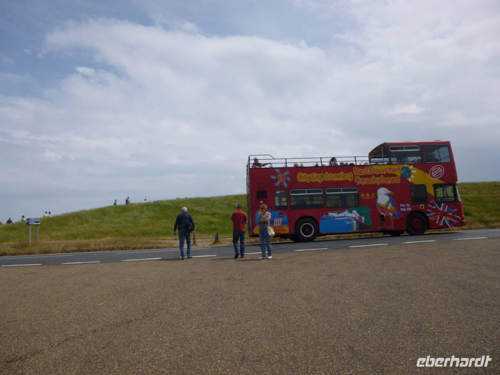 Vorbei an den Fischernetzhäusern "net huts" und der Burgruine von William the Conquerer in Hastings (die Schlacht 1066 fand im nahen Battle statt, wo William zum Dank für seinen Sieg eine Battle Abbey errchten ließ) fuhren wir zu unserem nächsten Stop in das Naturschutzgebiet der Seven Sisters nahe dem Seebad Eastbourne und unternahmen einen Klippenspaziergang am Beachy Head bei traumhaftem Wetter.