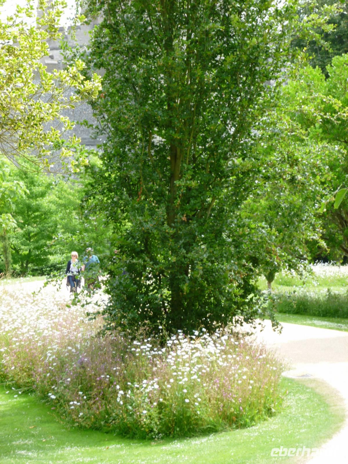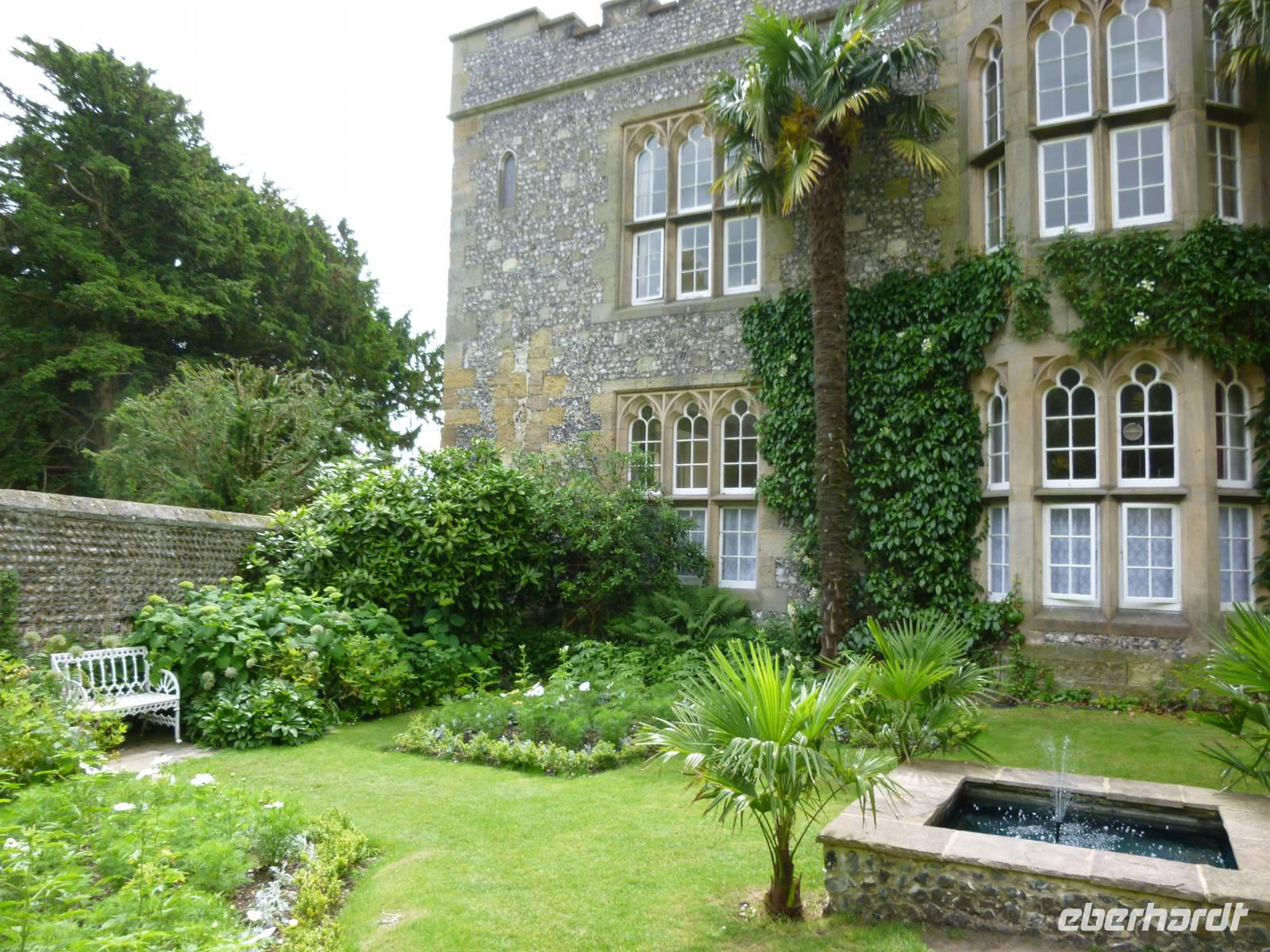 Als besonders malerisch und romantisch empfanden wir den englischen Garten mit seiner ungezähmten Wiesen-Natur, den gepflegten Wegen und der Fitzalan Chapel, die Erdwallburg (Motte) als frühmittelalterliches Prachstück erinnert an die ursprüngliche Burganlage, von Roger de Montgomery, Earl von Arundel und Williams ergebener Baron, zum Schutz von Sussex am Arun angelegt.