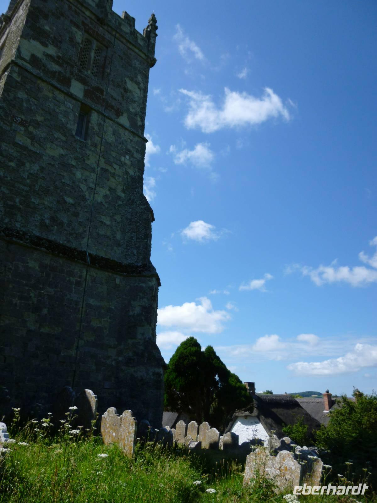 In East Cowes fuhren wir am Ostborne House vorbei, wo Queen Victoria und ihr Albert residierten. Nach Alberts Plänen entstand 1851 mit dem Londoner Architekten Thomas Cubitt eine Villa mit Terassengarten im italienischen Stil.Unser Weg führte über Newport zunächst auf "Gottes Hügel" (Godshill), ein verträumtes Dörfchen mit charmantem Kirchlein und touristischer Hauptstrasse. Der rustikale Charme der gepflegten Häuschen mit ihren Reetdächern wird noch unterstrichen von der üppigen Vegetation: mannshohen Hortensien, Palmen, Kakteen.