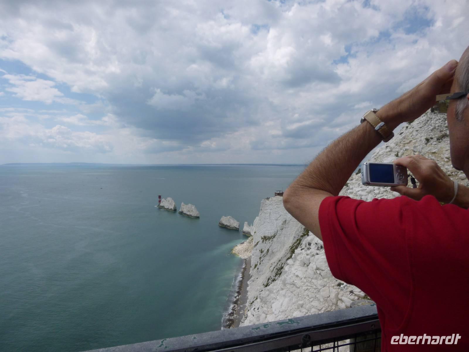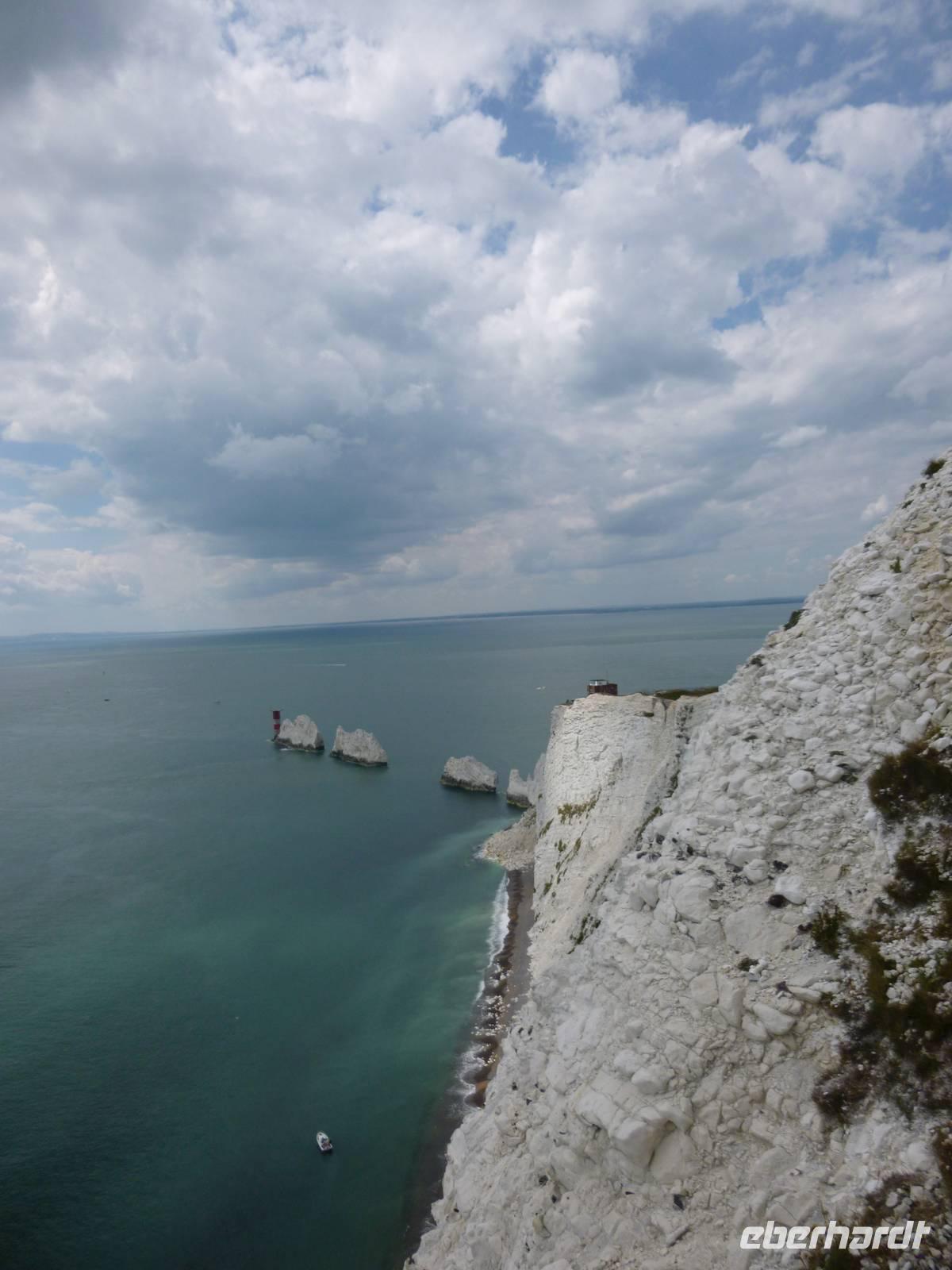 An der Westspitze der Insel ragen drei bizarre weiße Kalkfelsen wie Nadeln in die Höhe, mit einem Leuchtturm geschmückt. Dorthin führt unser Spaziergang entweder per Seilbahn zum farbigen Sandstrand der Alum Bay oder per Bus Shuttle zur Old Battery mit wunderschönem Blick auf die alte Festungsanlage und die ehemalige Raketenabschußrampe.